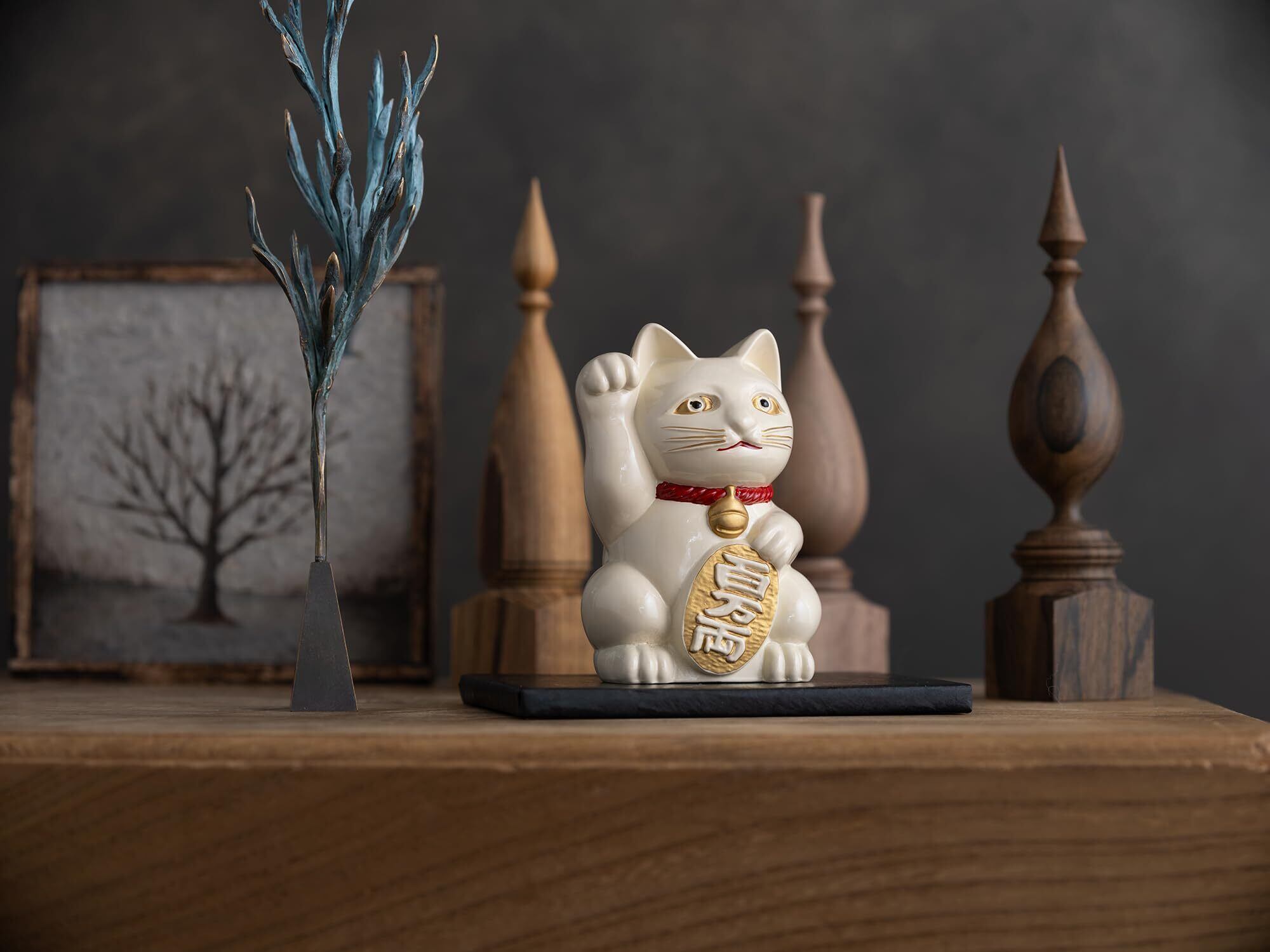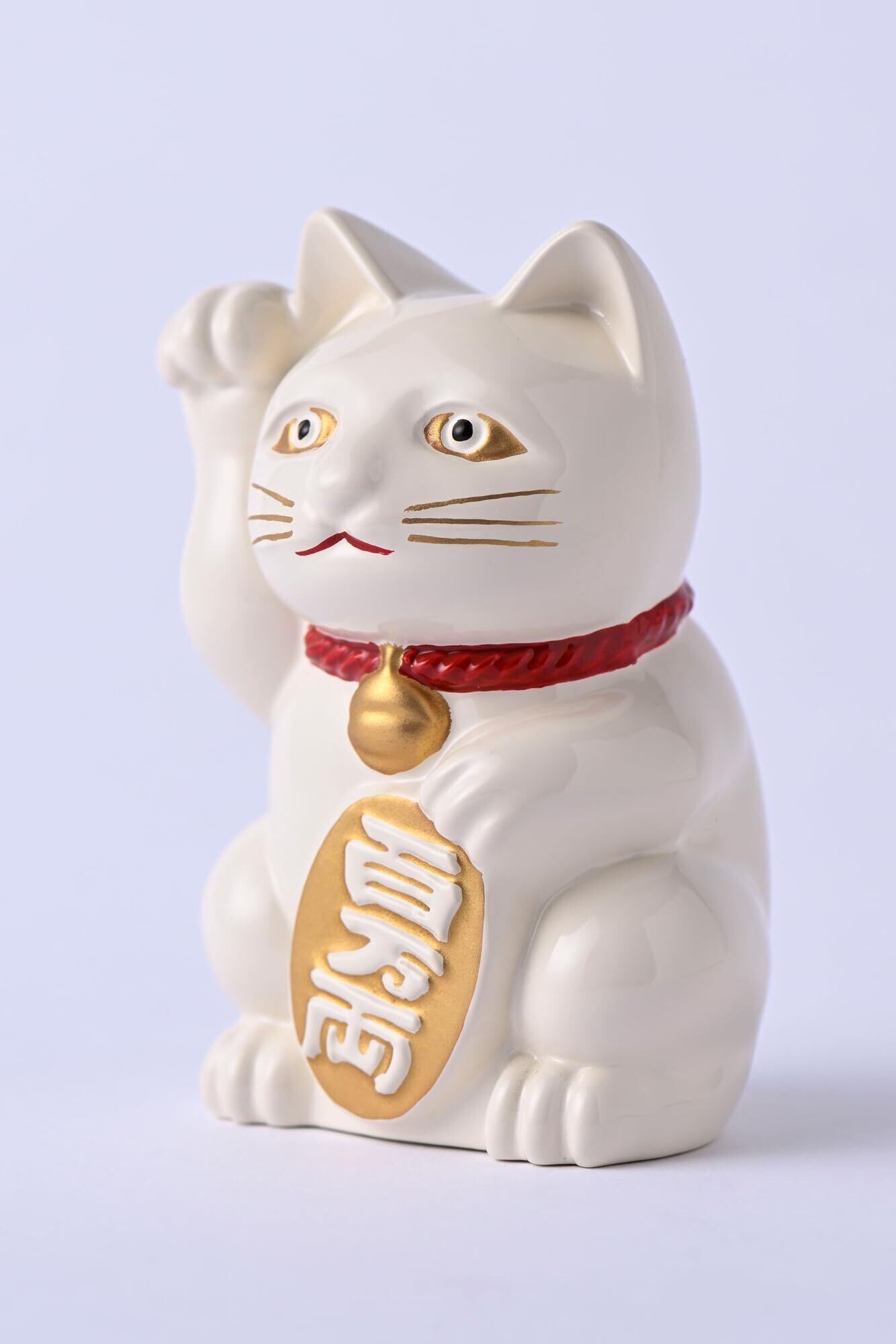 銀雅堂 招き猫 白漆色_右手あげ/金属製_lucky cat まねき猫 縁起 風水 置物 高岡銅器(まねきねこWH)