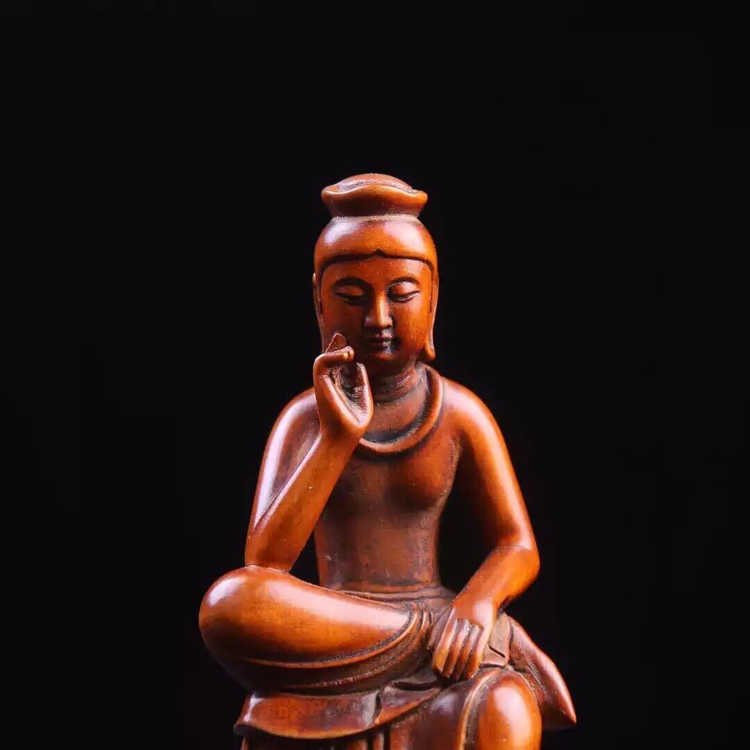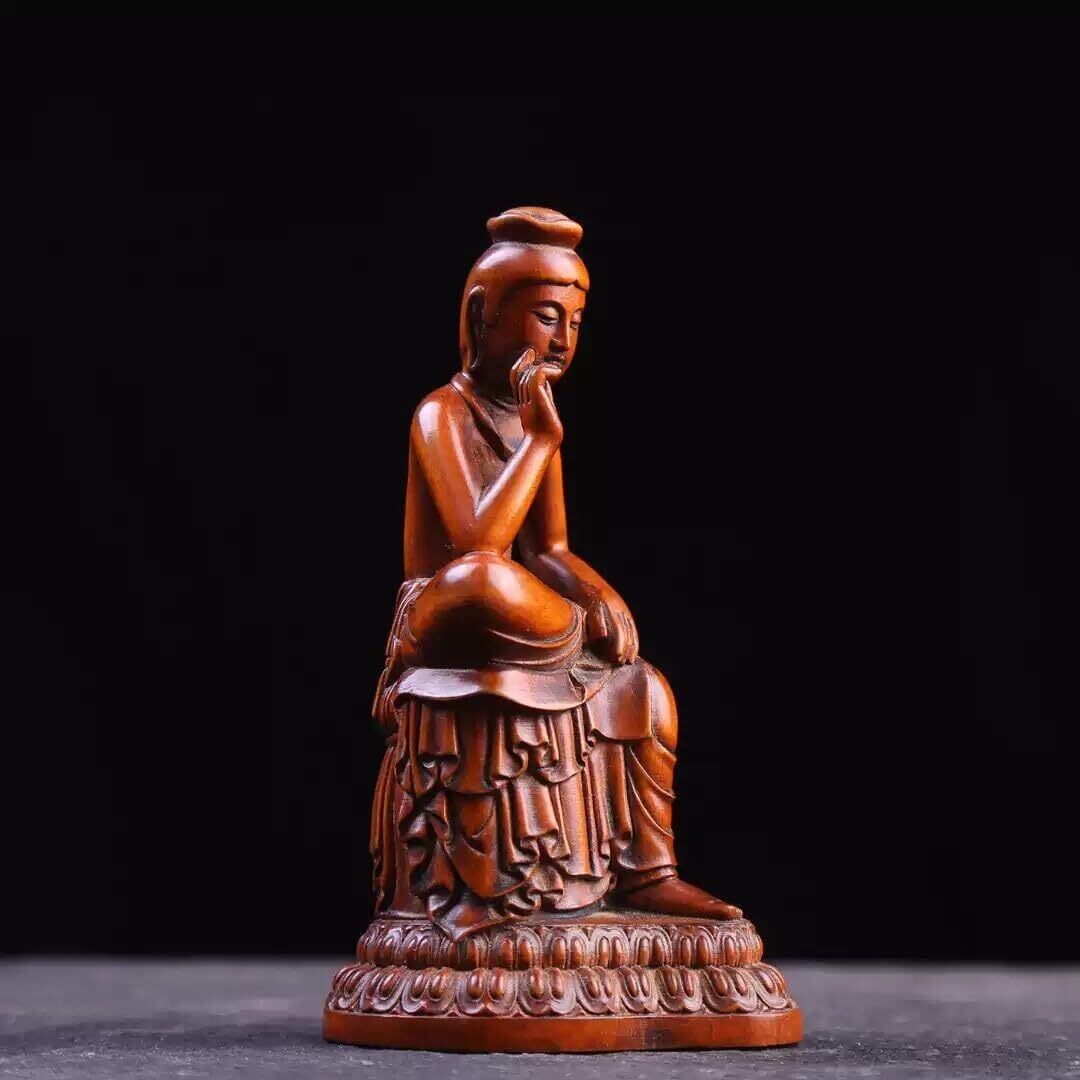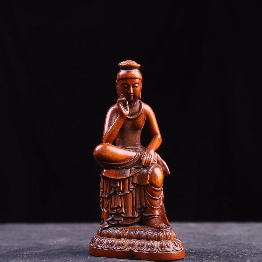 木彫りの仏像【弥勒菩薩】12.5cm 柘植 ツゲ 木製 弥勒菩薩半跏思惟像 古美色 (みろくぼさつ)