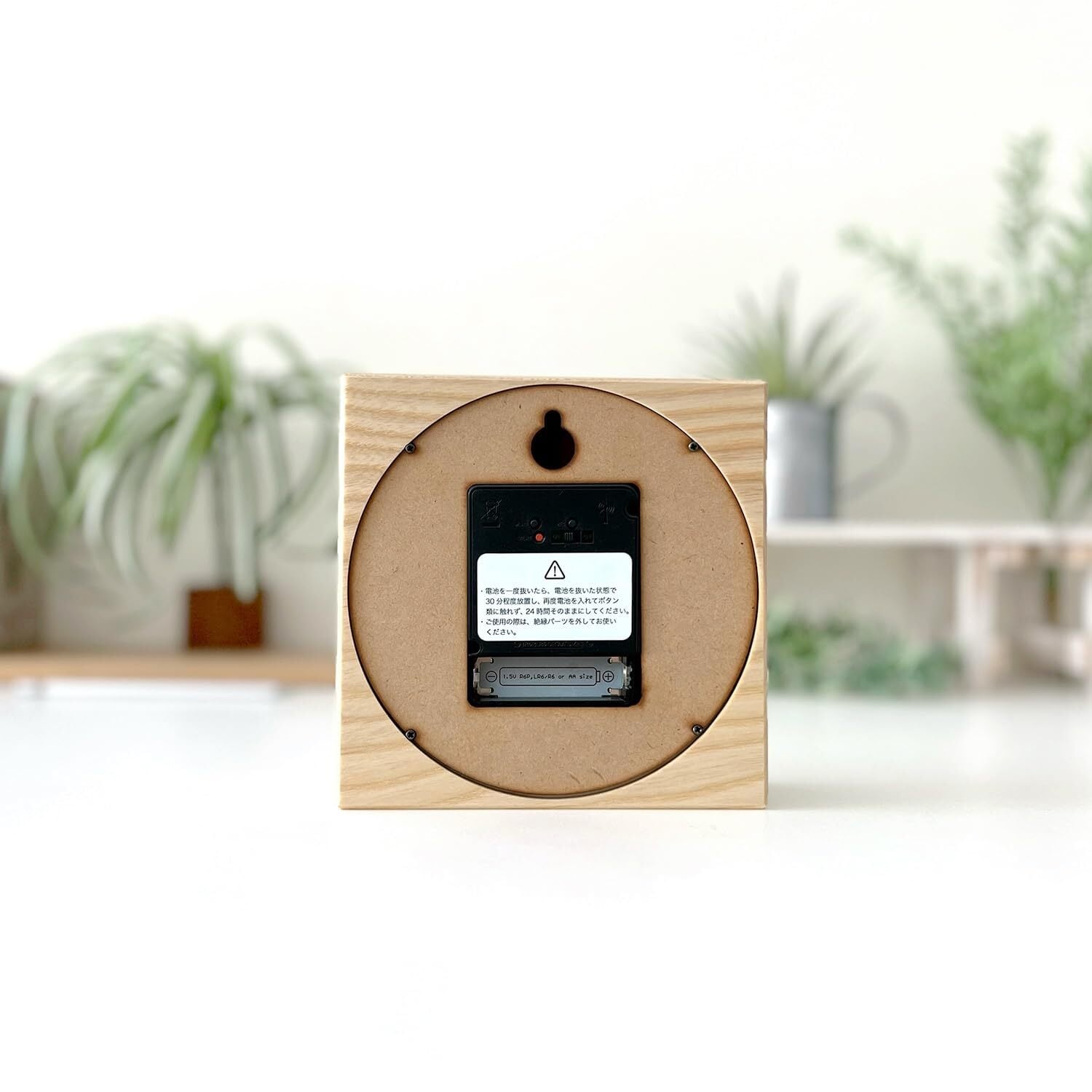 サイズ:140×140×47mm 重量:390g 材質:ホワイトアッシュ、アクリル、MDF 仕様:スイープムーブメント(連続秒針)付属品:壁掛け用ねじ、取扱説明書、保証書、単3電池1本
