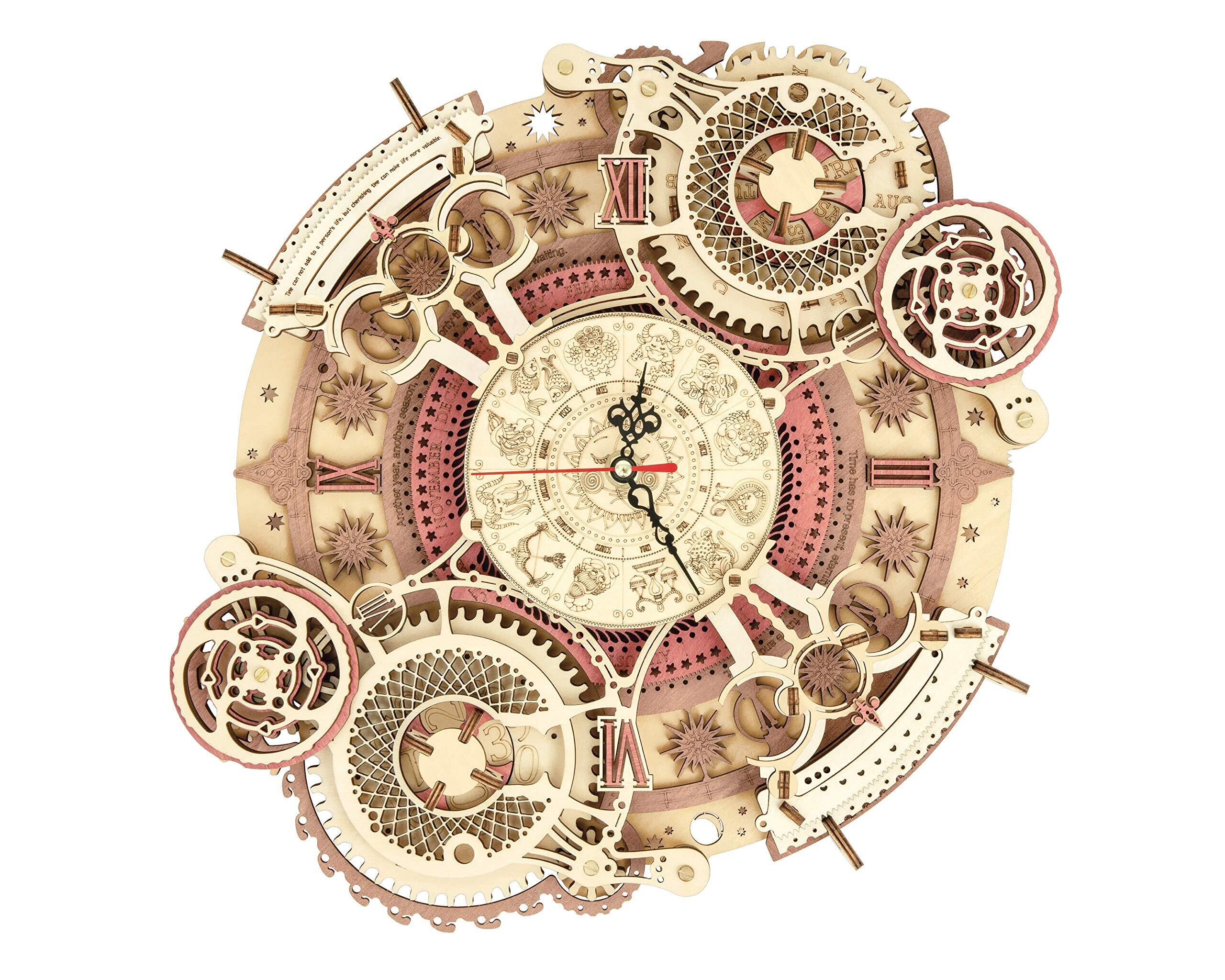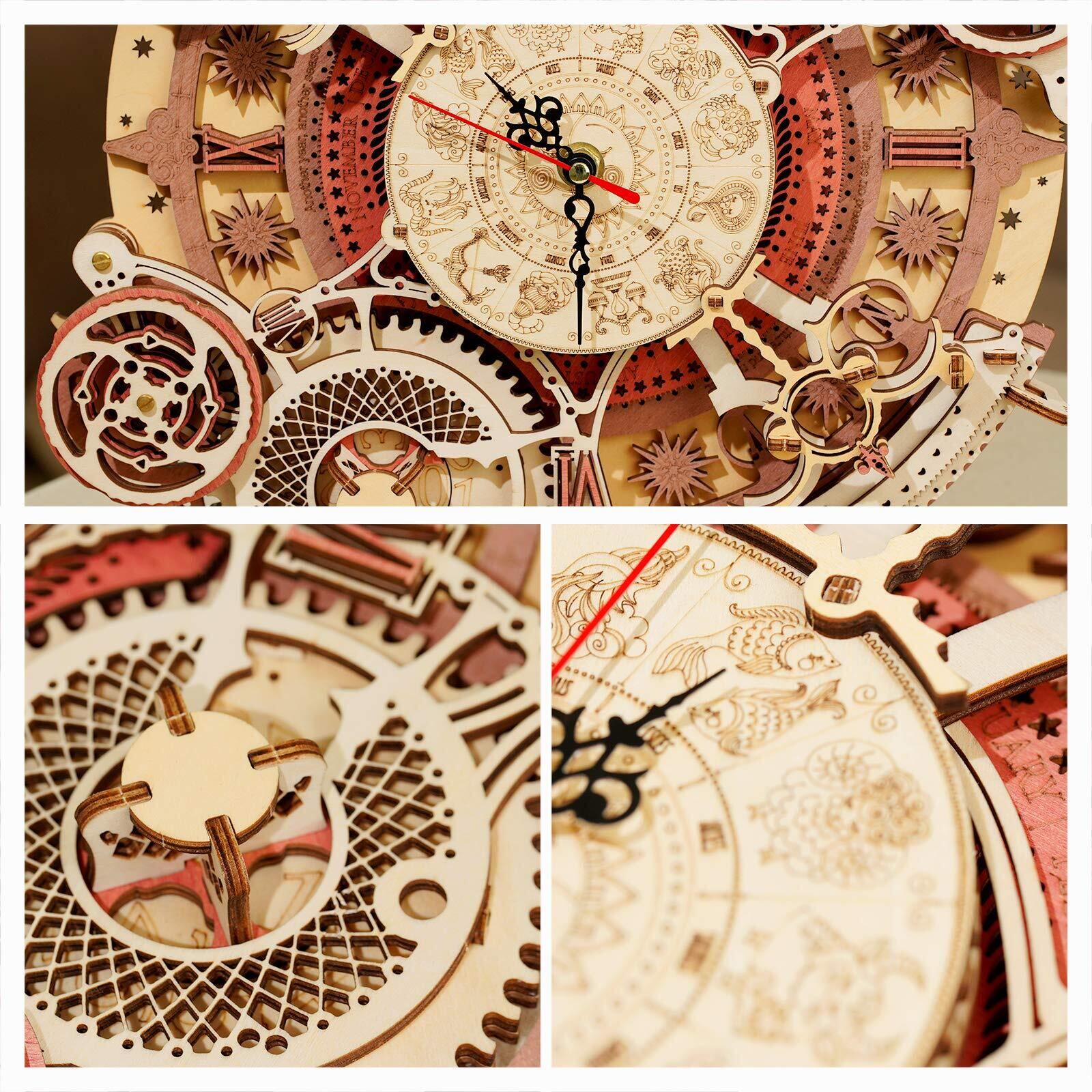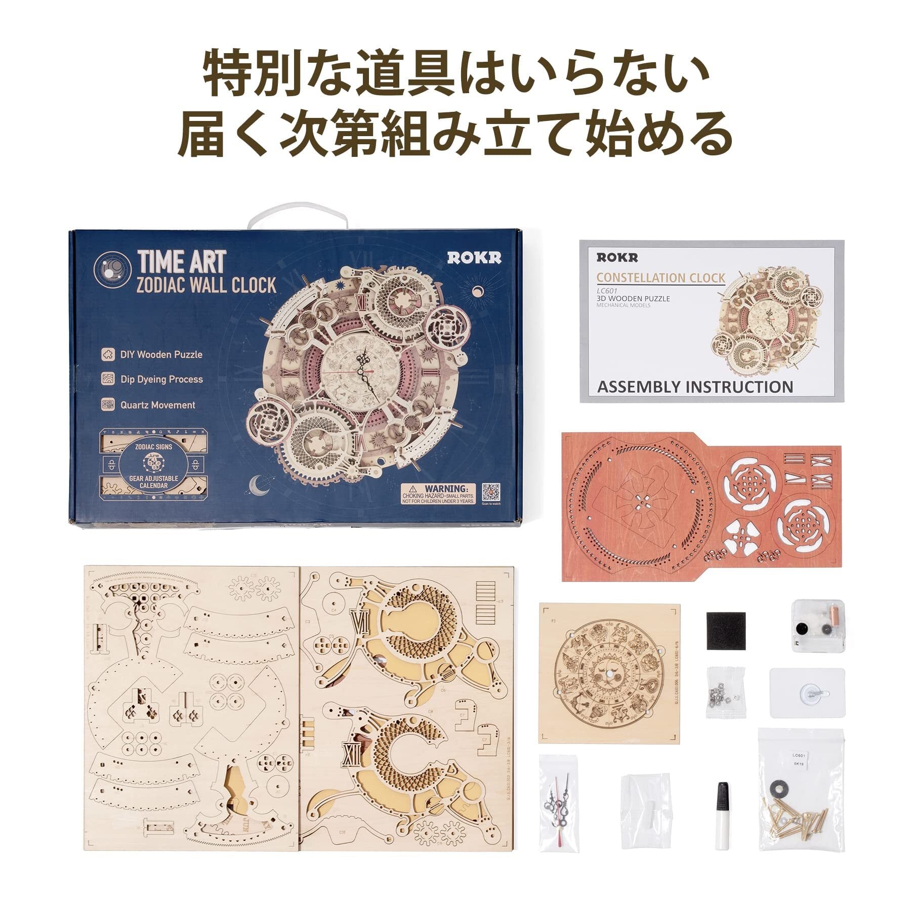 ROKR 立体 パズル 木製 3d ウッド 時計 掛け 壁 実用系 単三 子供 工作 大人 14歳+ 使える イラスト説明書付きモデルキット プレゼント ギフト DIY 手つくりキット おもちゃ 知育 インテリア 置物 専門道具不要 接続剤不要 おしゃれ 面白い 脳トレ 集中力