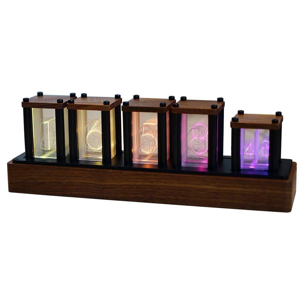 RISEN ニキシー管風置き時計 レトロモダン木製クロック 1600万色 RGBフルカラーLEDデジタル DIY卓上時計インテリア (ブラックウォールナット)