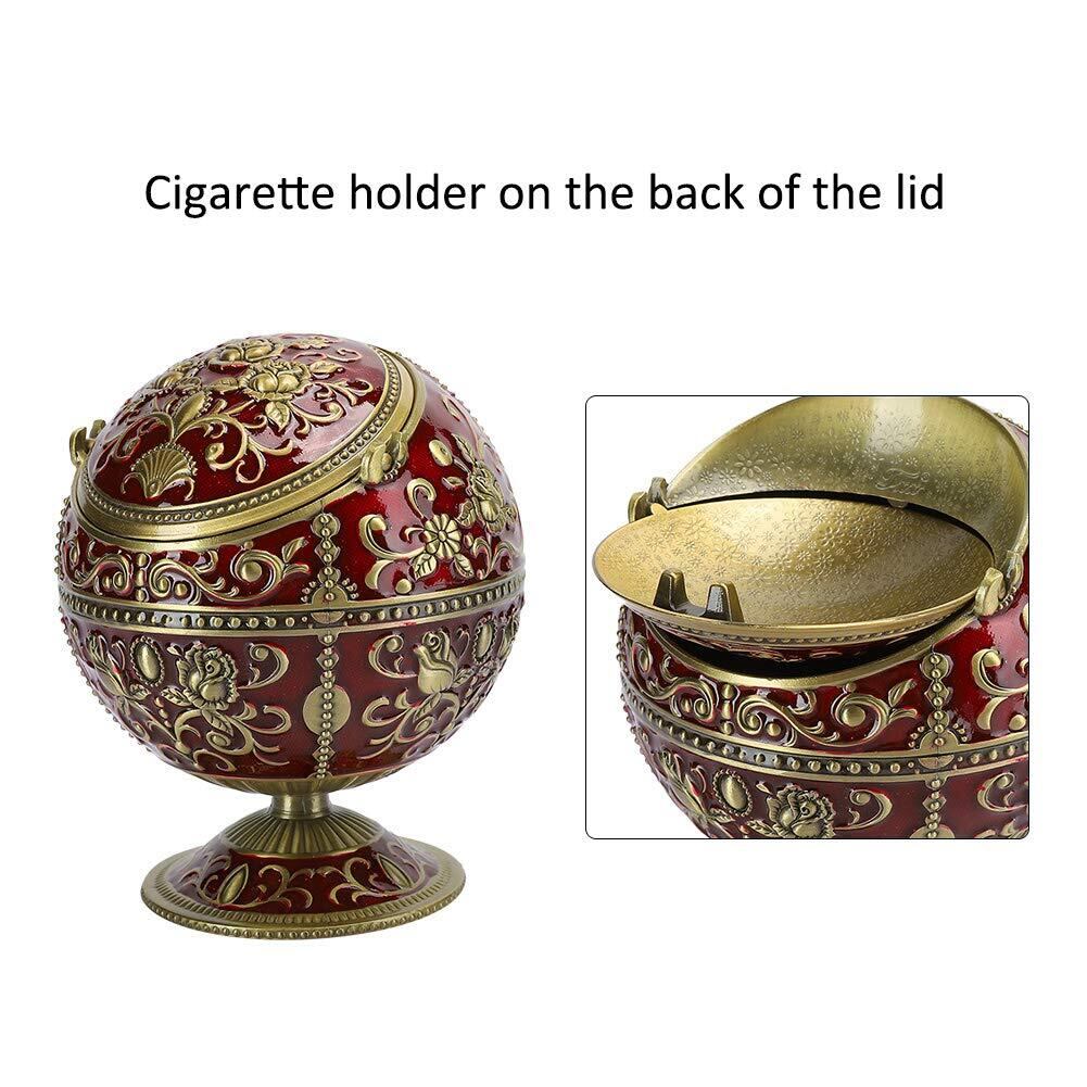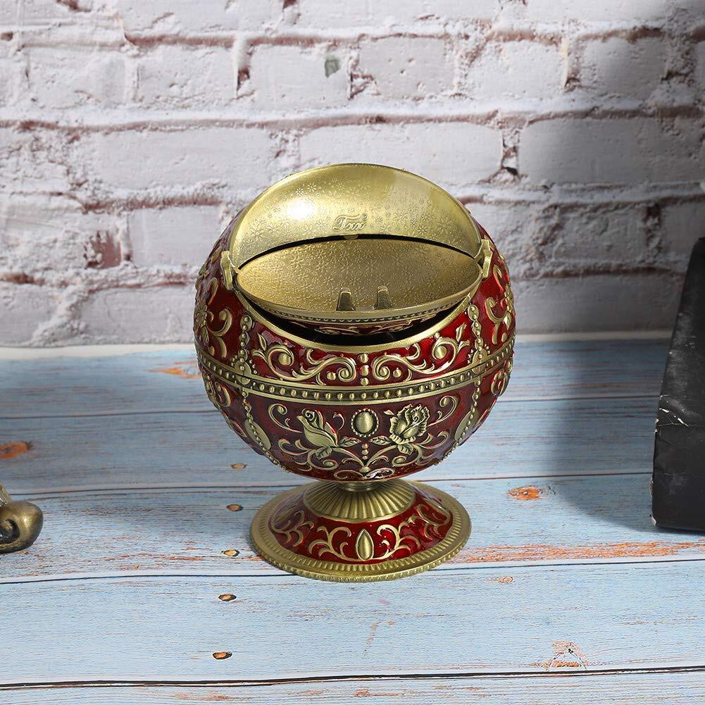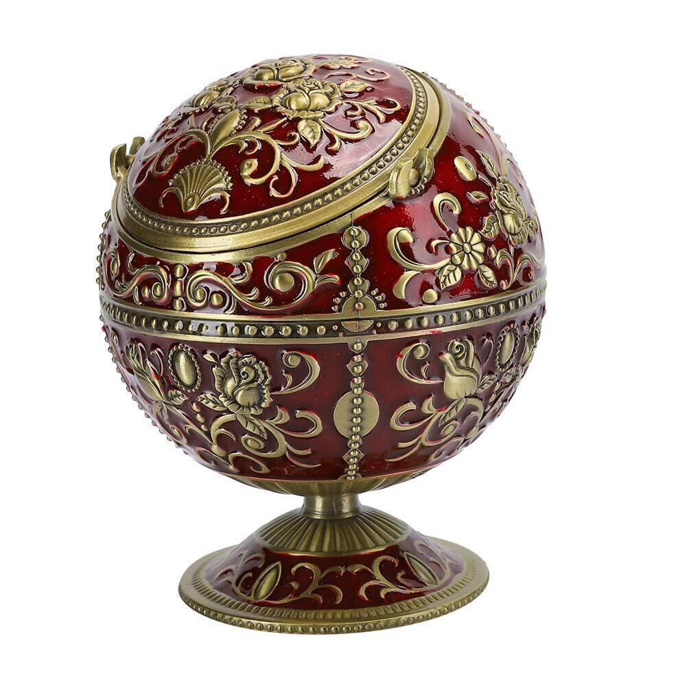 xuuyuu.. 地球儀型灰皿 レトロ灰皿 卓上灰皿 防風灰皿 ヨーロッパ アンティーク風 球体 おしゃれ 亜鉛合金製 蓋付き タバコ 吸い殻 置物 飾り物 バラ柄