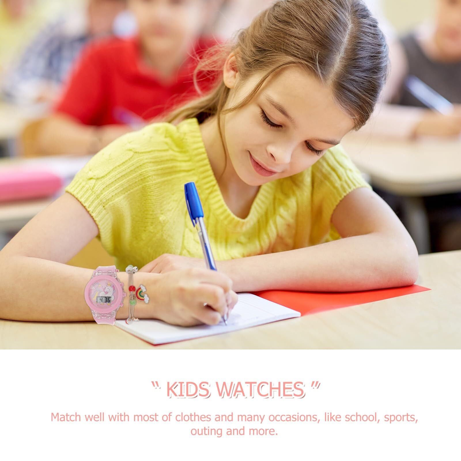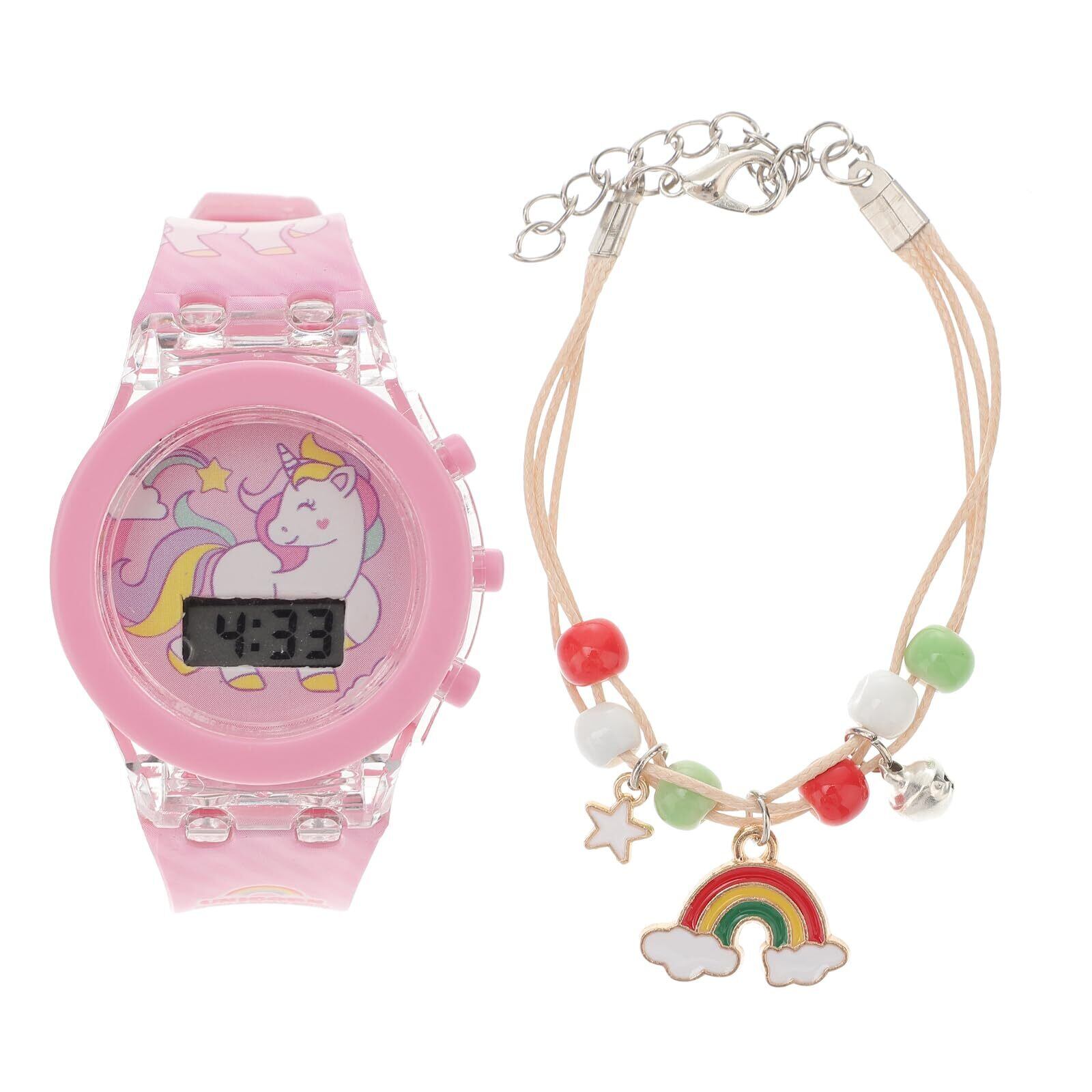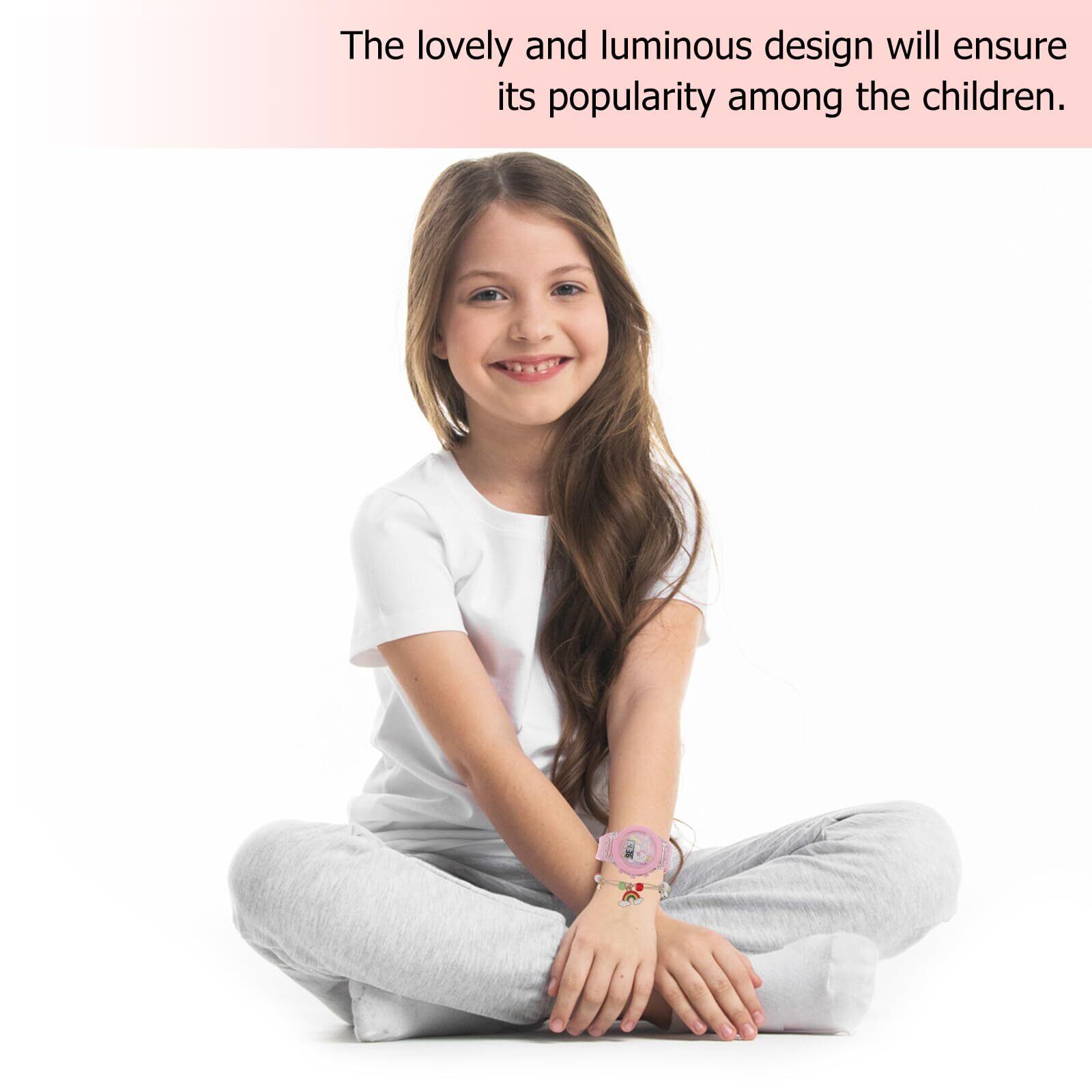 POPETPOP 腕時計 子供 女の子 安い キッズ ガールズ 女の子 ユニコーン柄 虹のブレスレット付き デジタル 愛らしい 発光 日付曜日表示 デュアルタイム LED 子供の日 入学 通学 入園 通園 新学期 誕生日 お祝い