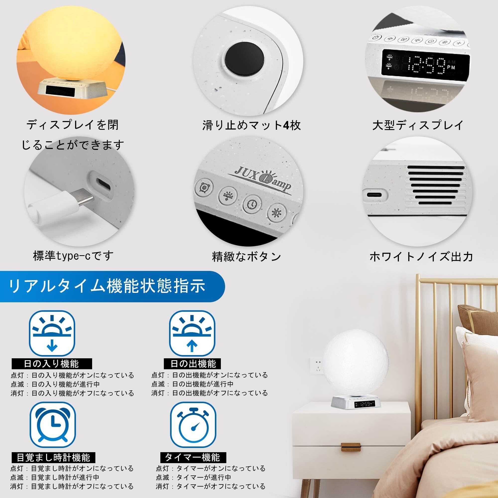 ライトセラピー、ムーンライトランプ、UVフリー、ハッピームード、ランプ、3色の色調整が可能、ナチュラルアンビエントホワイトノイズ内蔵、日の出・日没の時刻設定が可能なランプ、リビングルーム、ベッドルーム、オフィス、読書や仕事の際のベッドサイドランプに最適