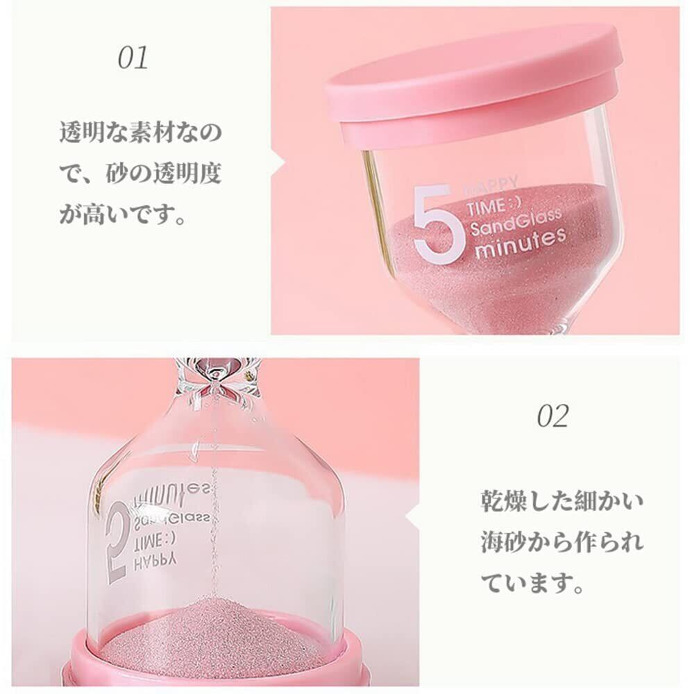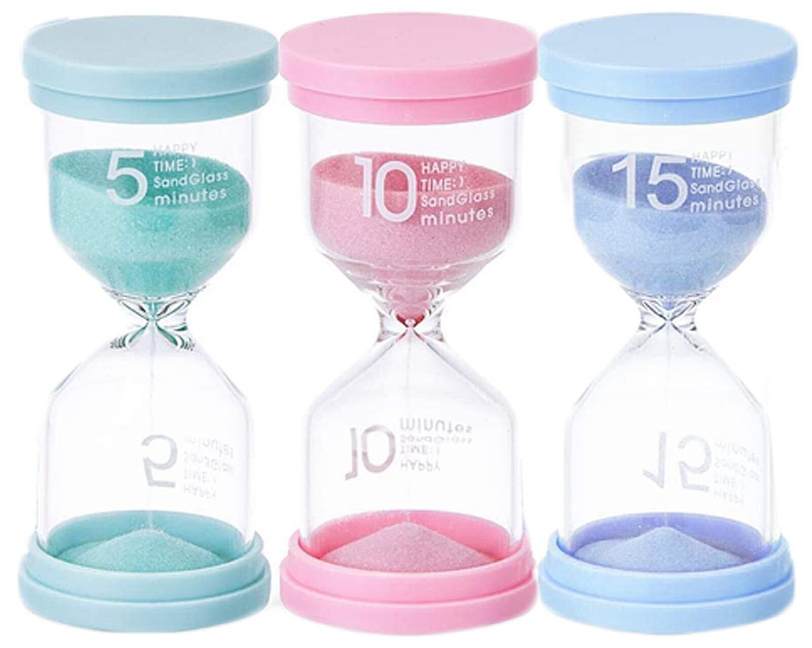 【パッケージ内容】3個の砂時計。5分グリーン+10分ピンク+15分ブルー。