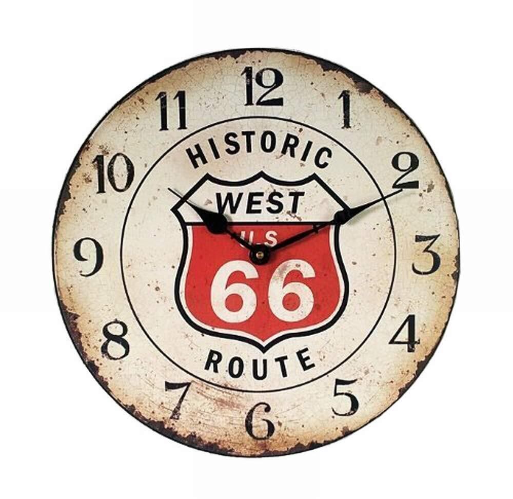 ルート66(ROUTE66)の掛け時計です。非常にCOOLなデザインですよぉ表面のひび割れ感やスクラッチ、汚れなどすべてプリントで再現されています。しかも結構近くから見てもリアルです。ロードサインのレッド色もイイ感じのアクセントになってますよね!アメリカンインテリアの演出に活躍してくれそうな時計といえるでしょう。オススメです■サイズ(約)L33cmXW33cm■備考・素材:木製・単三電池1本別