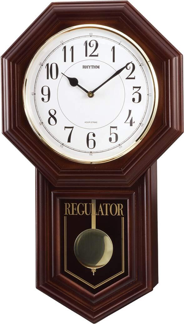 【数量限定】リズム(RHYTHM) 柱 掛け時計 アナログ 振り子 電子音報時(チャイム) 木 茶 (半艶仕上げ) ベングラーR 4MJA03RH06