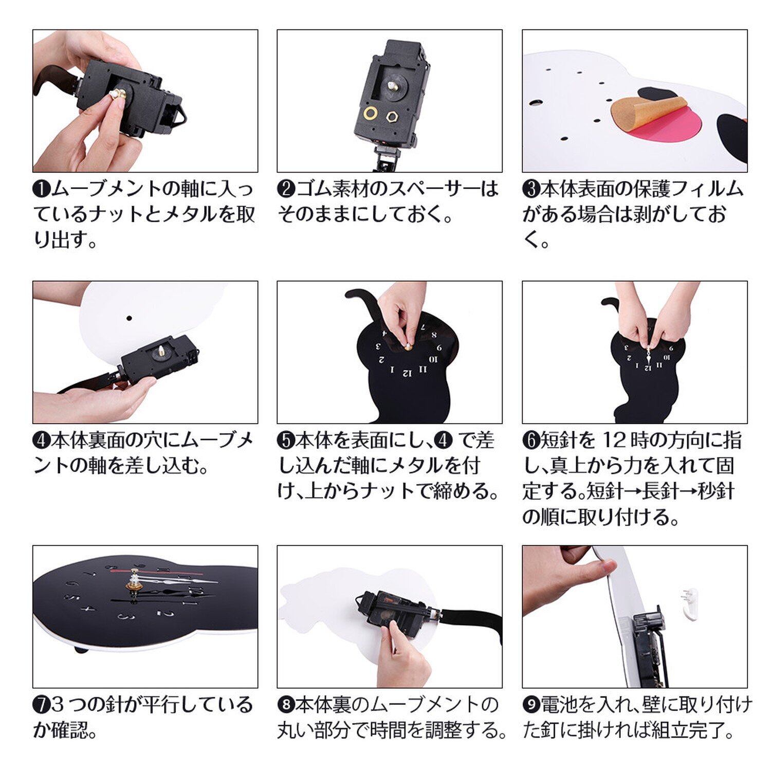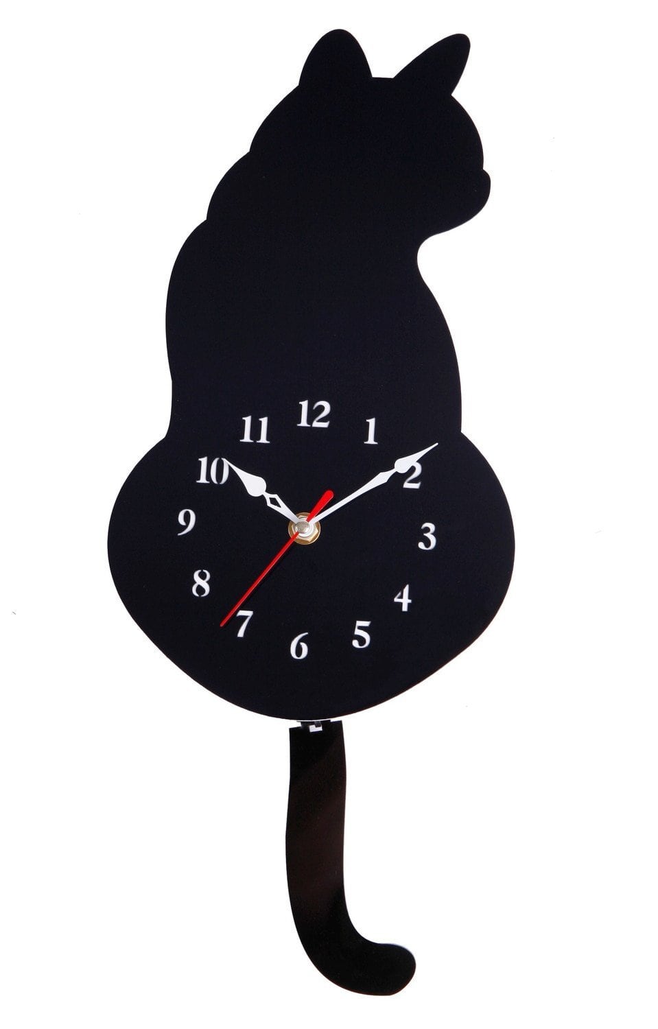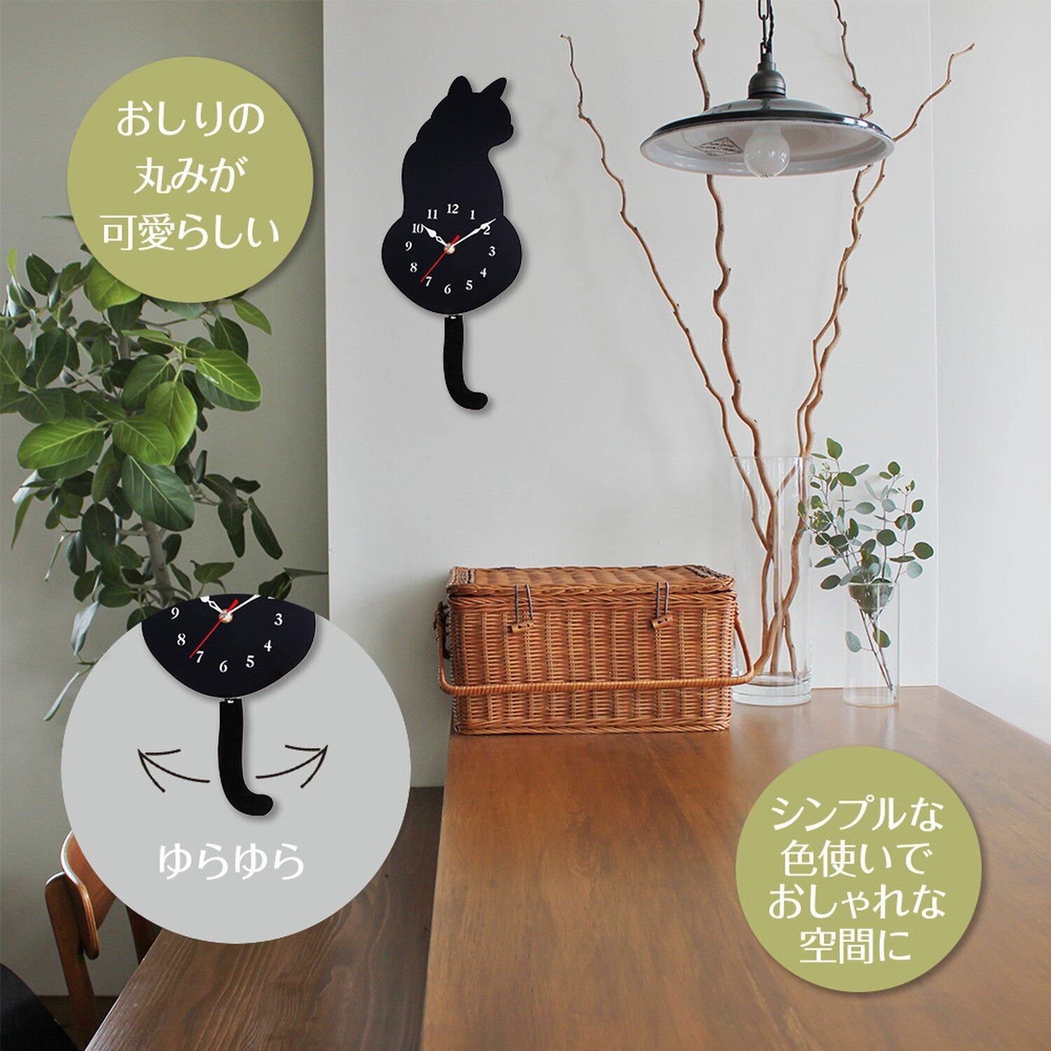 Smiti しっぽが揺れる 猫の 振り子時計 掛け時計 黒猫 組み立て簡単 日本語説明書付き