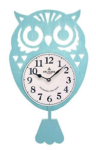 ケーアイジャパン 壁掛け時計 ふくろう 振り子時計 ブルー 42×25cm (おしゃれ な アンティーク調 シャビー加工 、ガラスなし)