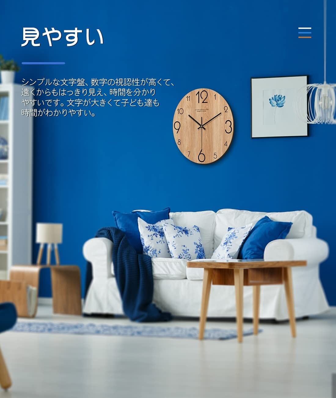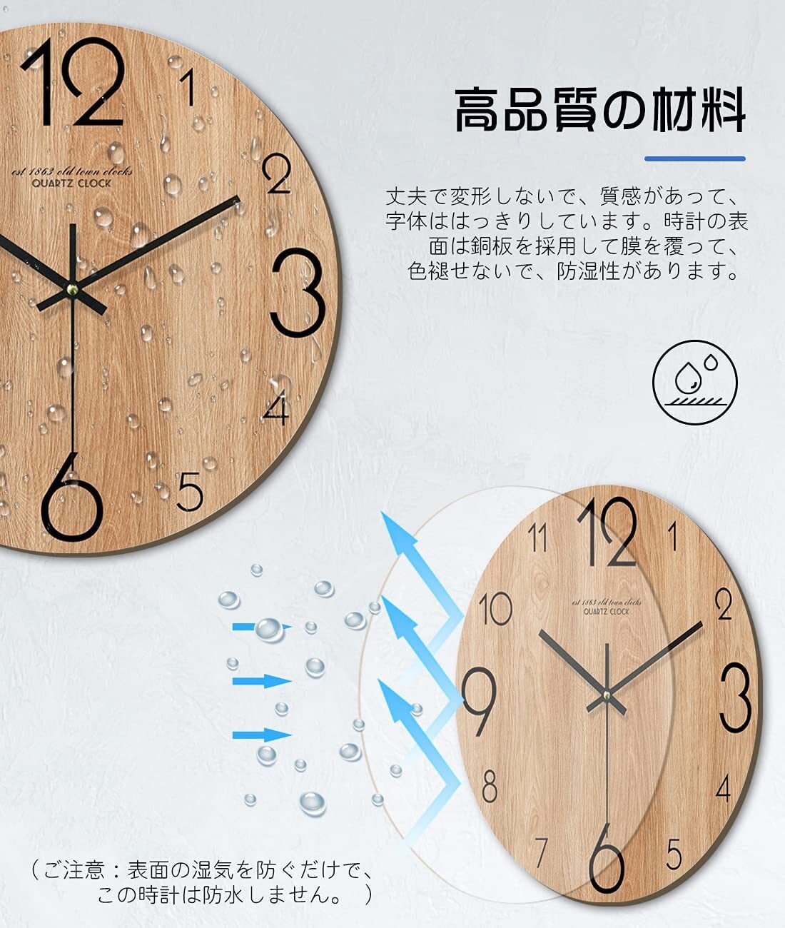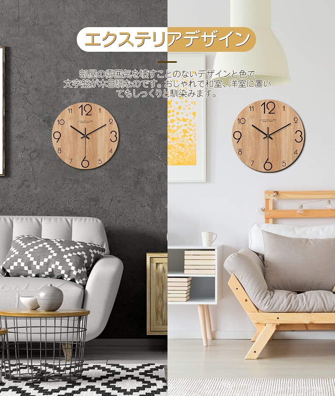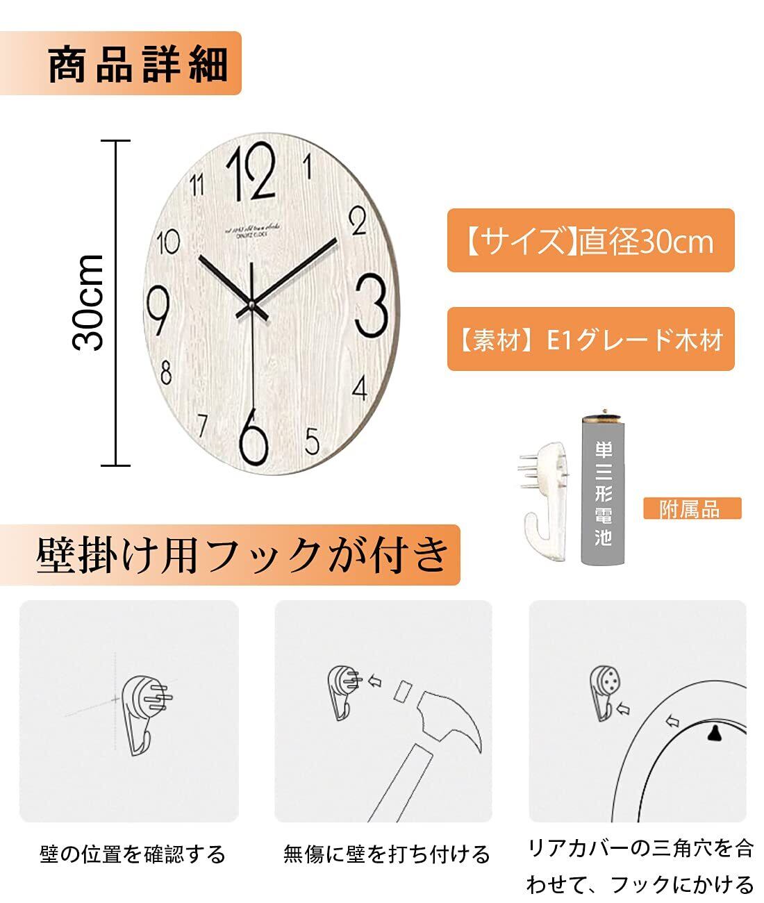 【素材】E1グレードの環境に優しい木材で作られています。大きなアラビア数字が刻まれており、きくて子ども達も時間がわかりやすい。 おしゃれで和室、洋室に置いてもしっくりと馴染みます。簡単に掛けるだけであっという間におしゃれな空間に早変わり!