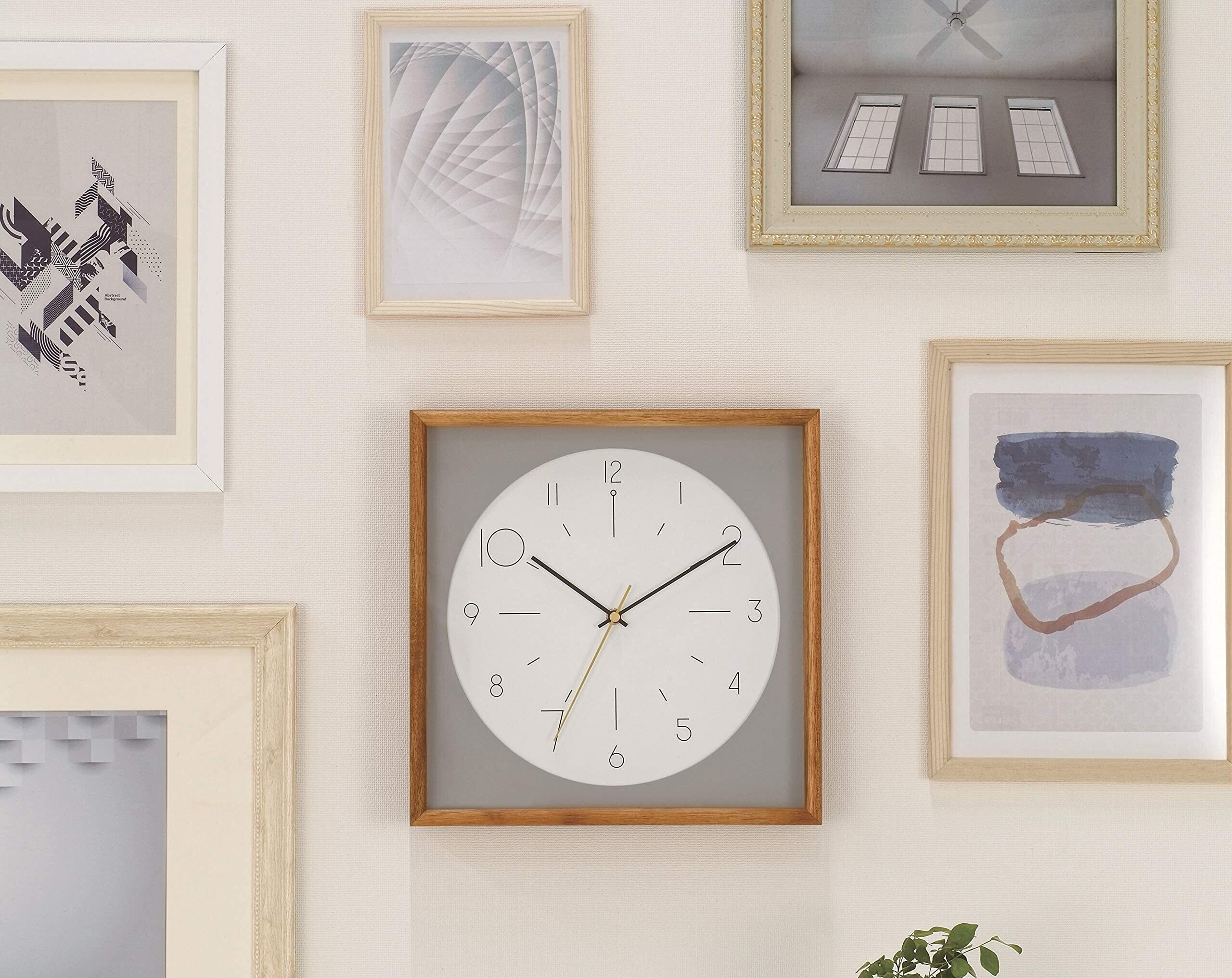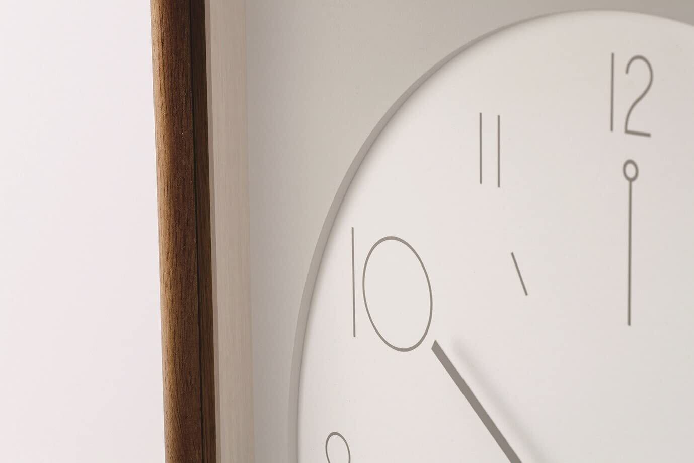 【商品の概要】 アートフレームのような個性的なデザインの掛け時計です。フロント部分のエッジに丸みを持たせ丁寧にしつらえたウッドフレームは高級感があります。盤面は2重構造となっており、一段低く設計された丸い文字盤に数字とインデックスがグラフィカルに並んでいます。アートのように時計を飾るというコンセプトから生まれた、細やかなこだわりが随所に見られるデザインです。