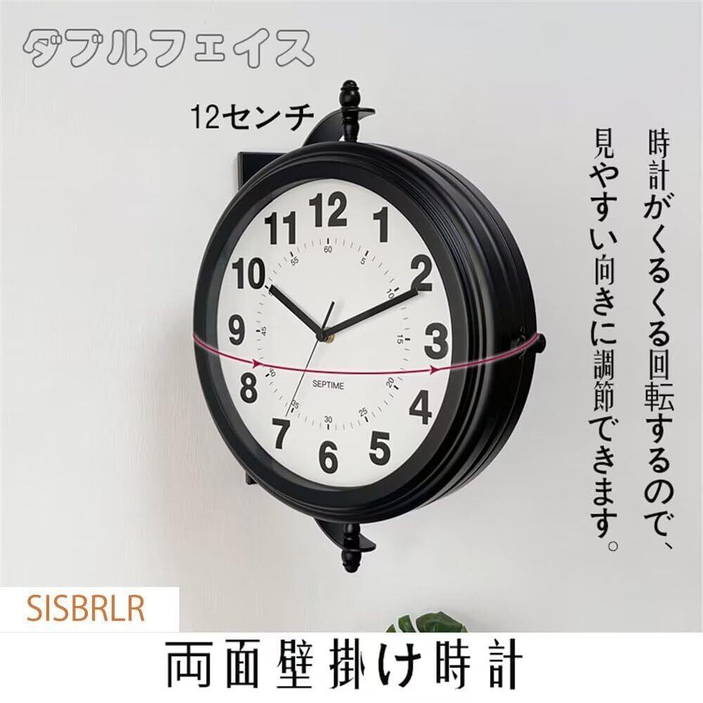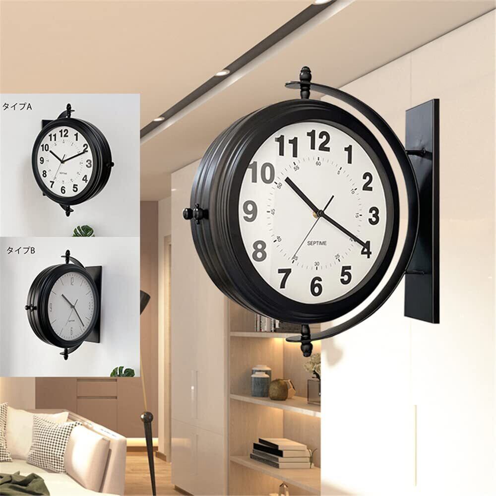 【2022最新】両面時計 壁掛け 時計 オシャレ 壁 屋外 時計 アンティーク 両面 時計 おしゃれ 店舗時計 ショップ カフェ 置き時計 インテリア 西海岸風 静音 SISBRLR タイプB