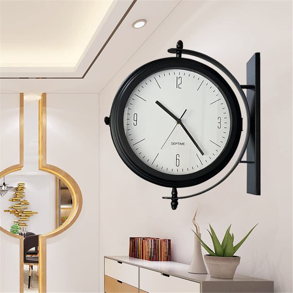 【おしゃれな両面時計】両面時計 壁掛け。キッチン、リビング、玄関、ベッドルーム、居間、図書館、オフィス、ショップ、カフェなどふさわしい、シーンを選ばず馴染みます。スタイリッシュを感じさせる現代的なインテリア壁掛け時計