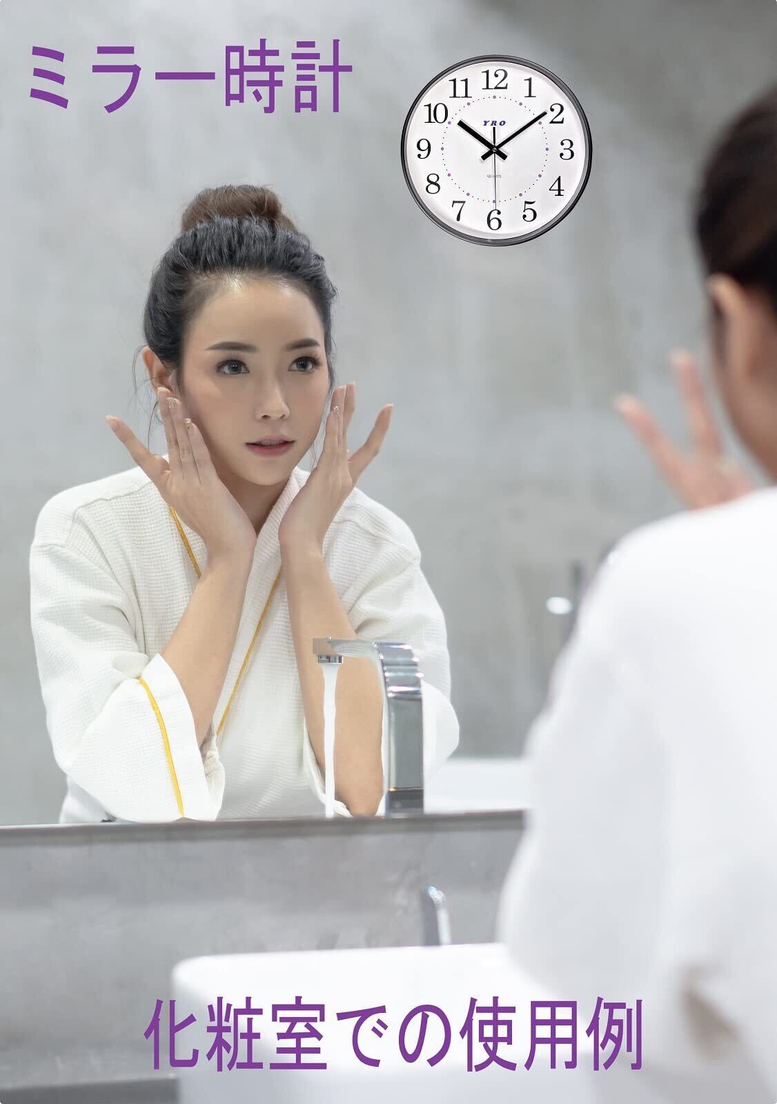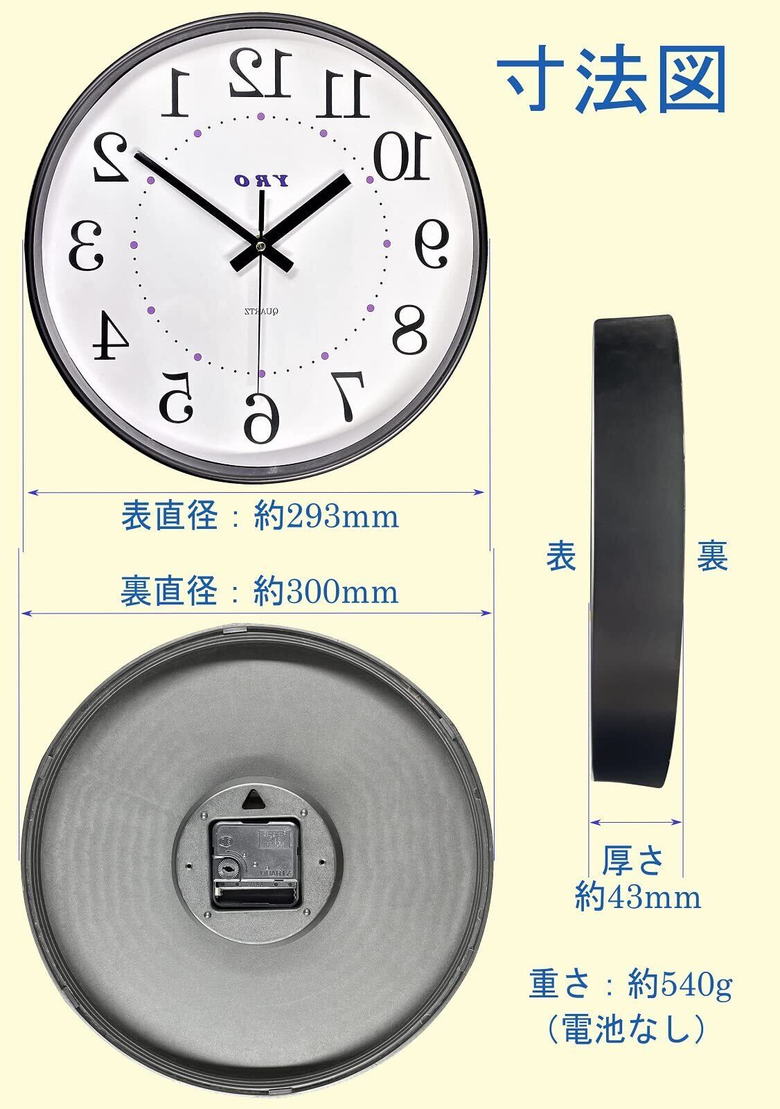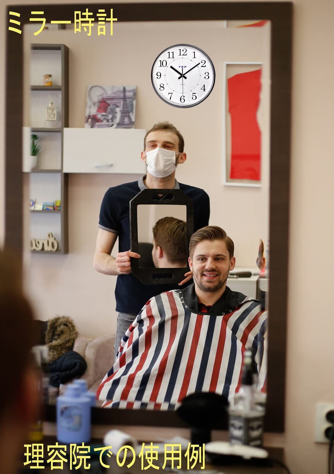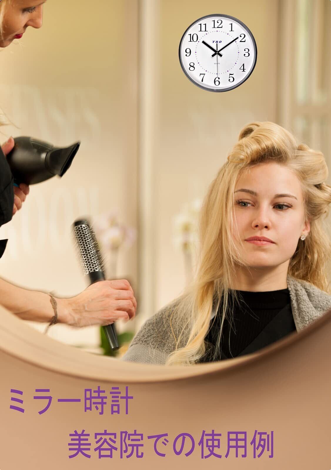 YRO ミラー時計 掛け時計 逆転時計 逆回り 反転時計 鏡に映して使う 壁掛け時計 美容院 理容院 洗面所 ダンス教室 (ホワイトA)