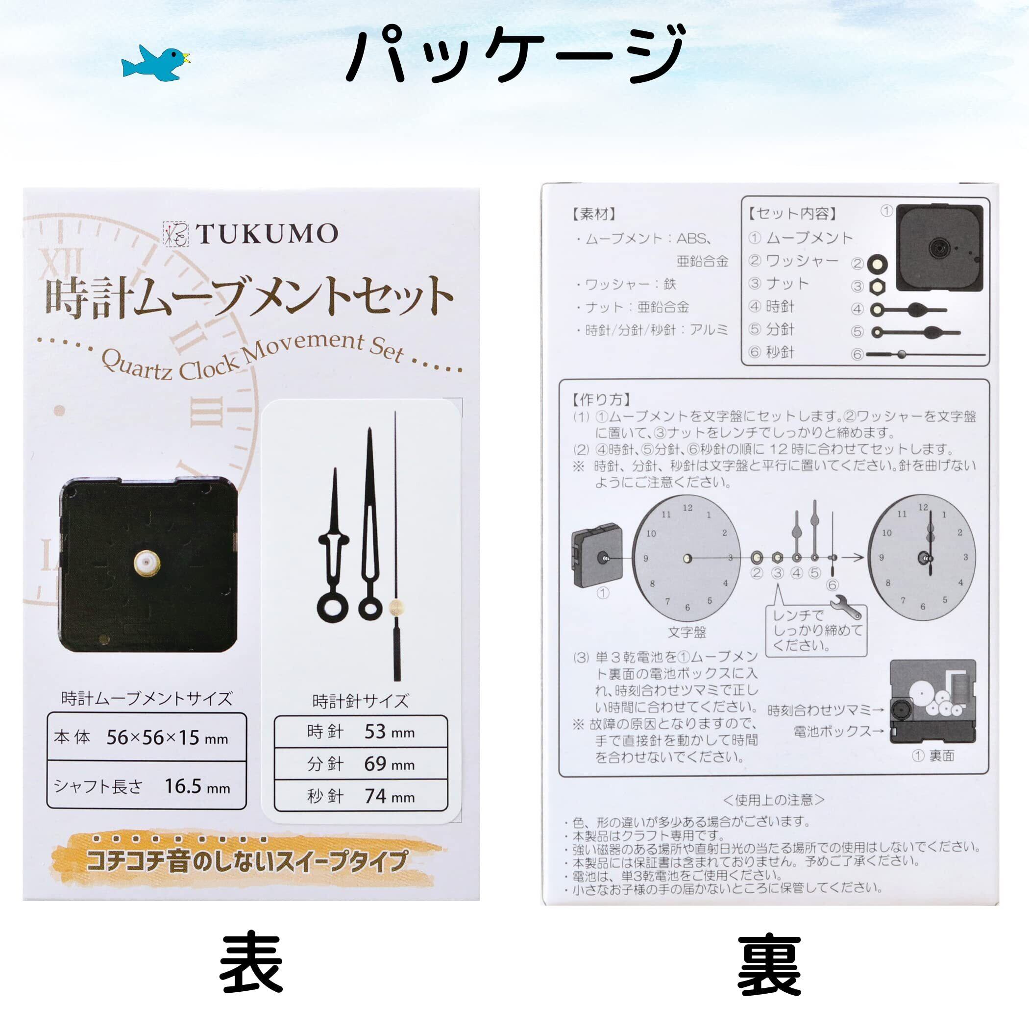 TUKUMO 時計ムーブメントセット [ミドルシャフト] スイープ秒針 クラフト用 補修 交換 修理 クォーツ 静音 (時計針 長い①)