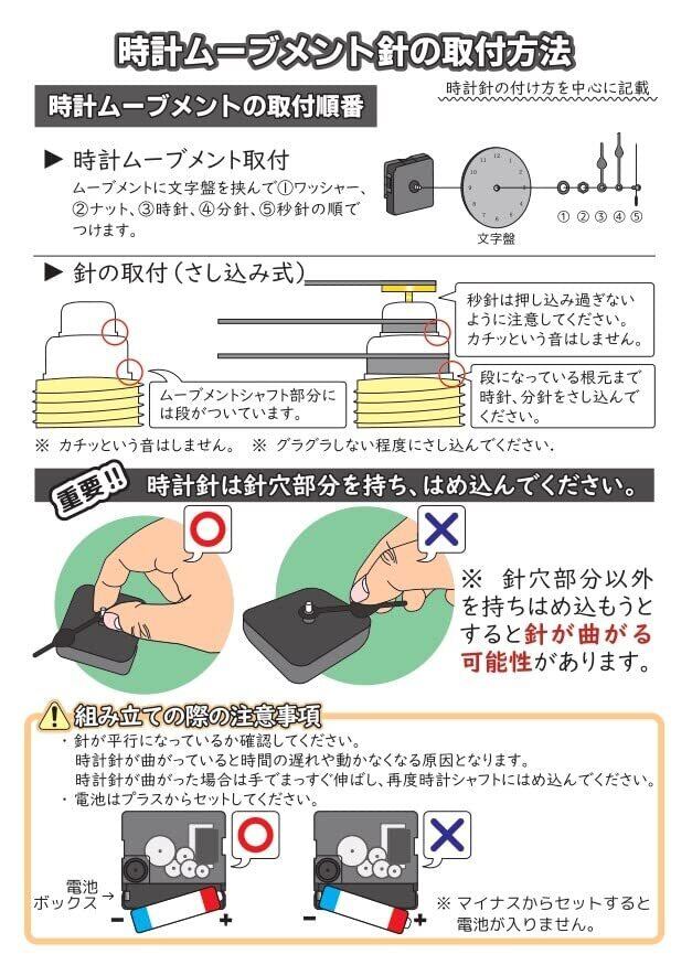 内容物;ムーブメント、時計針(時針、分針、秒針)、ナット、ワッシャー