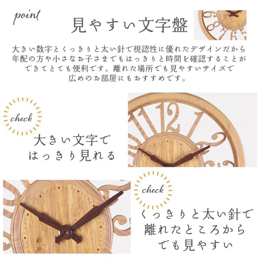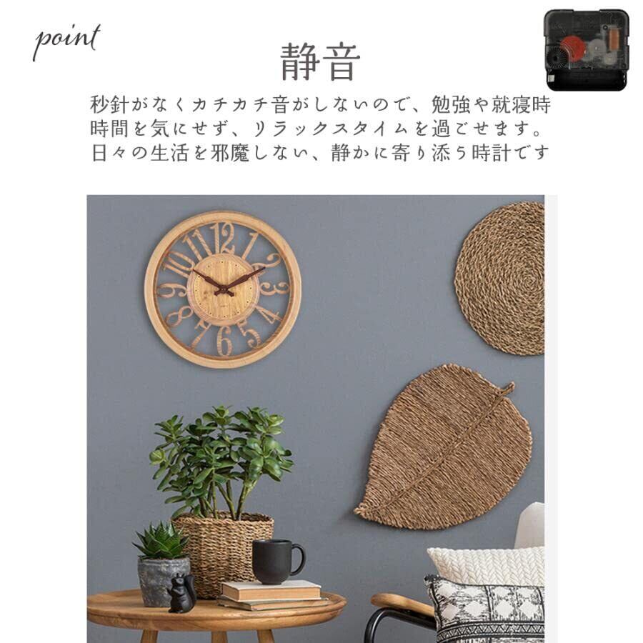 e-smile 壁掛け時計 おしゃれ 北欧 木目調 静音 静か 30cm (ナチュラル)