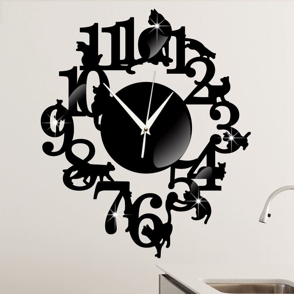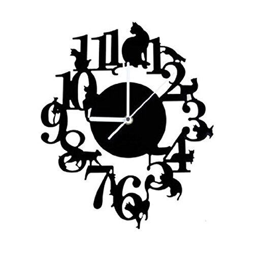 Dovhmoh おしゃれ ! 黒猫 掛け時計 フック セット アンティーク インテリア 壁掛け時計 北欧 時計 かわいい ネコ ねこ (ブラック)
