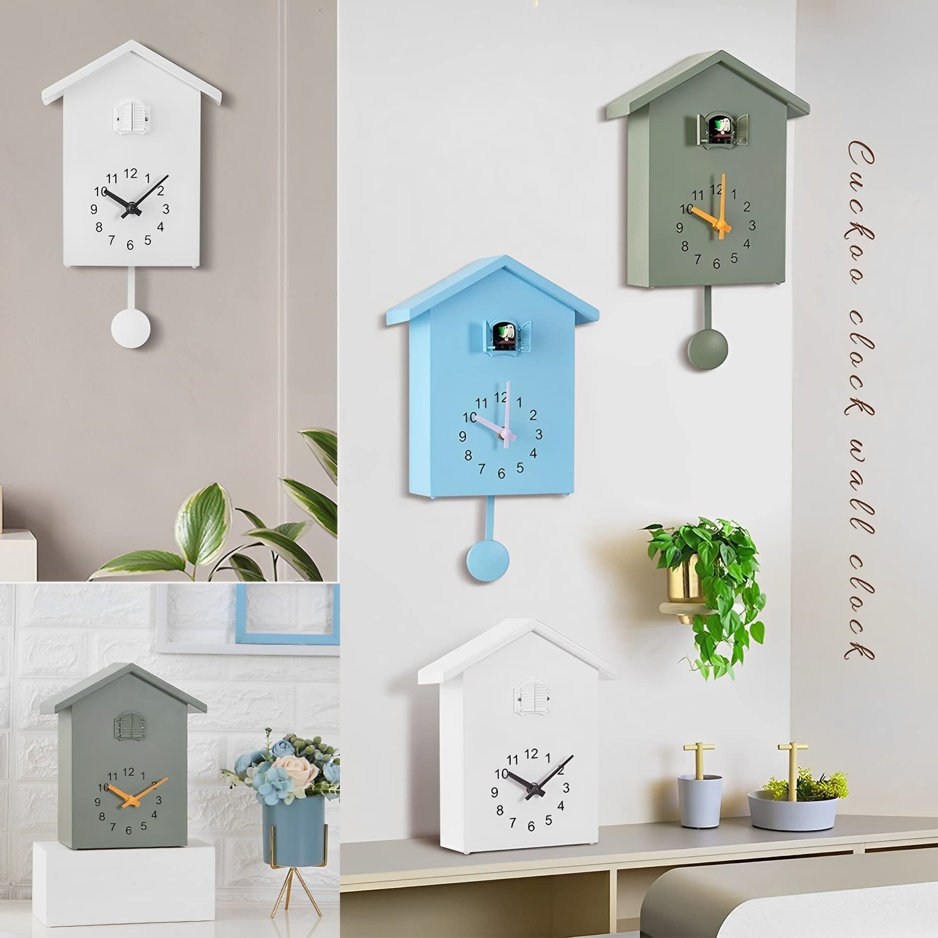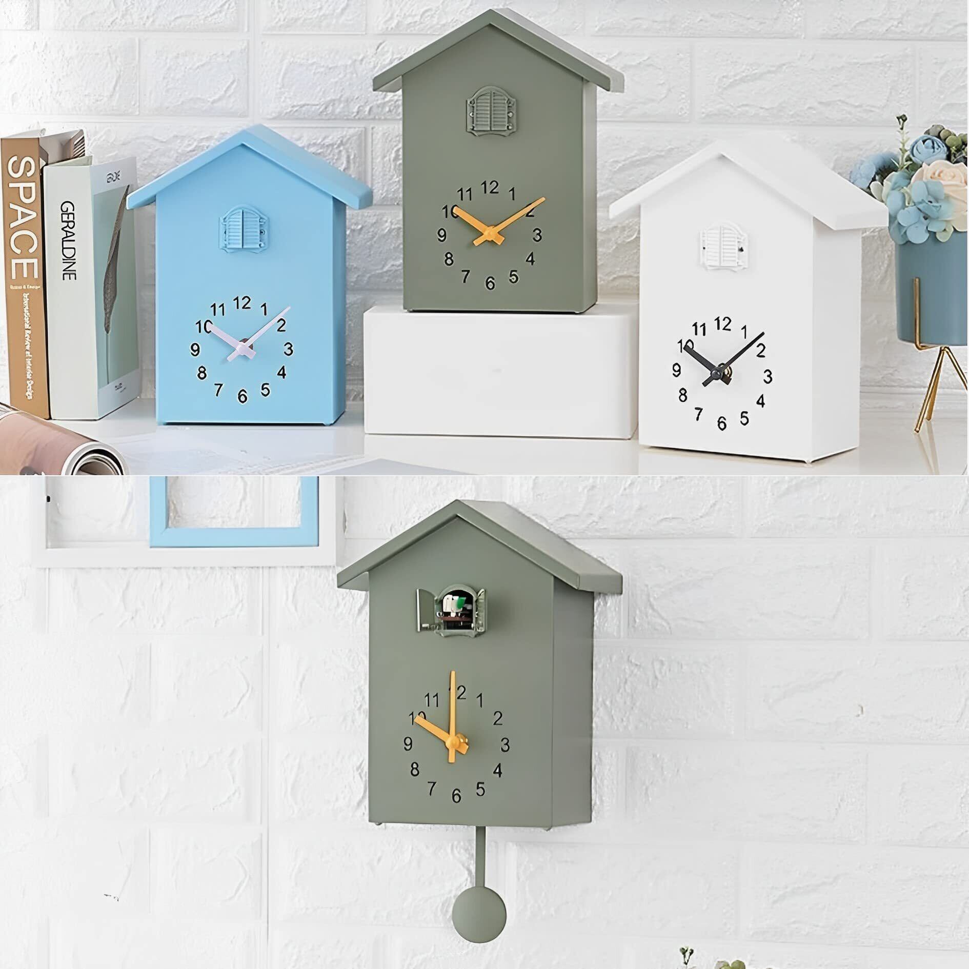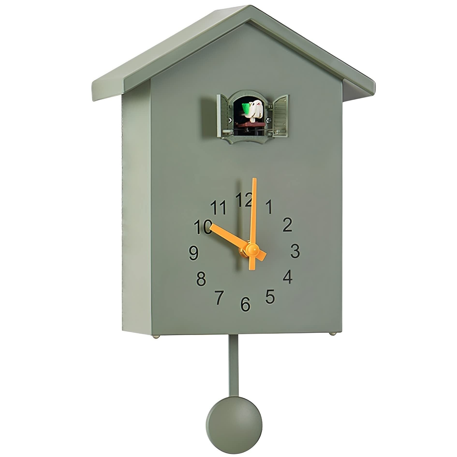 MIMIA 時計 鳩時計 掛け時計 置き時計 2Way 壁掛け 振り子 クロック 静音 可愛い ストレス 北欧 インテリア アンティーク 鳩 (グリーン)