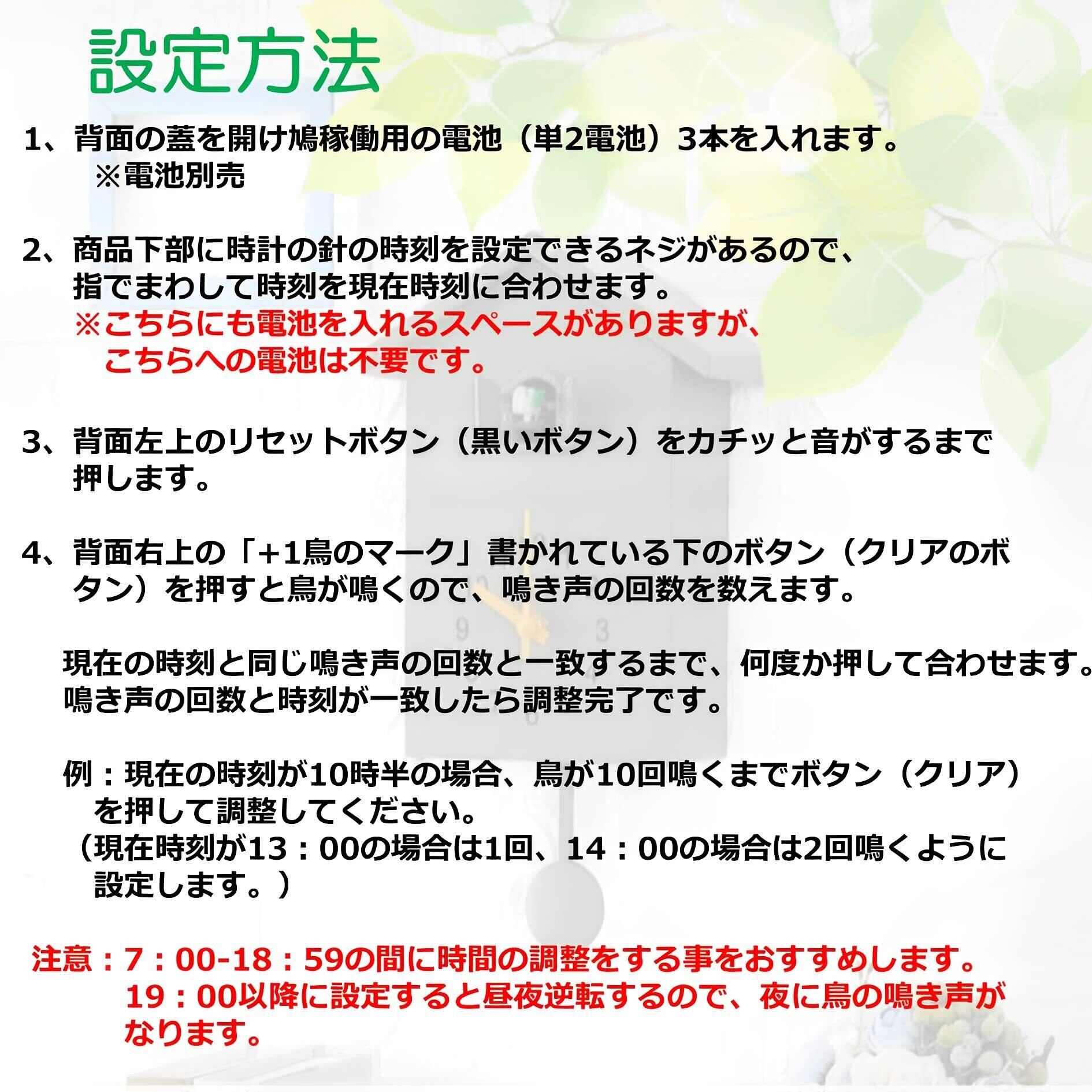 ※鳩が鳴く時間は設定した時間の前後10分程度の誤差がございます。こちらの理由での返品・返金についてはできかねますので、ご了承ください。