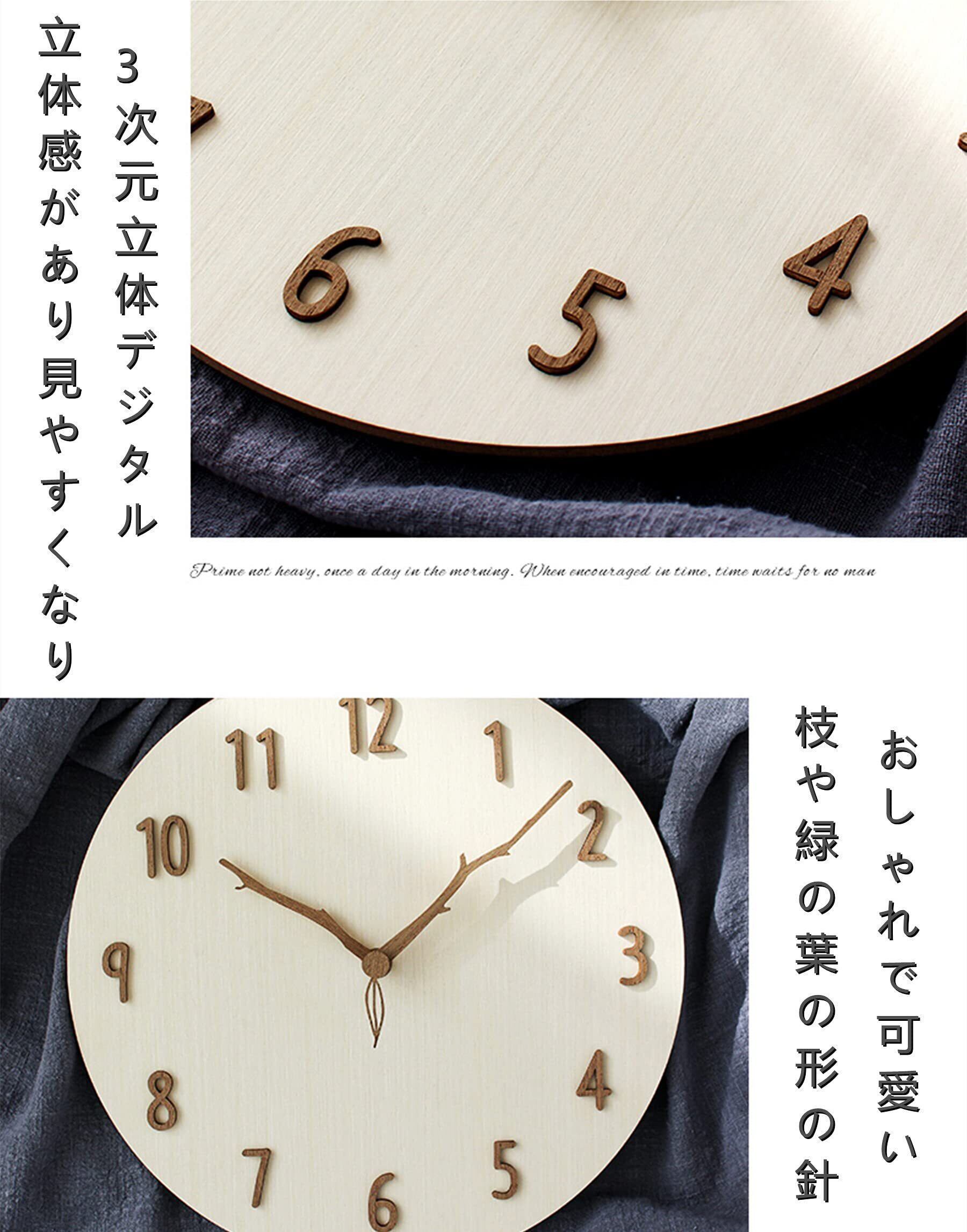 1.【おしゃれ文字盤】ユニークなクリエイティブな木枝緑葉木製針、3D立体数字、オープンフレームなしデザイン、斜めから見てもはっきりし、掛け時計全体が天然木で作られ、パネルの厚さは5MMのみのみ、とても軽くて、掛けやすく、各部屋家具の装飾が簡単で、おしゃれで優しいです。