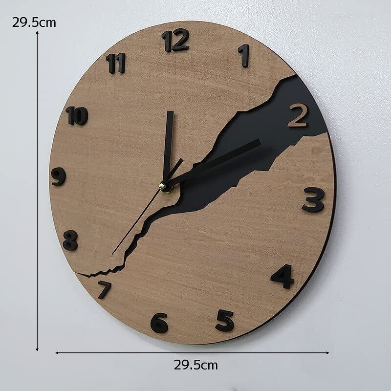 オブジェのような美しさと、機能性を兼備したインテリア時計。 文字盤のインデックスは大き目の数字のタイプです。 時刻の確認もしやすく使いやすいアイテムです。 木の温もりと風合いが空間に温かみを与える木製の壁掛け時計。 中央に亀裂が入っているようなデザインが特徴的で、独自の美しさを放ちます。 木の温もりと風合いが空間に温かみを与えながら、亀裂のデザインがモダンなアクセントを添えます。 壁に掛けることで、お部屋のアクセントとしても存在感を放ちます。 シンプルでありながら独創的なデザインが魅力の木製の壁掛け時計をお部屋に飾って、 自然と工芸の美しさを感じてみてください。 個性を感じられる質感にモダンなインテリアと相性抜群!どのようなお部屋にもマッチします。 新築祝いやリフォームに! 軽量で壁への負担が少なく押しピンなどで簡単に取り付けることが出来ます。 カラー:木目調 サイズ(約):直径29.5cm 重さ(約):0.3kg ■単三電池1本使用