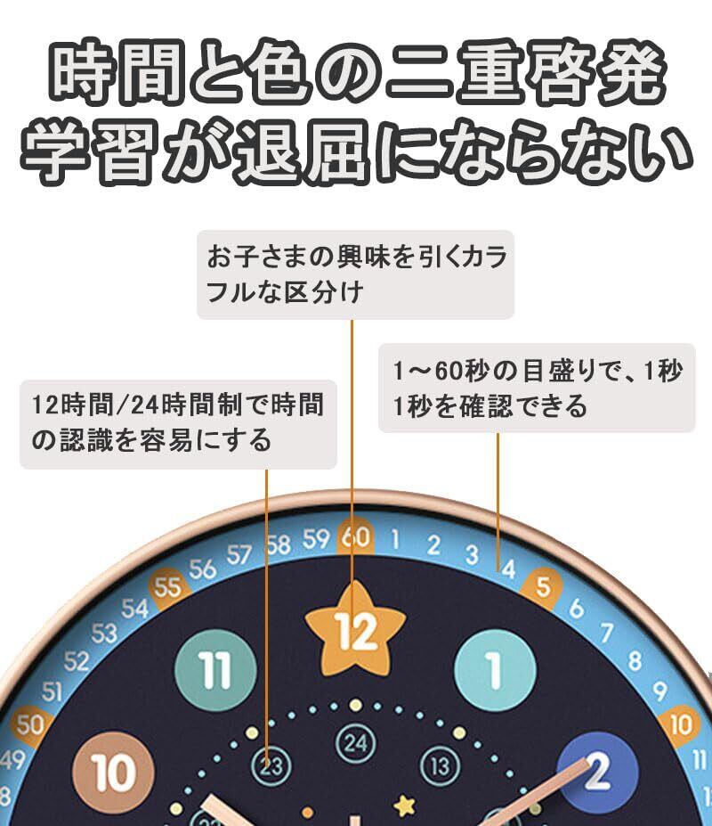【サイレントデザイン】を採用 子供用壁掛け時計は通常、静音ムーブメントを採用しており、従来の針式壁掛け時計のノイズを避けながら、時計の精度を確保することができます。騒音に敏感なお子様には最適です。