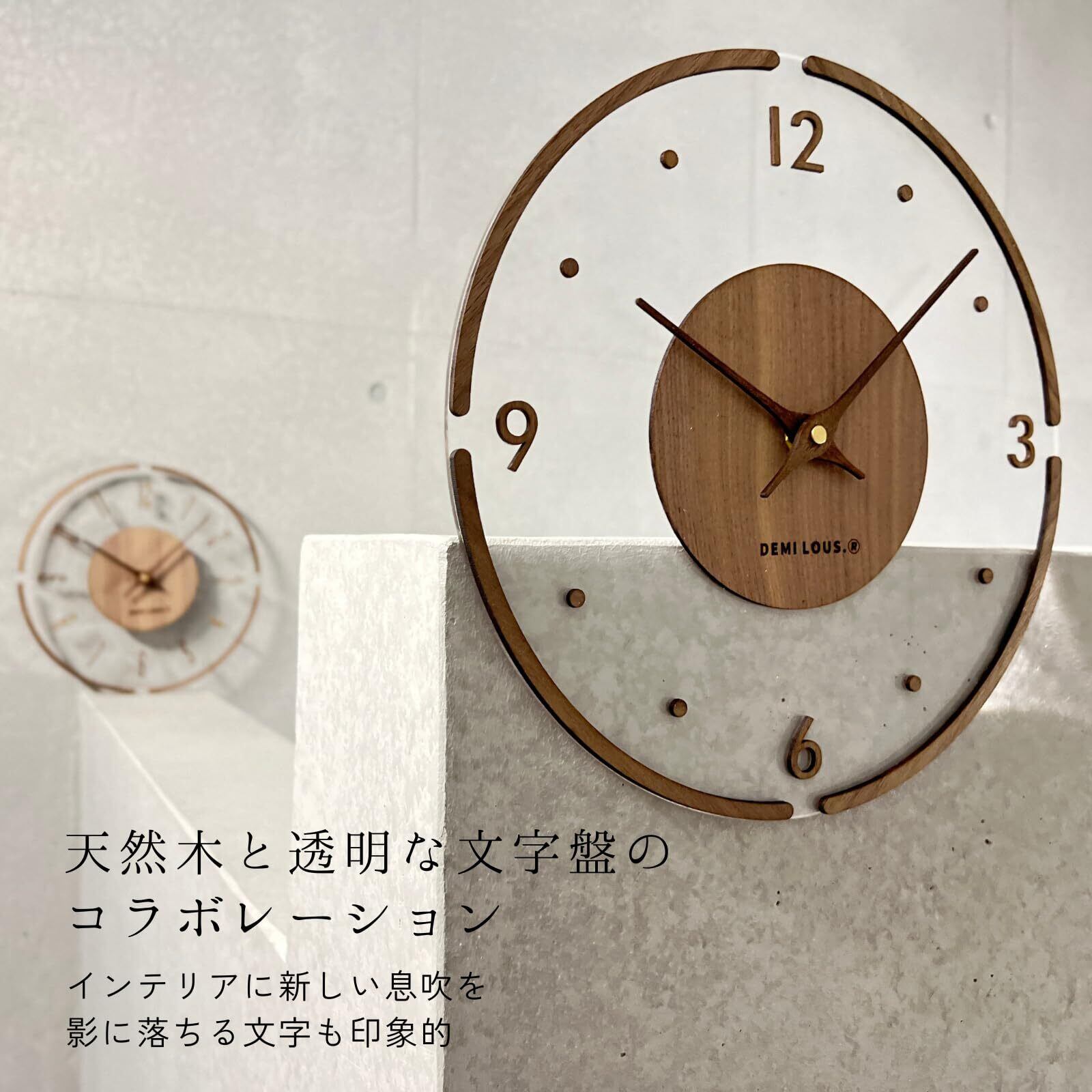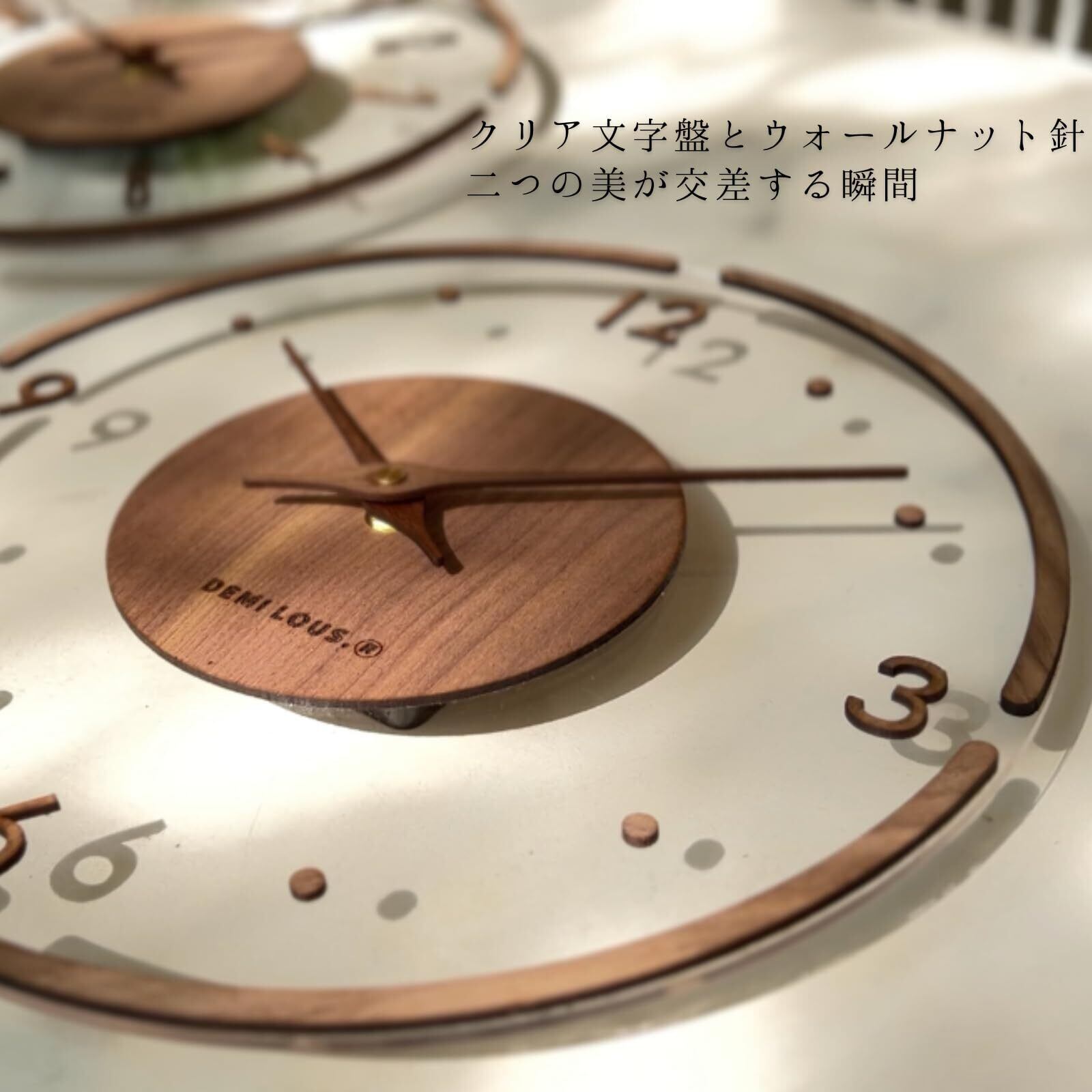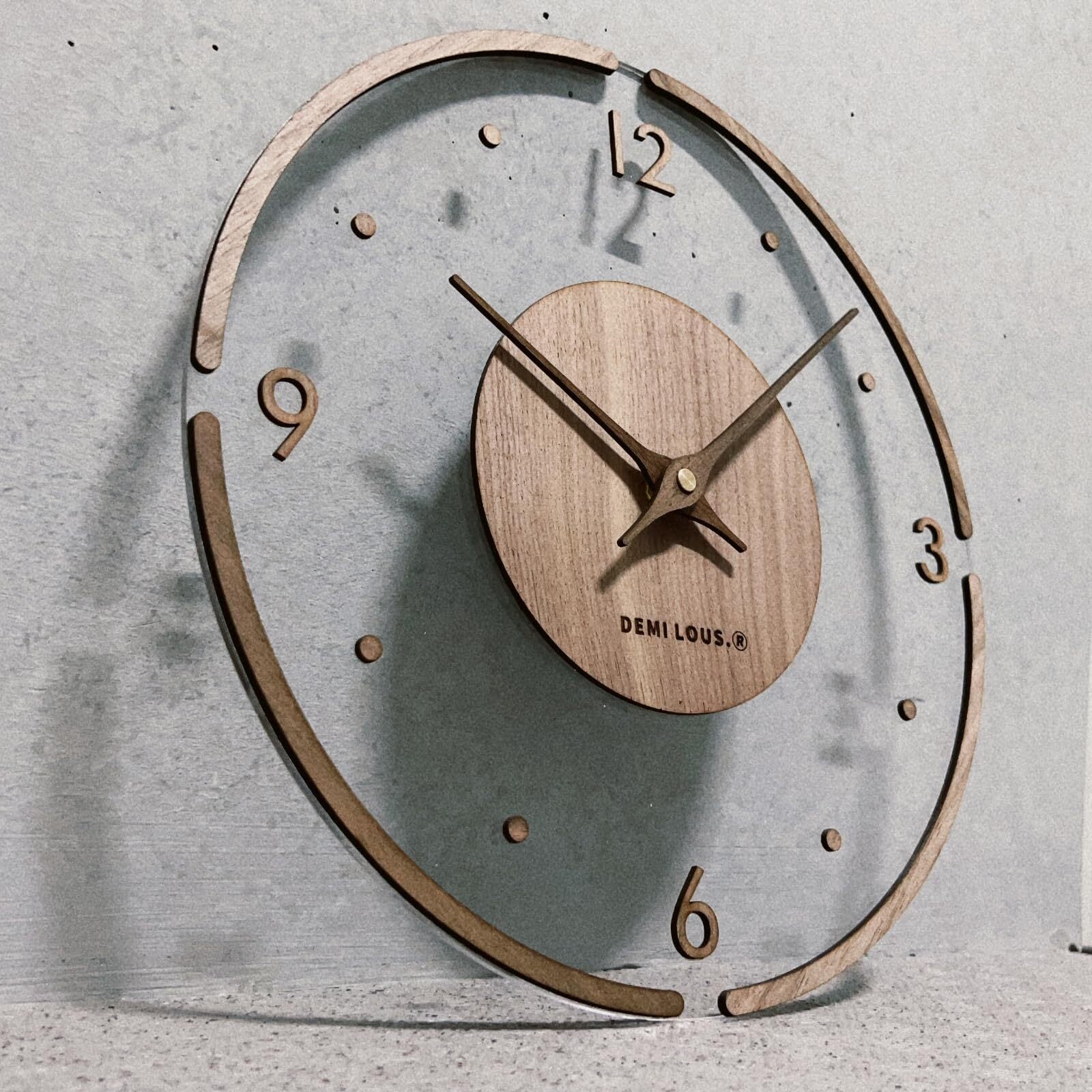 壁掛け時計 おしゃれ 掛け時計 クリア 透明 木製 ナチュラル ウォールナット モダン スタイリッシュ ナチュラル デザイナーズ シンプルデザイン 静音 手作り 直径30cm (ポップ)