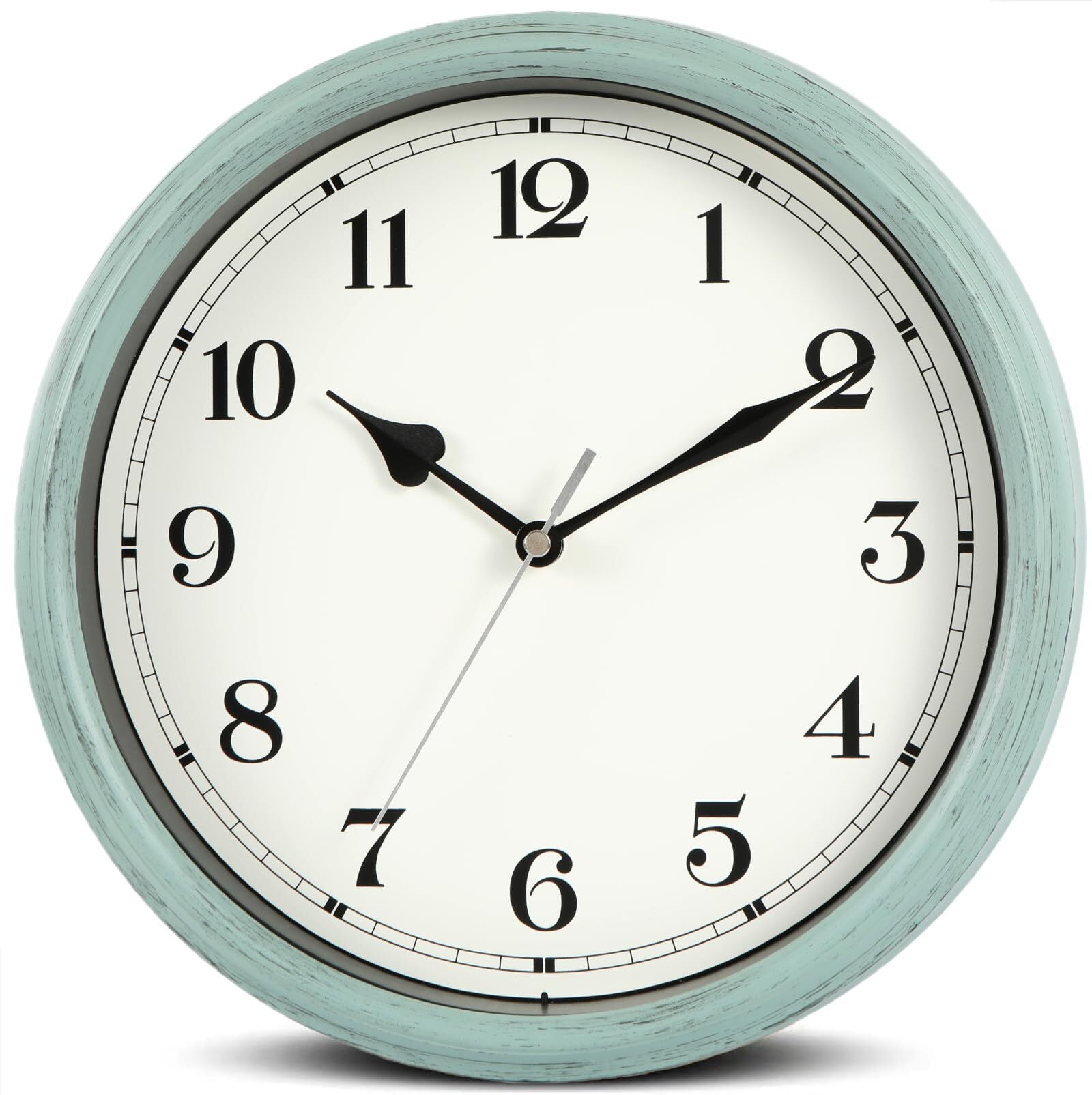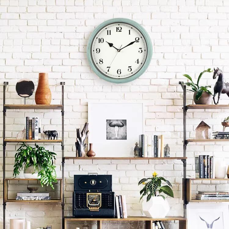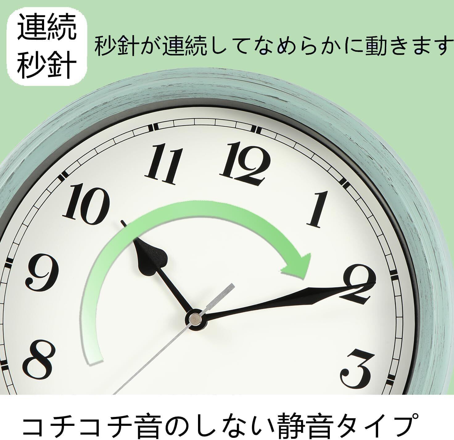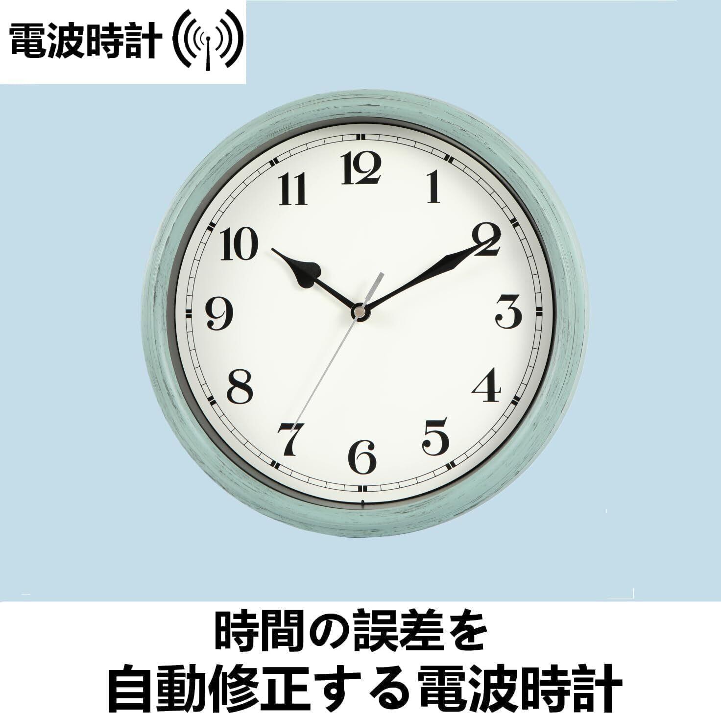 Nbdeal 掛け時計 電波時計 連続秒針 静音 直径28cm アナログ エアリアルレトロ グリーン