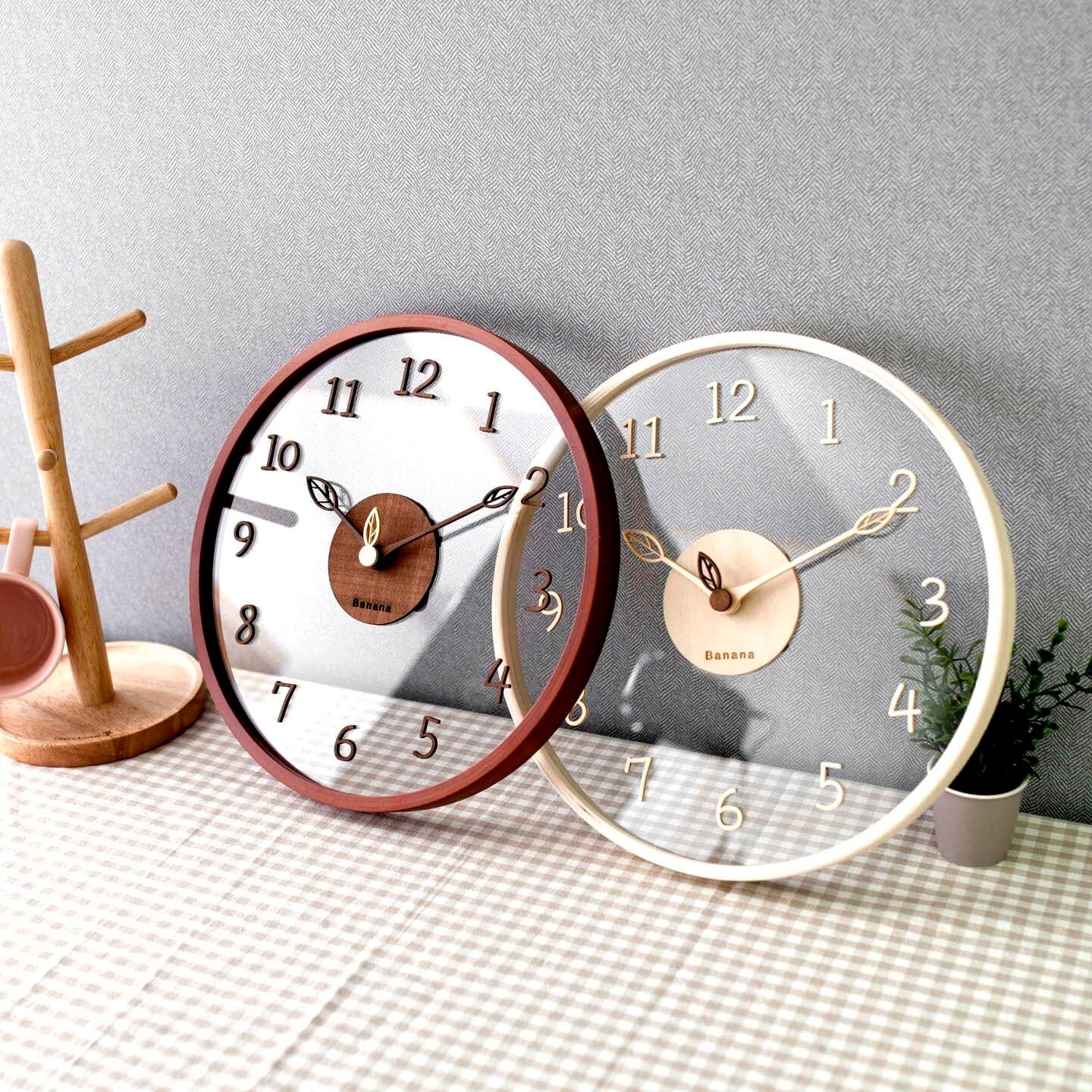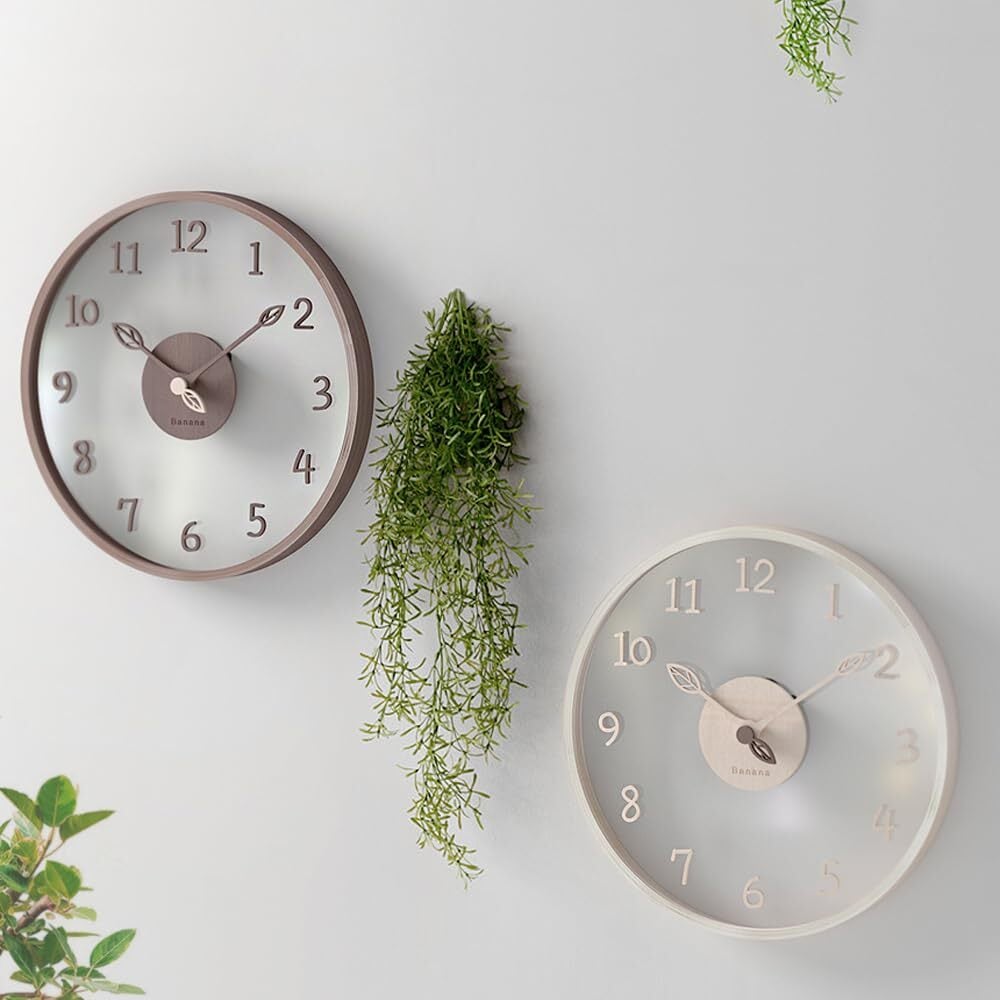 木材とガラスでデザインした無音ムーブメント搭載の壁掛け時計