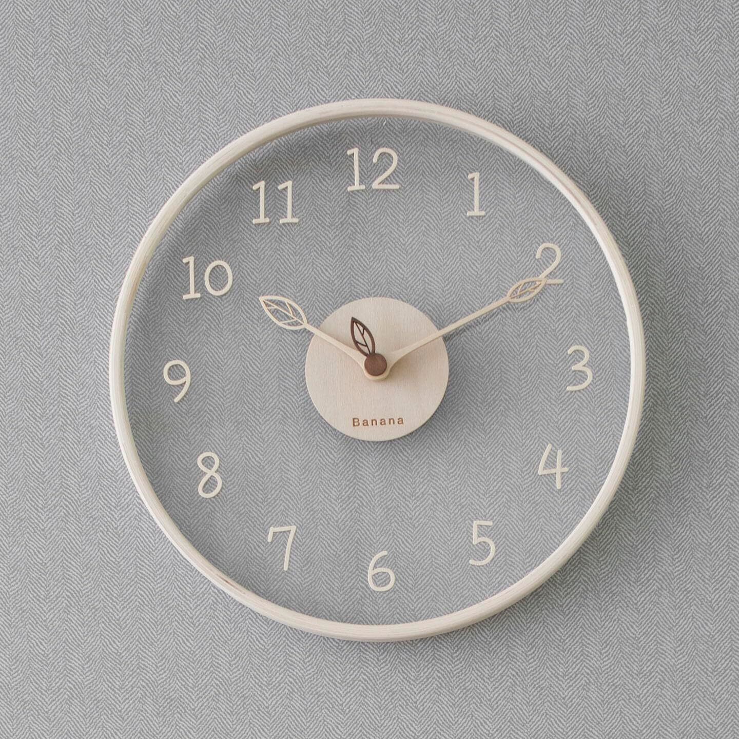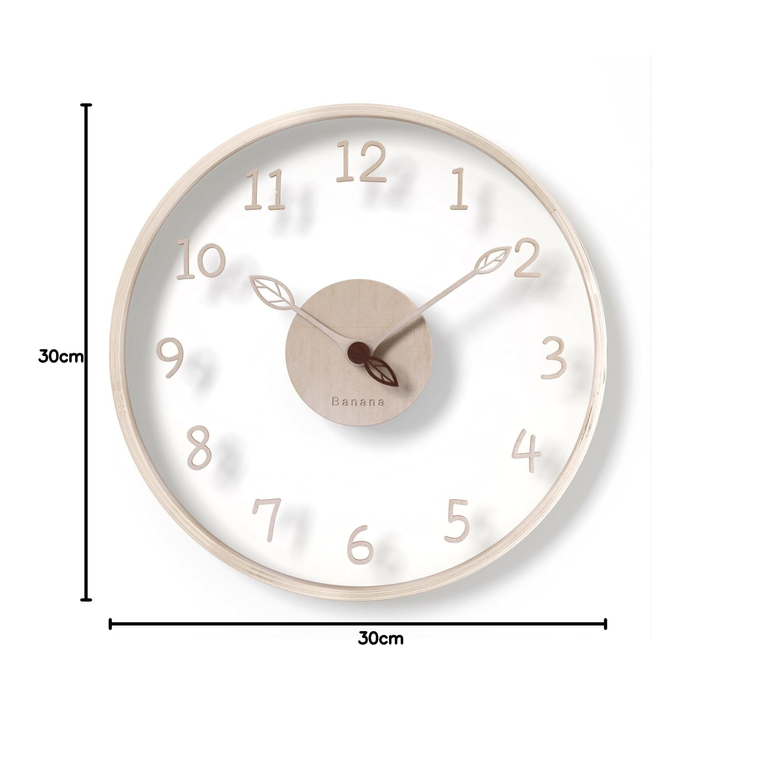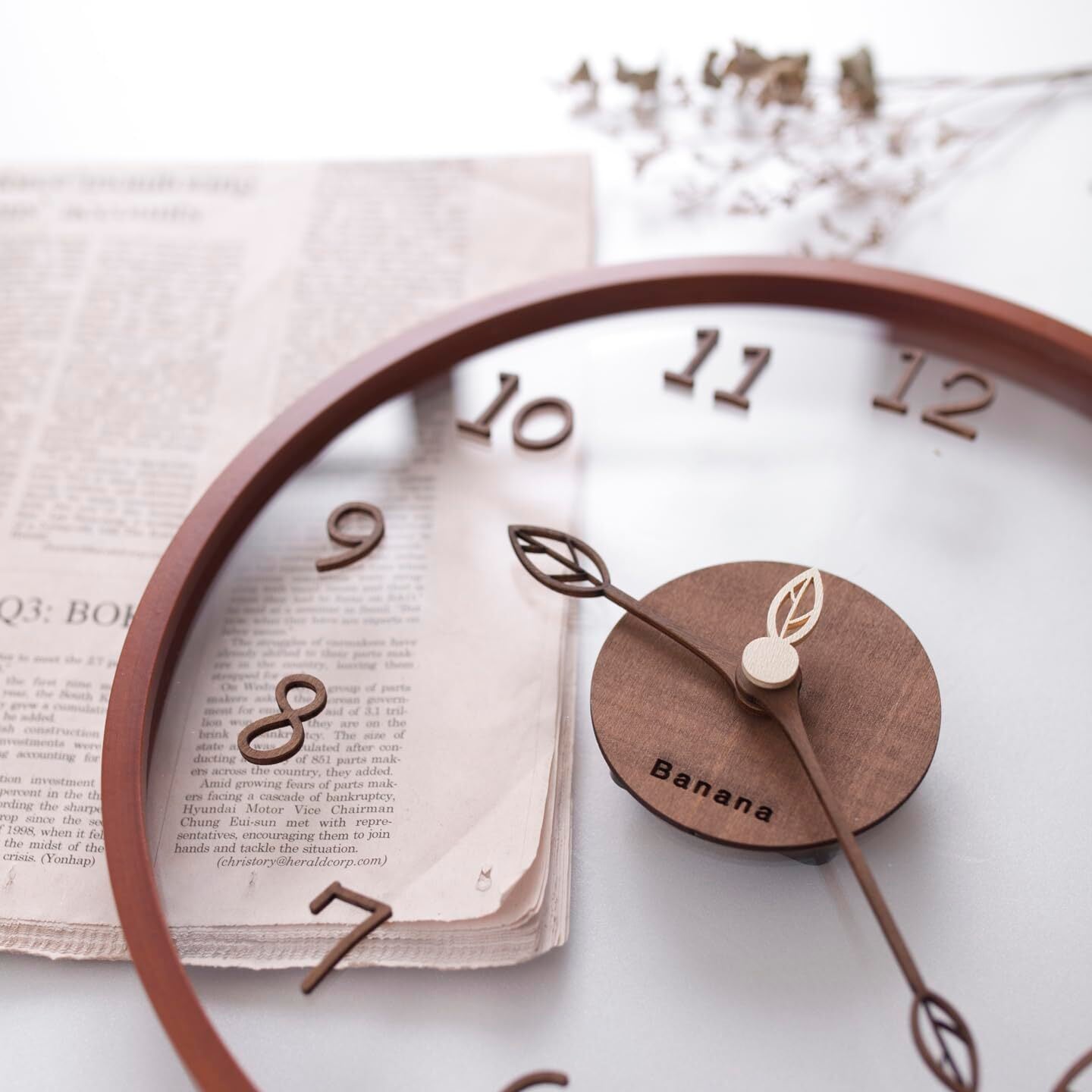 ガラスの木 アイビー オリジナル「ウォールナット」【バナナ工房】 壁掛け時計 無音 ガラス 30×30×4.5cm 458g軽量 木目 時計 寝室 リビング オフィス 北欧