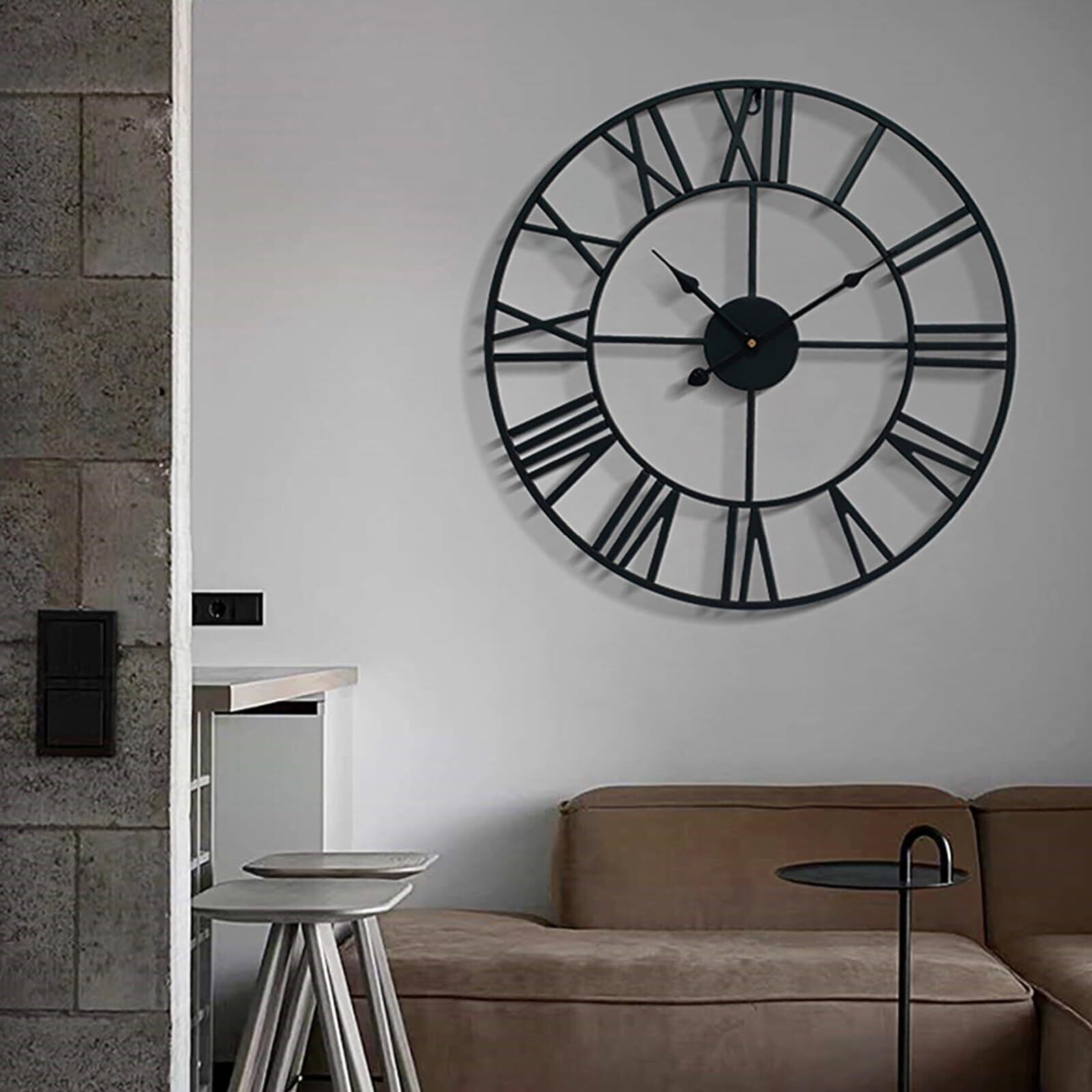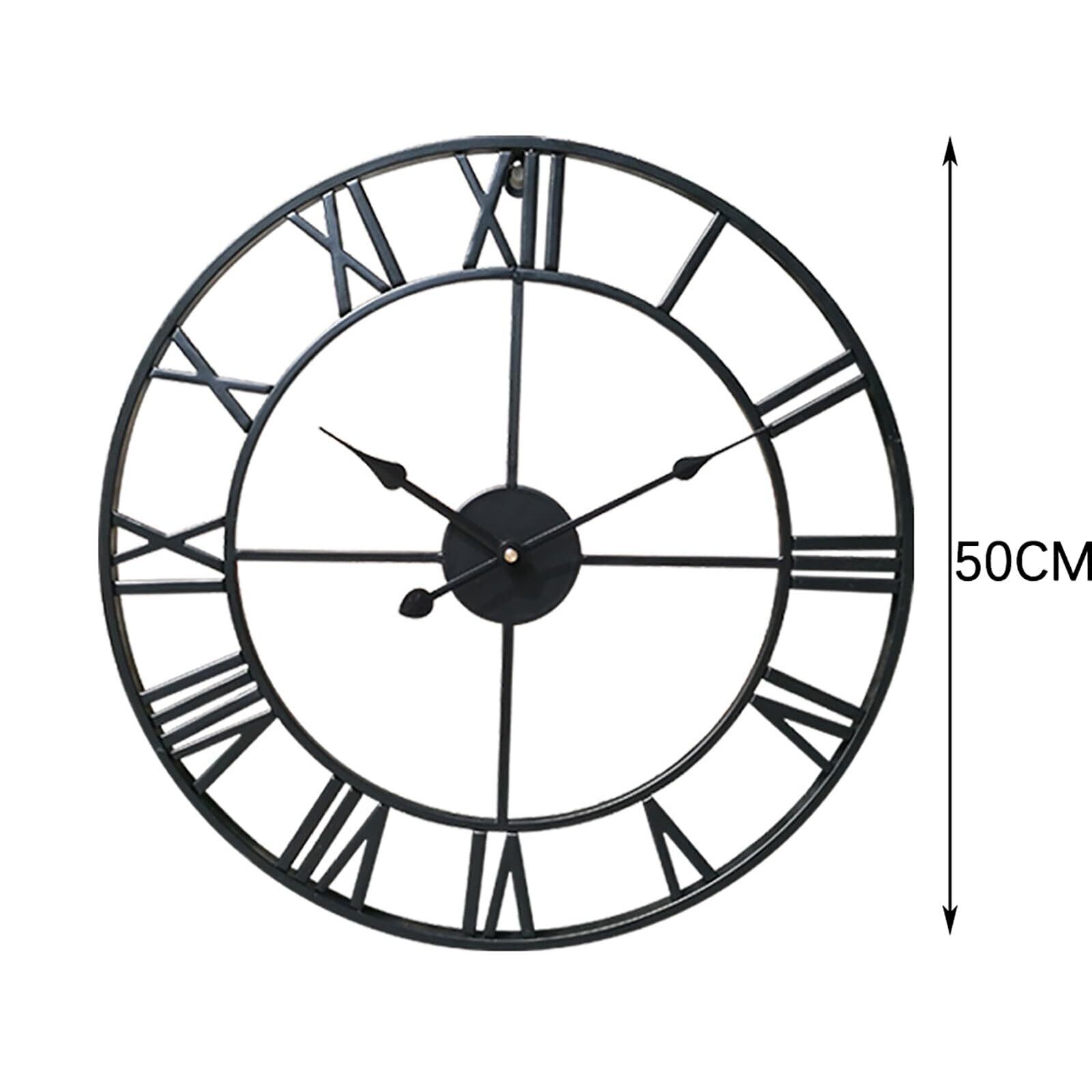 RemeeHi 北欧風 50CM壁掛け時計 時計に秒針はない ローマ数字時計 古いスタイル パーソナライズ クリエイティブ スタイリッシュ アイアンワーククロック インテリア リビングルーム 寝室 オフィス 部屋飾り 贈り物 (50CM, 黒い)