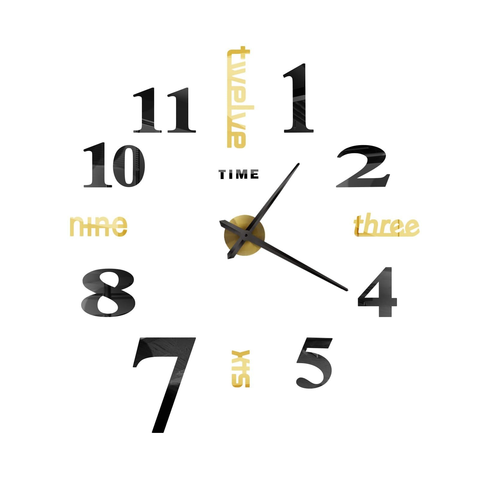 THGOAU ウォールステッカー 時計 手作り時計 壁掛け ウォールクロック diy おしゃれ 数字と英語 リビングルーム新築祝い プレゼント ゴールド ブラック 100cm