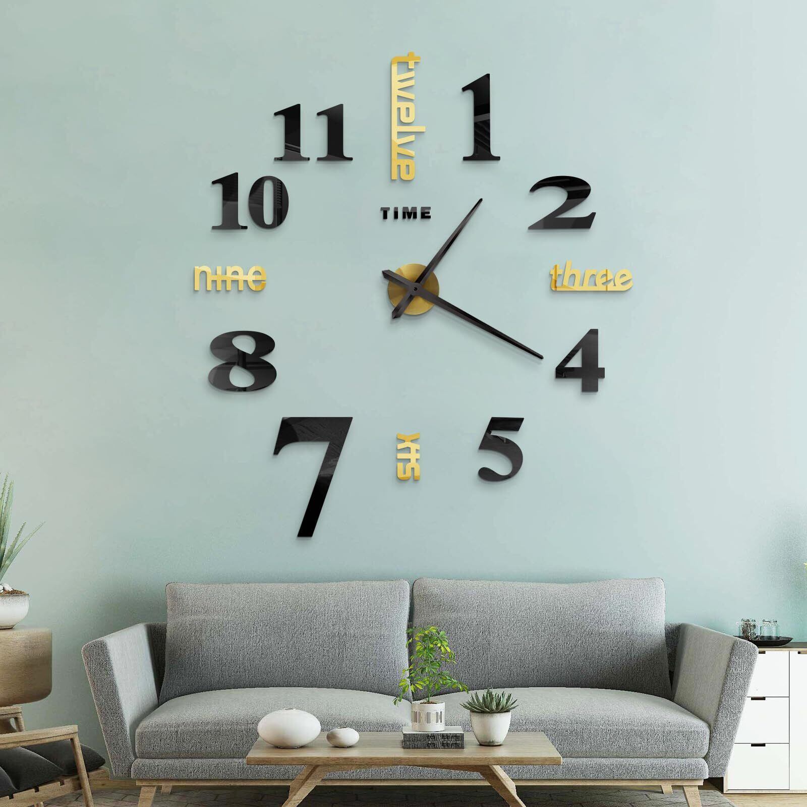 【数量限定】THGOAU ウォールステッカー 時計 手作り時計 壁掛け ウォールクロック diy おしゃれ 数字と英語 リビングルーム新築祝い プレゼント ゴールド ブラック 100cm