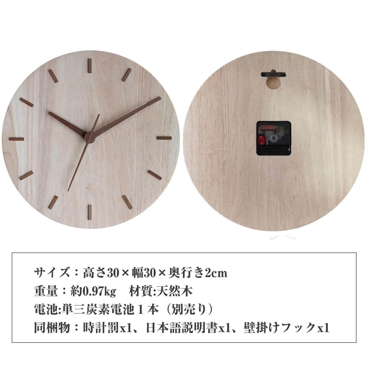 サイズ:高さ30×幅30×奥行き2cm 重量:約0.97㎏ 材質:天然木 電池:単三炭素電池1本(別売り) 同梱物:時計*1、日本語説明書*1、フック*1