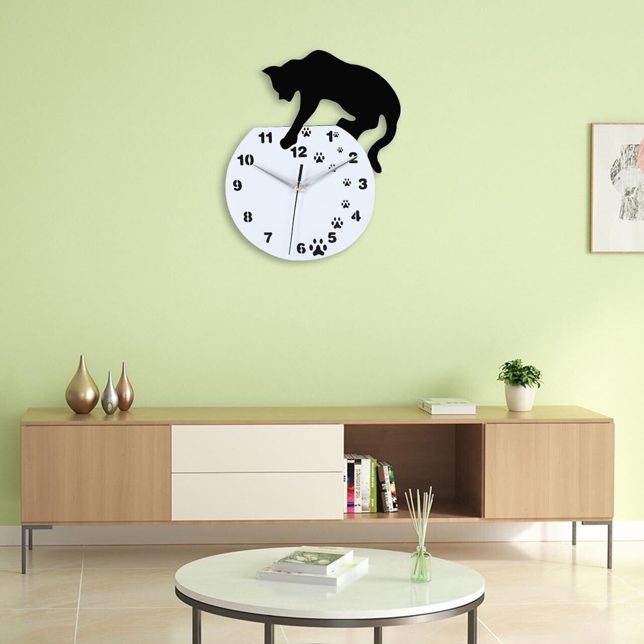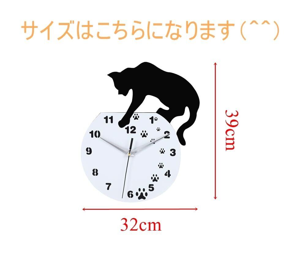 matakoko315 時計 壁掛け 掛け時計 黒猫 猫 シルバー おしゃれ 見やすい かけ時計 静音 インテリア 黒白 白黒 ブラック ホワイト リビング かっこいい アナログ 円型 (肉球デザイン)