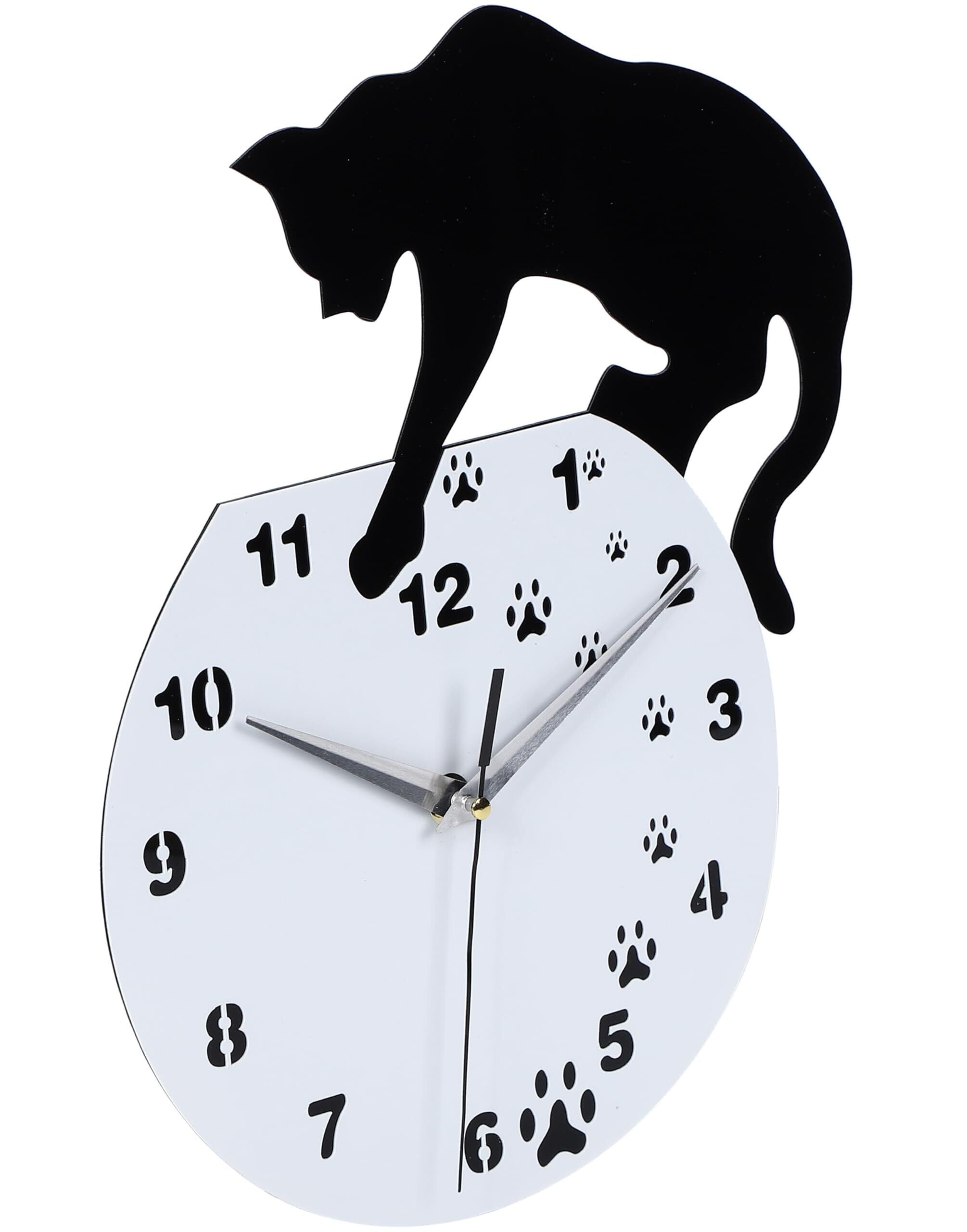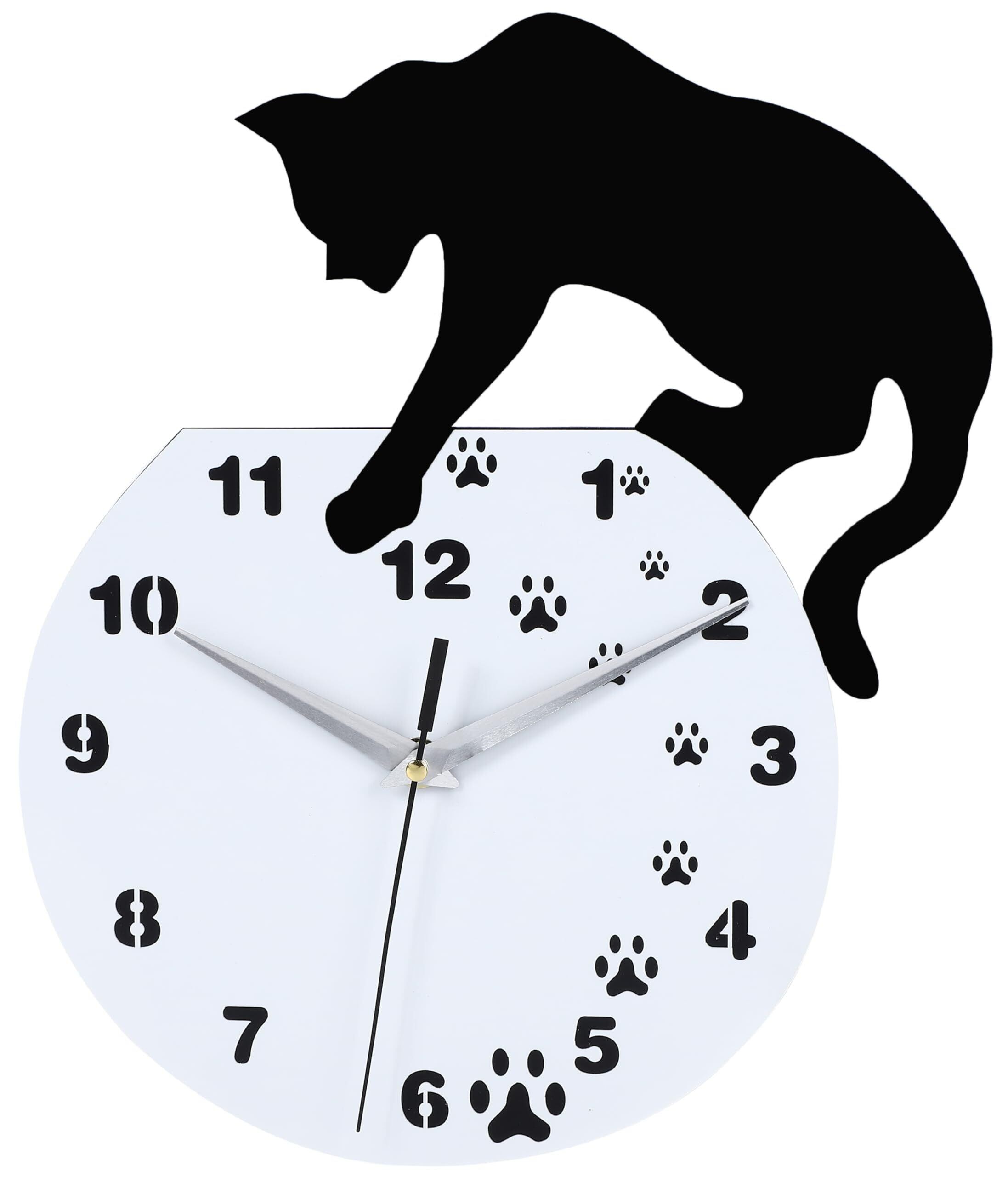 【新着商品】matakoko315 時計 壁掛け 掛け時計 黒猫 猫 シルバー おしゃれ 見やすい かけ時計 静音 インテリア 黒白 白黒 ブラック ホワイト リビング かっこいい アナログ 円型 (肉球デザイン) | paghag