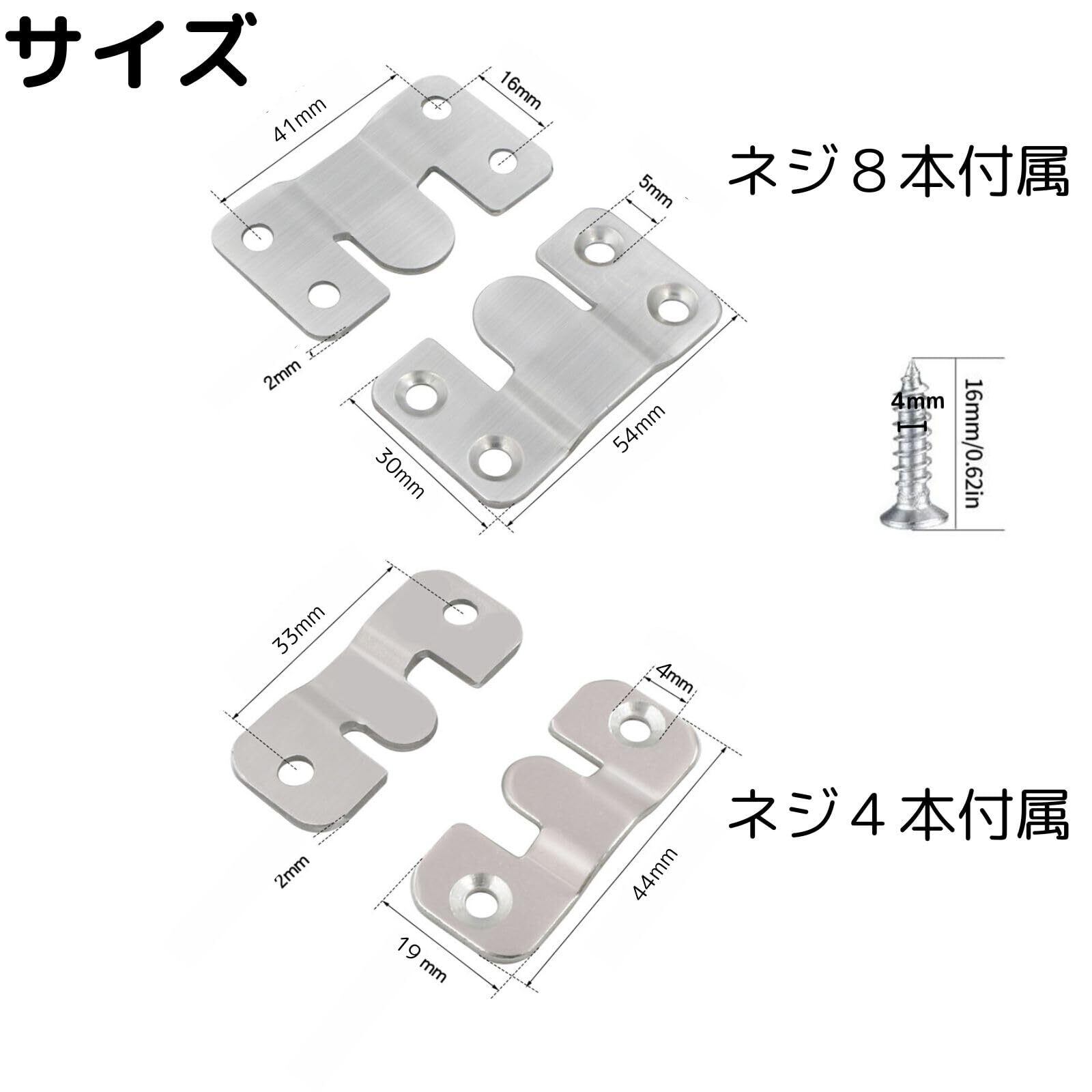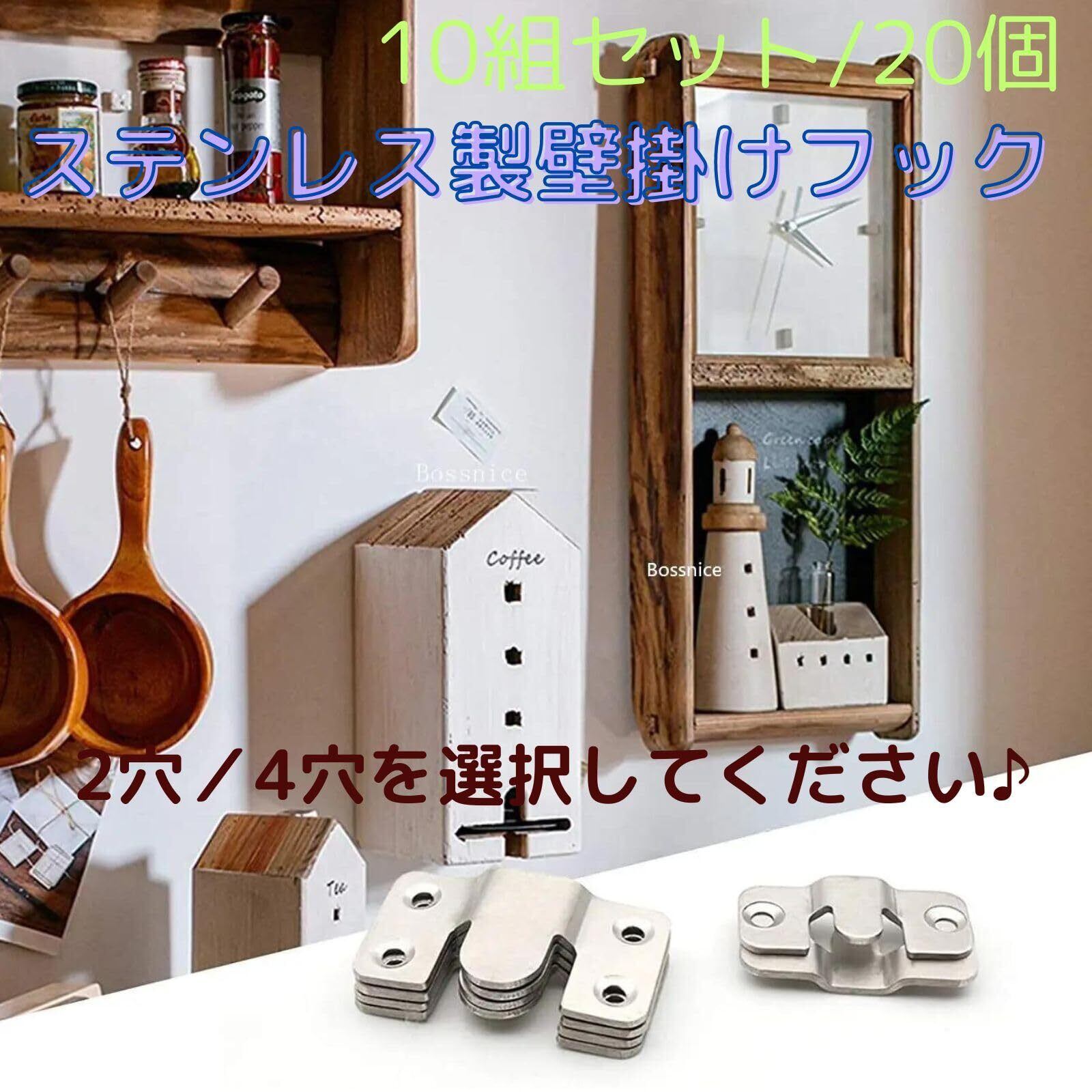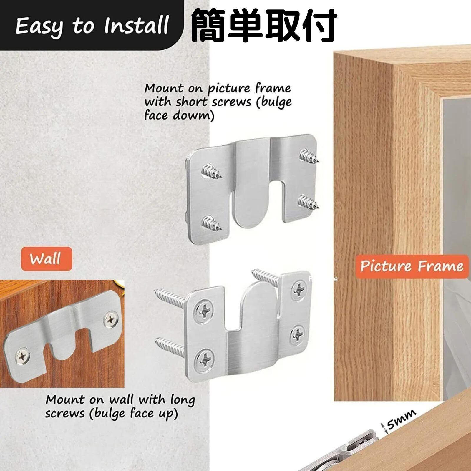geneX 額縁吊金具 ステンレス製壁掛けフック 10組セット/20個 ブラケット金具 額縁フック 時計 鏡 絵画掛けに適用 石膏ボード・木壁対応(2穴)