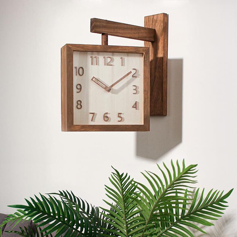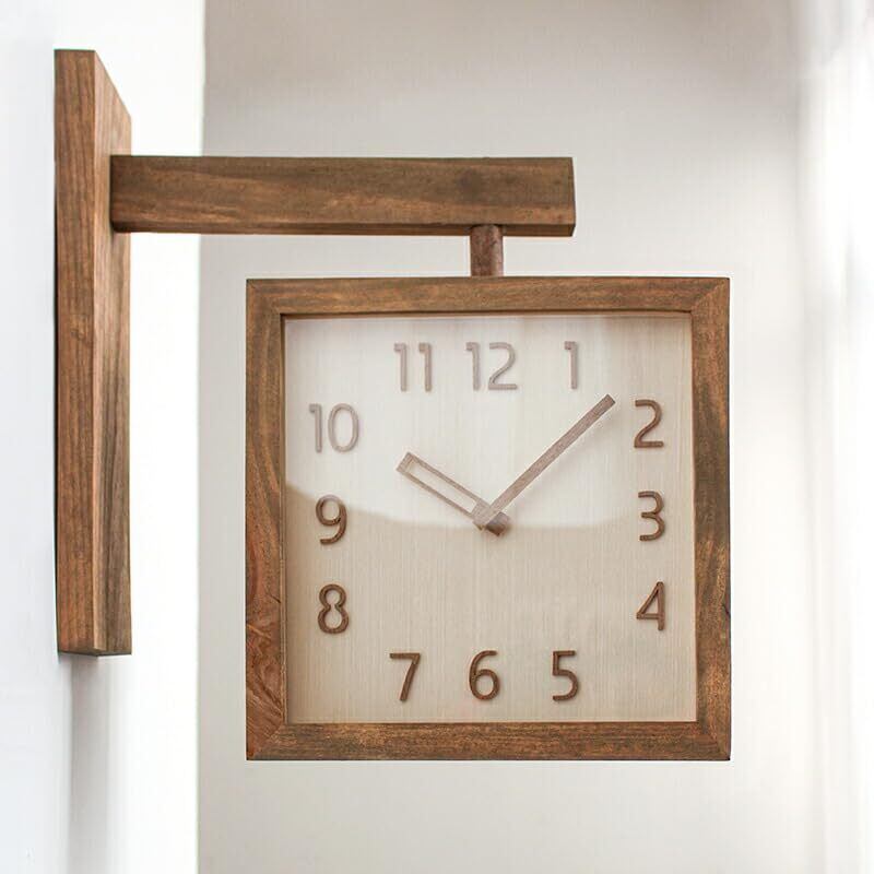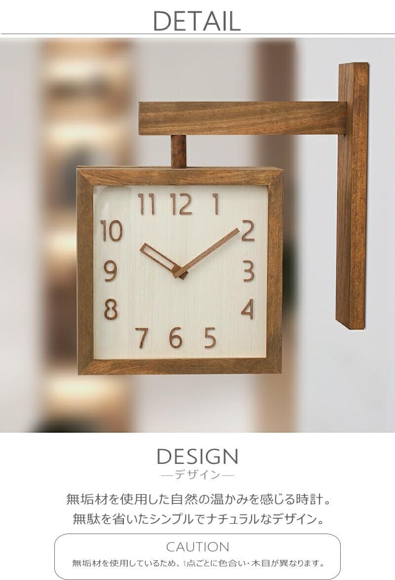 GREEM MARKET(グリームマーケット) 掛け時計 北欧 モダン ナチュラル デザイン おしゃれ かわいい インテリア 木製 無垢材 両面時計 壁掛け時計 静音 連続秒針 掛け時計 文字盤23cm 品番:GMS02927(ラテ)