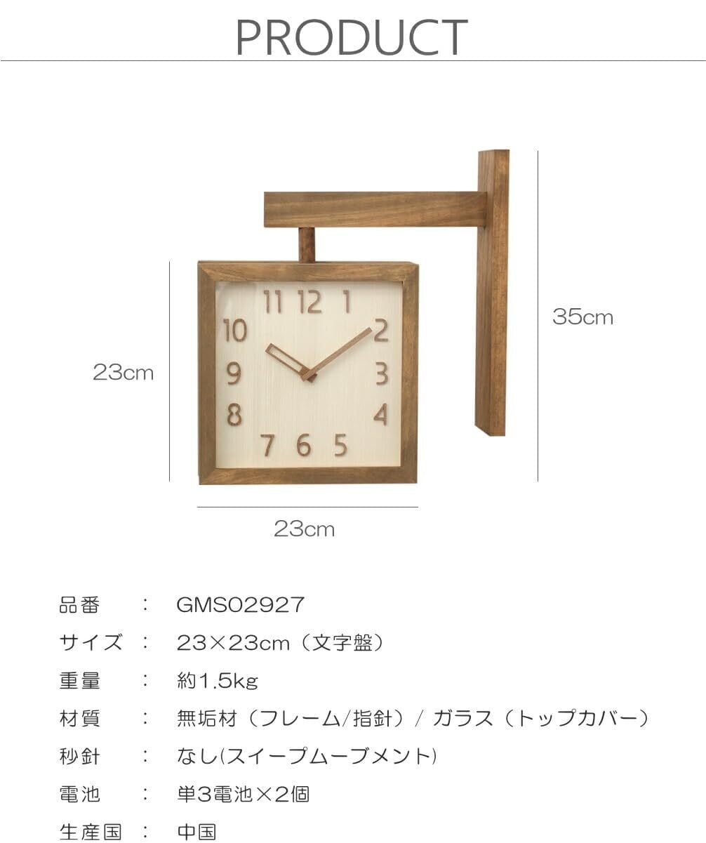 【在庫セール】GREEM MARKET(グリームマーケット) 掛け時計 北欧 モダン ナチュラル デザイン おしゃれ かわいい インテリア 木製 無垢材 両面時計 壁掛け時計 静音 連続秒針 掛け時計 文字盤23cm 品番:GMS02927(ラテ)