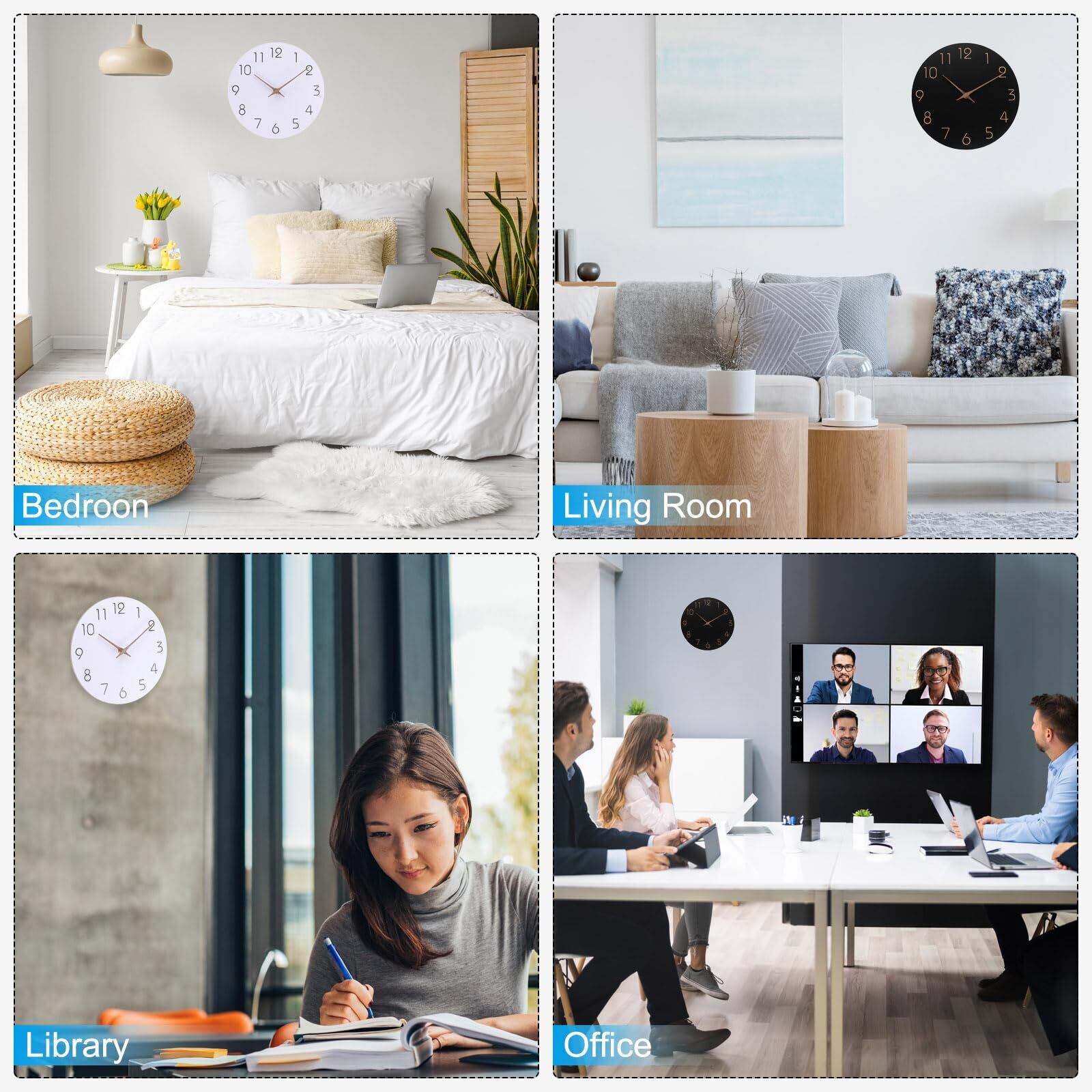 利点:静かなカチカチ音のないスイープムーブメントにより、この壁掛け時計は一定のカチカチ音を出さずに作動します。また、精密なクォーツムーブメントにより正確な時間が保証され、静かな環境や寝室での使用に適しています。完全に透明なフロントカバーデザインにより、どの角度からでも時間をはっきりと見ることができます。壁掛け時計はスタイリッシュでシンプルで、壁にモダンな外観を加えます。
