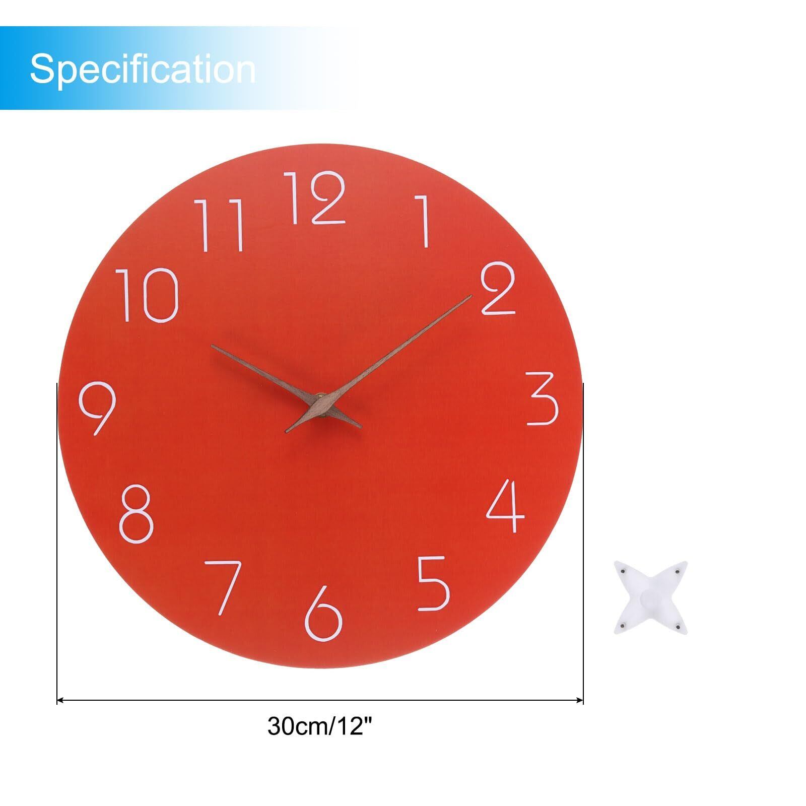 PATIKIL 30 cm 壁掛け時計 クォーツ電池式サイレント 非カチカチ 音なし 丸型 壁掛け時計装飾 オフィス 寝室 居間用 オレンジ