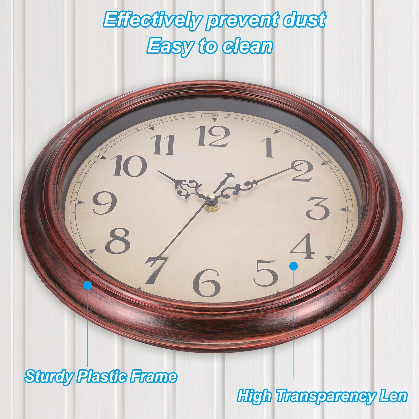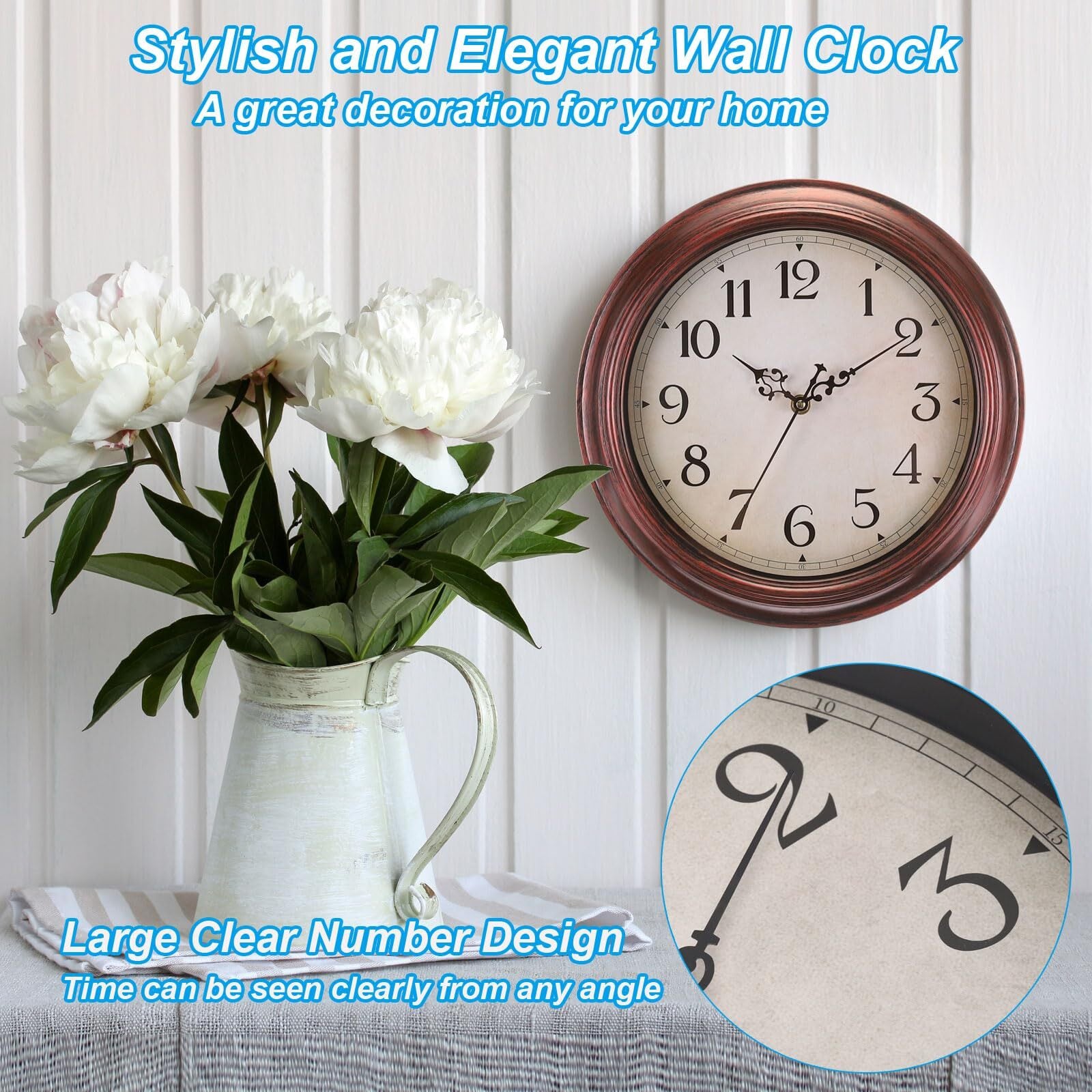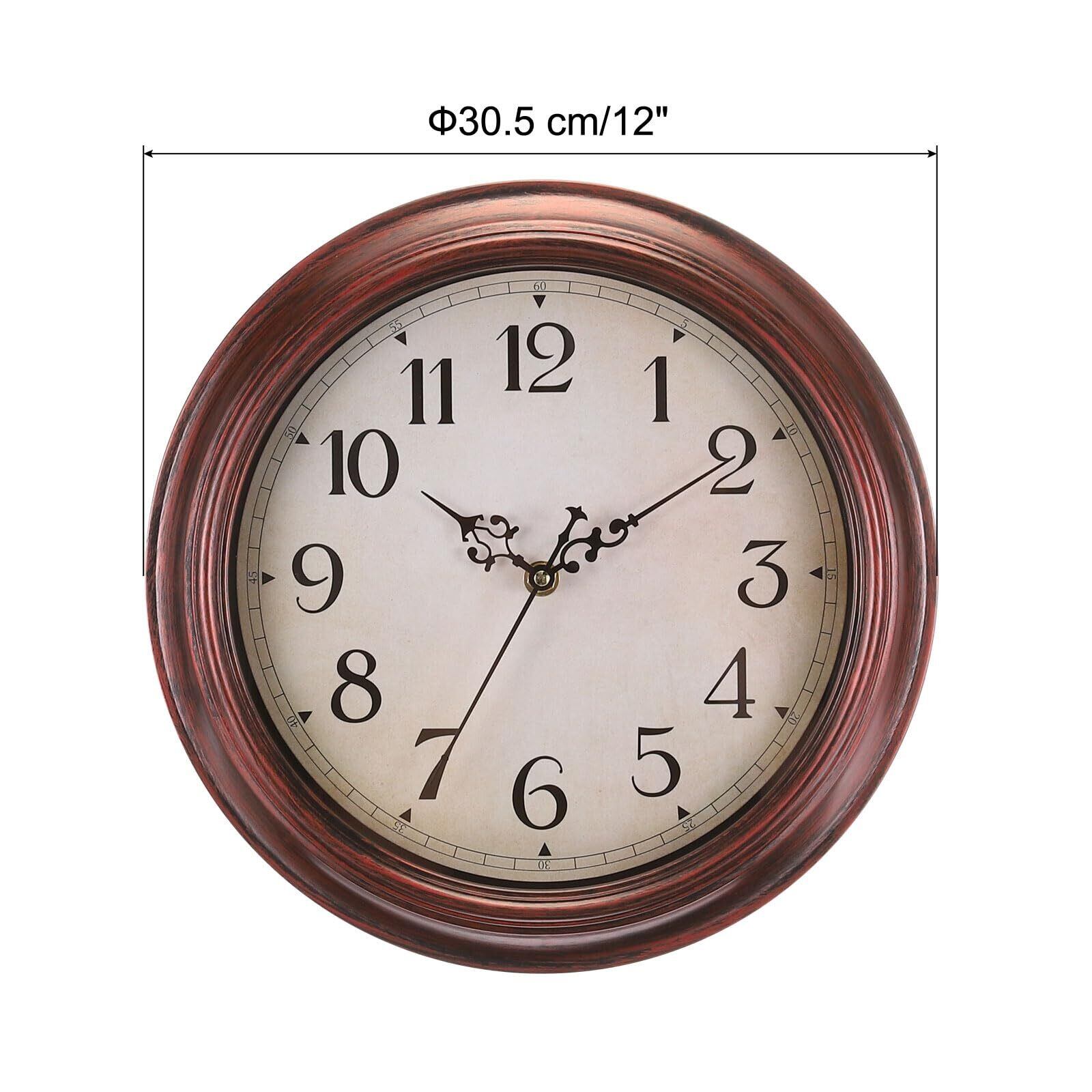 PATIKIL 30.5 cm 壁掛け時計 電池式 静音 カチカチ音がしない 丸型壁掛け時計 レトロカントリー時計 キッチン ヴィンテージ時計 オフィ ス 寝室 居間の装飾用 茶色 イェロー