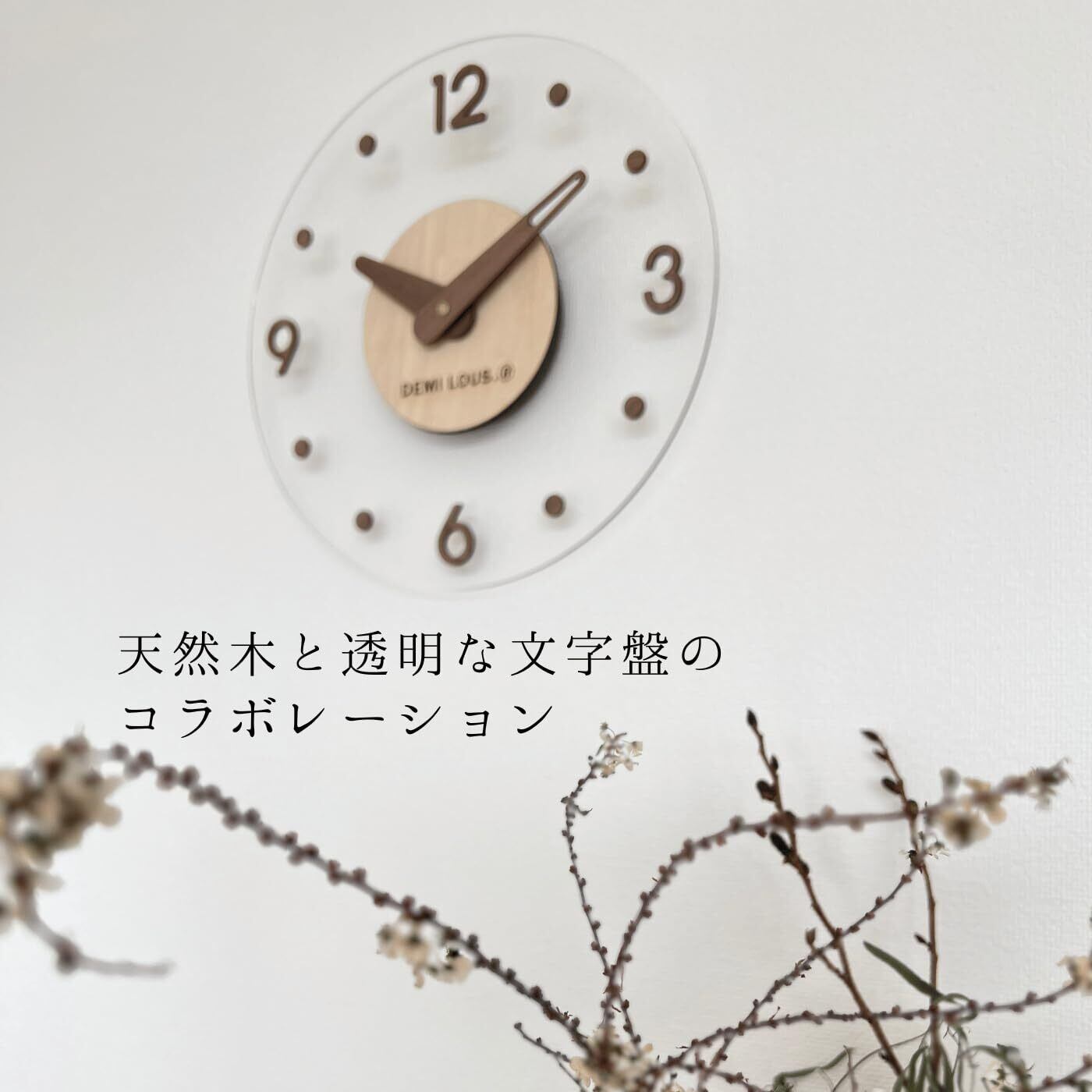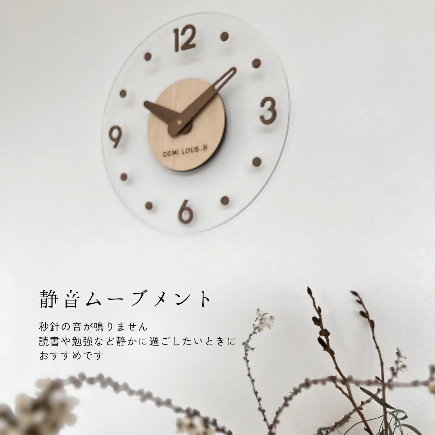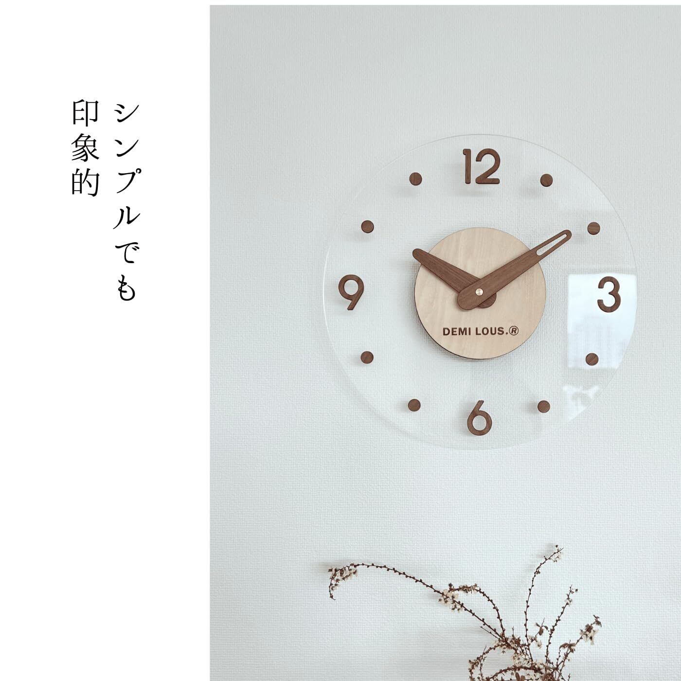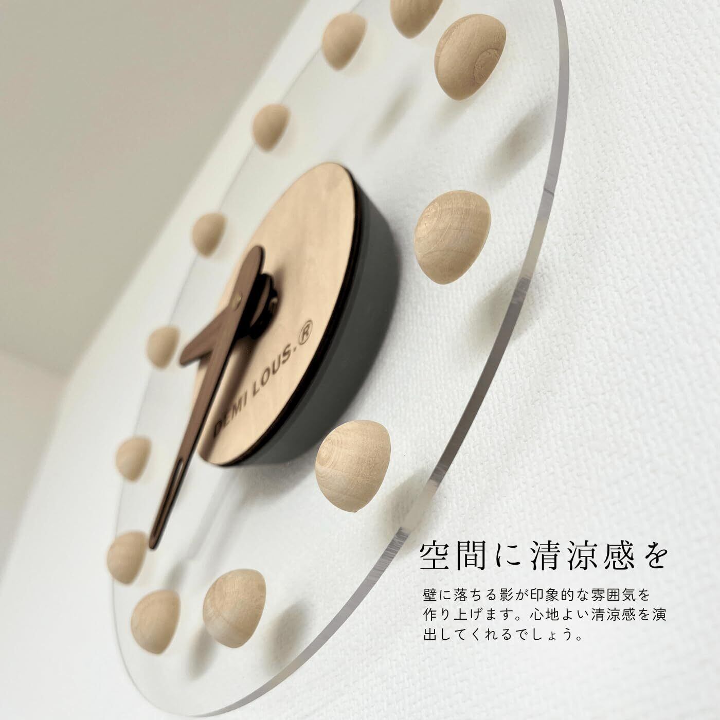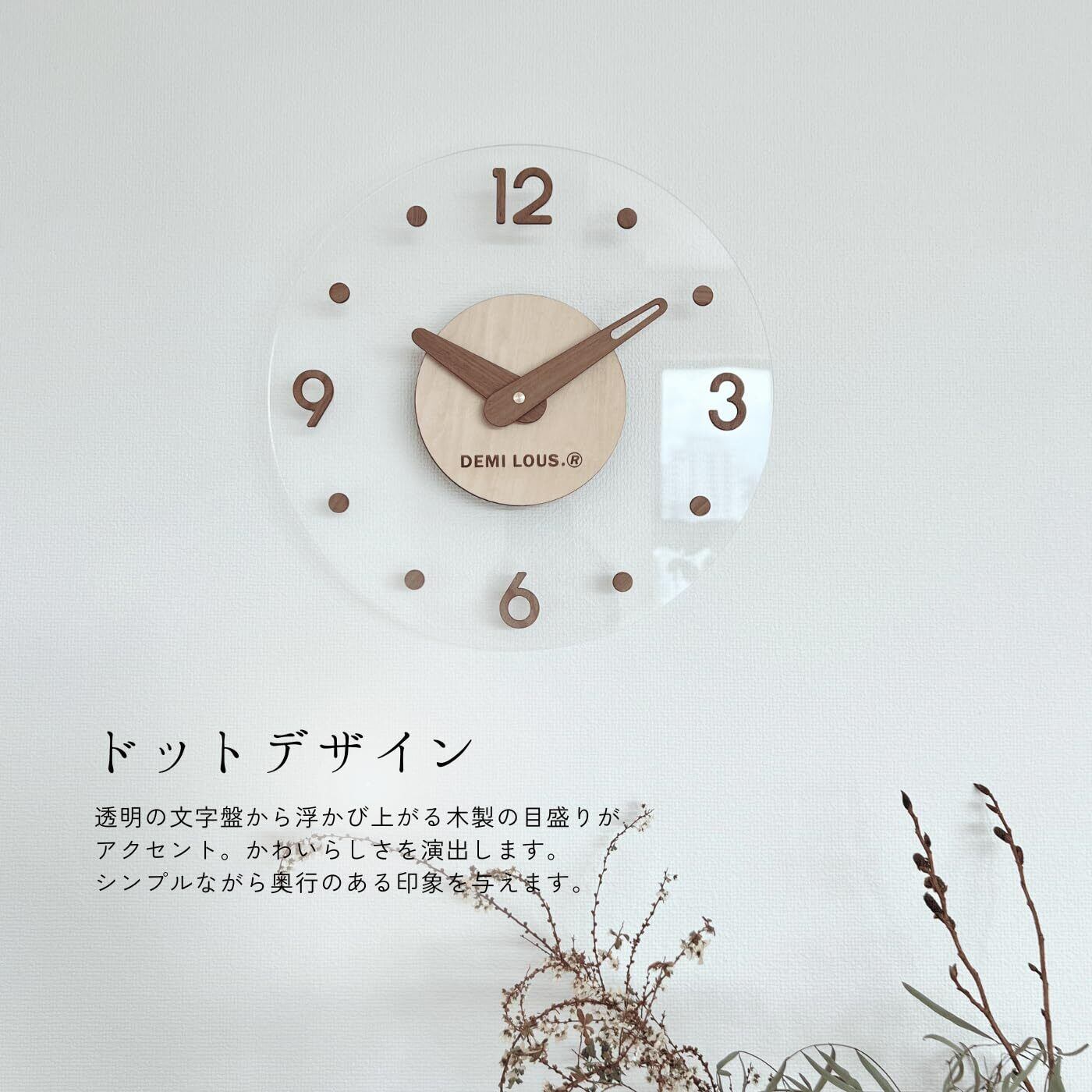 掛け時計 おしゃれ かわいい クリア 木製 ナチュラル ドット スタイリッシュ ナチュラル 透明感 シンプル 静音 丸い インテリア 会社 店舗 リビング 寝室 プレゼント 引っ越しお祝い DEMI LOUS. (チョコドット)