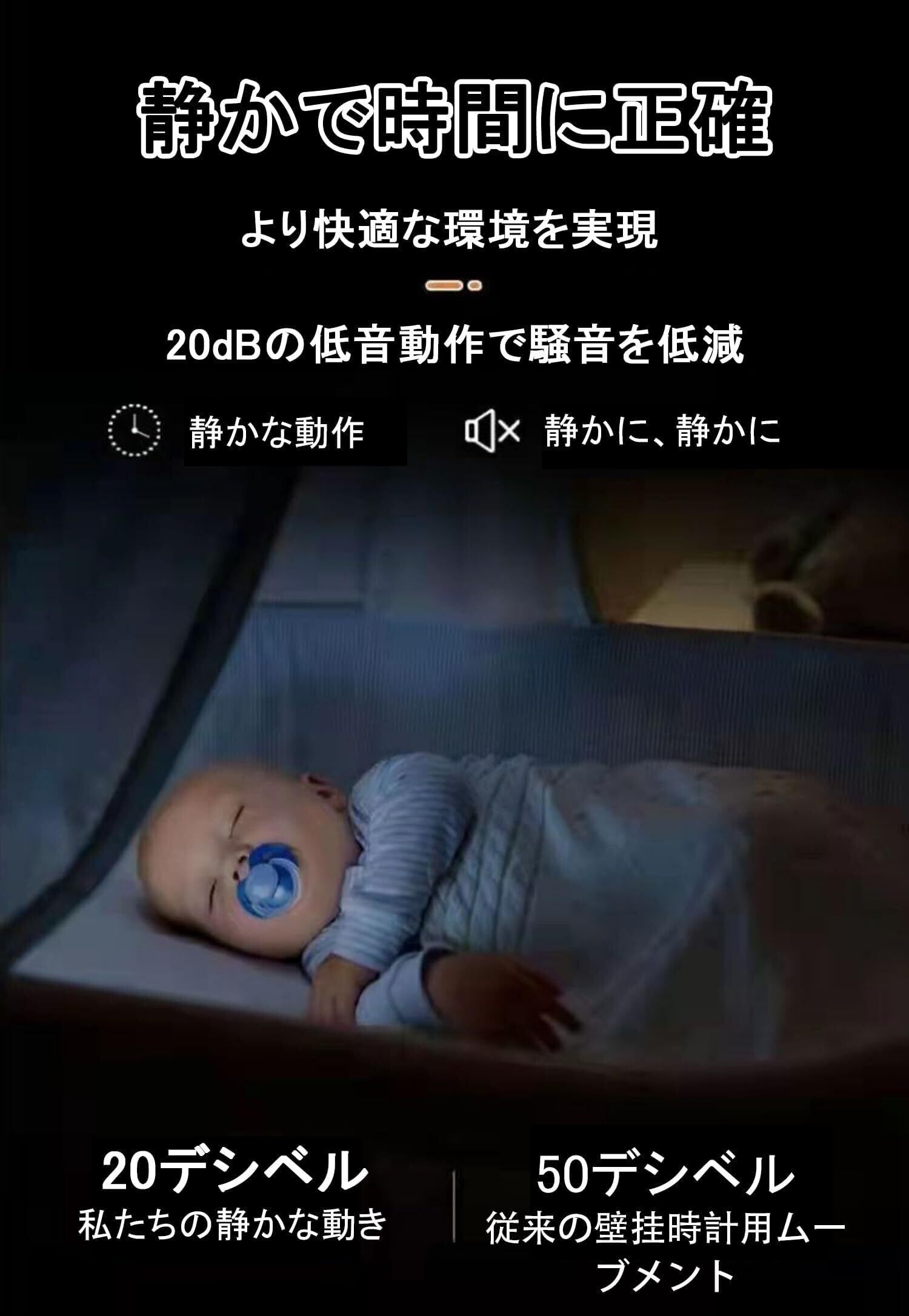 【静音環境】静かなスイープセコンドムーブメントで気になる音もなく、睡眠と仕事のための静かな環境を常に確保します。気になるカチカチ音もありません。