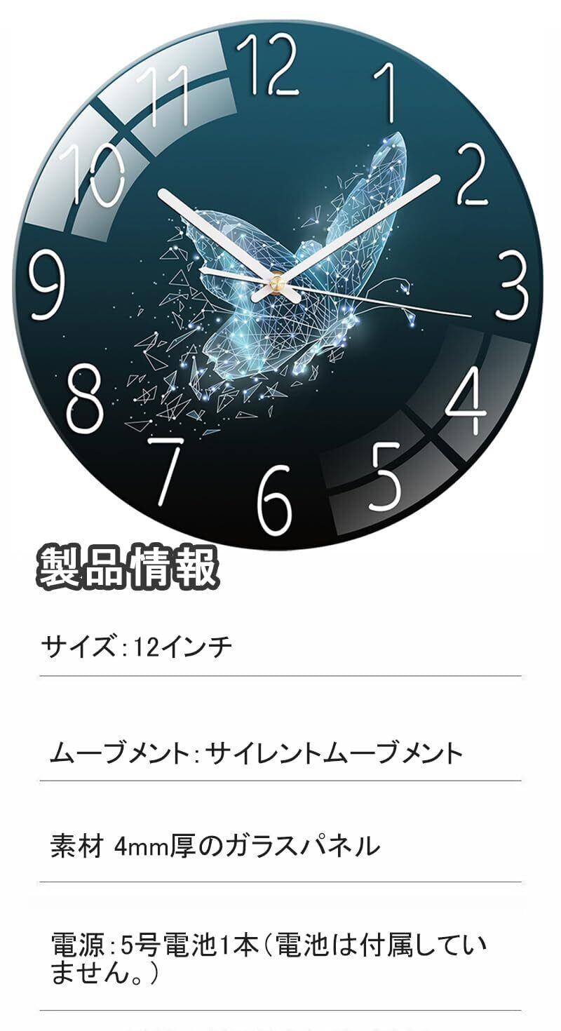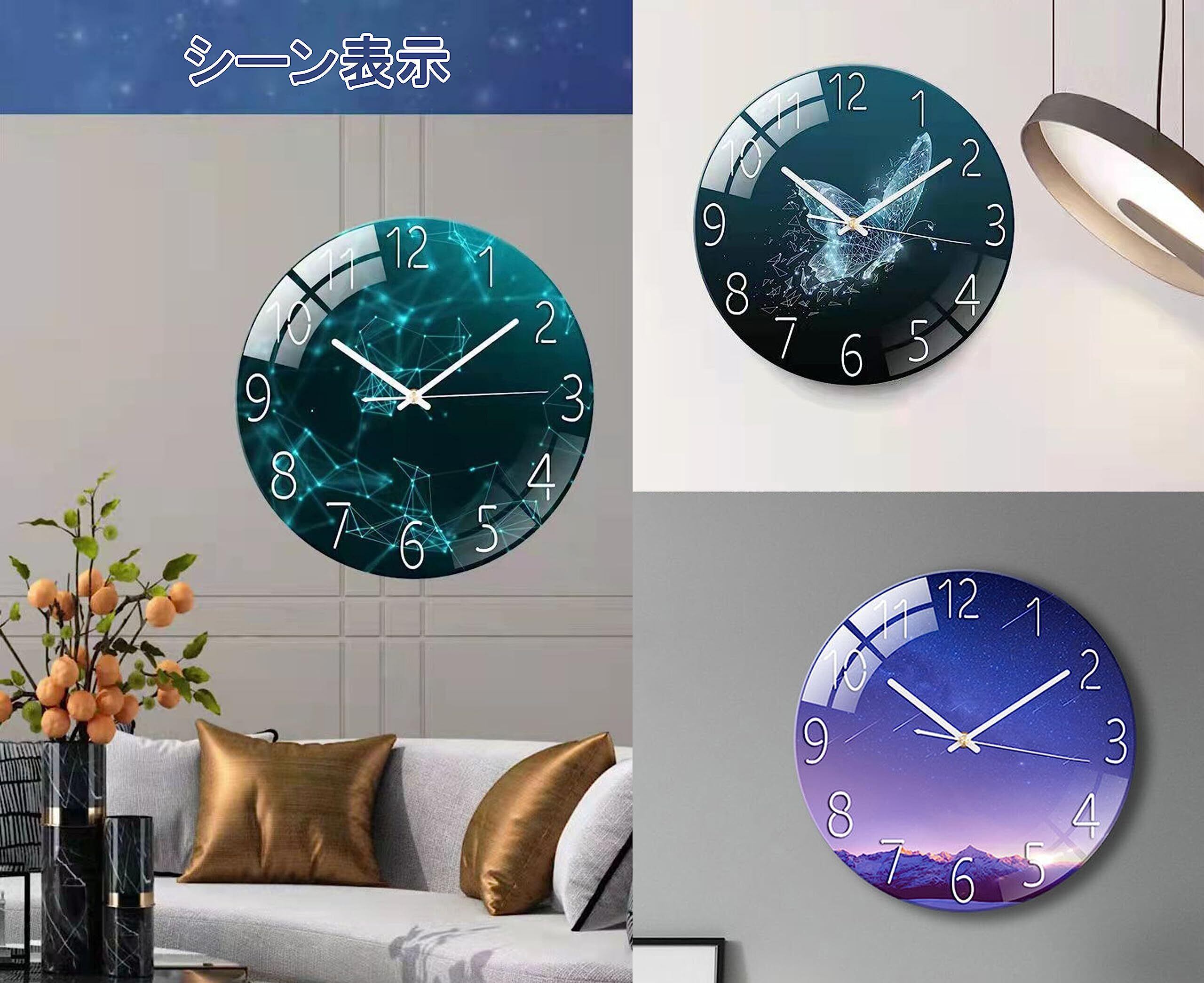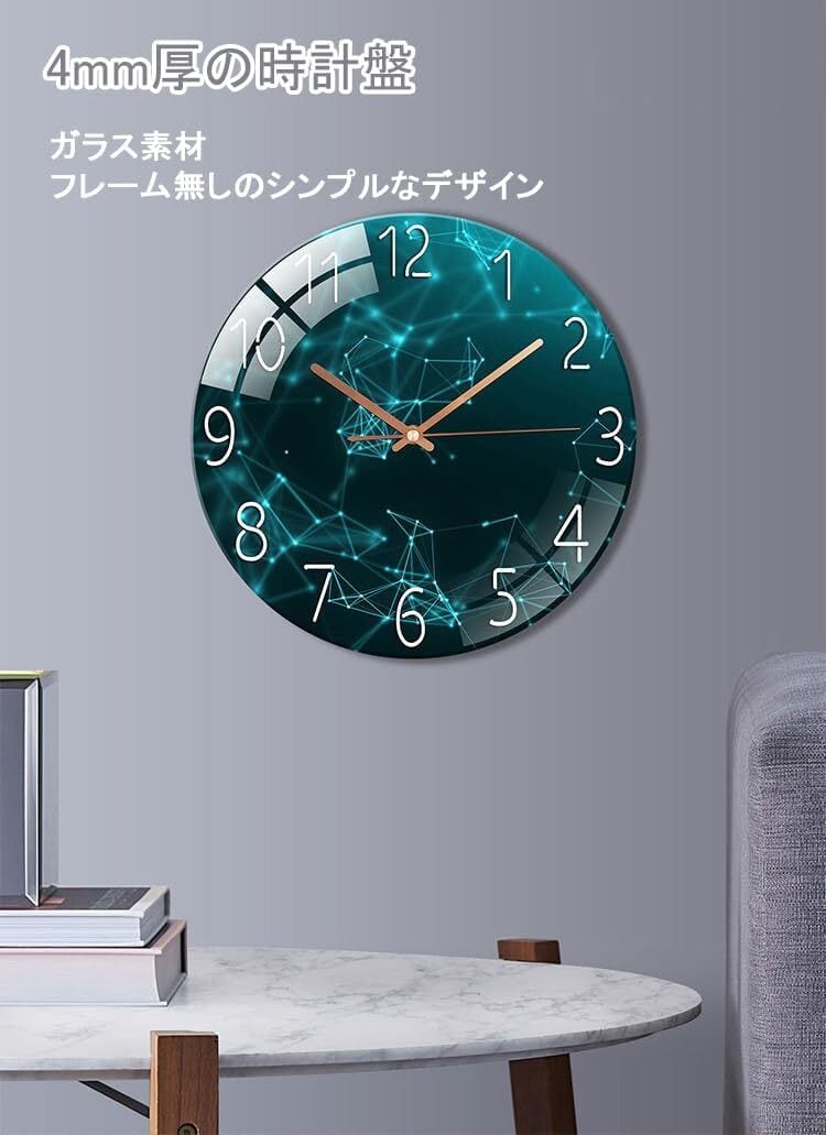 【在庫処分】Icycow 掛け時計 フレームレスデザイン ガラスパネル おしゃれ インテリア 時計 壁掛け かけ時計 モダン 静音 連続秒針 星空 星宿 丸型 ウォールクロック デジタル 大数字 見やすい wall clock 12インチ living room 寝室 装飾(グリーンスタースカイ)