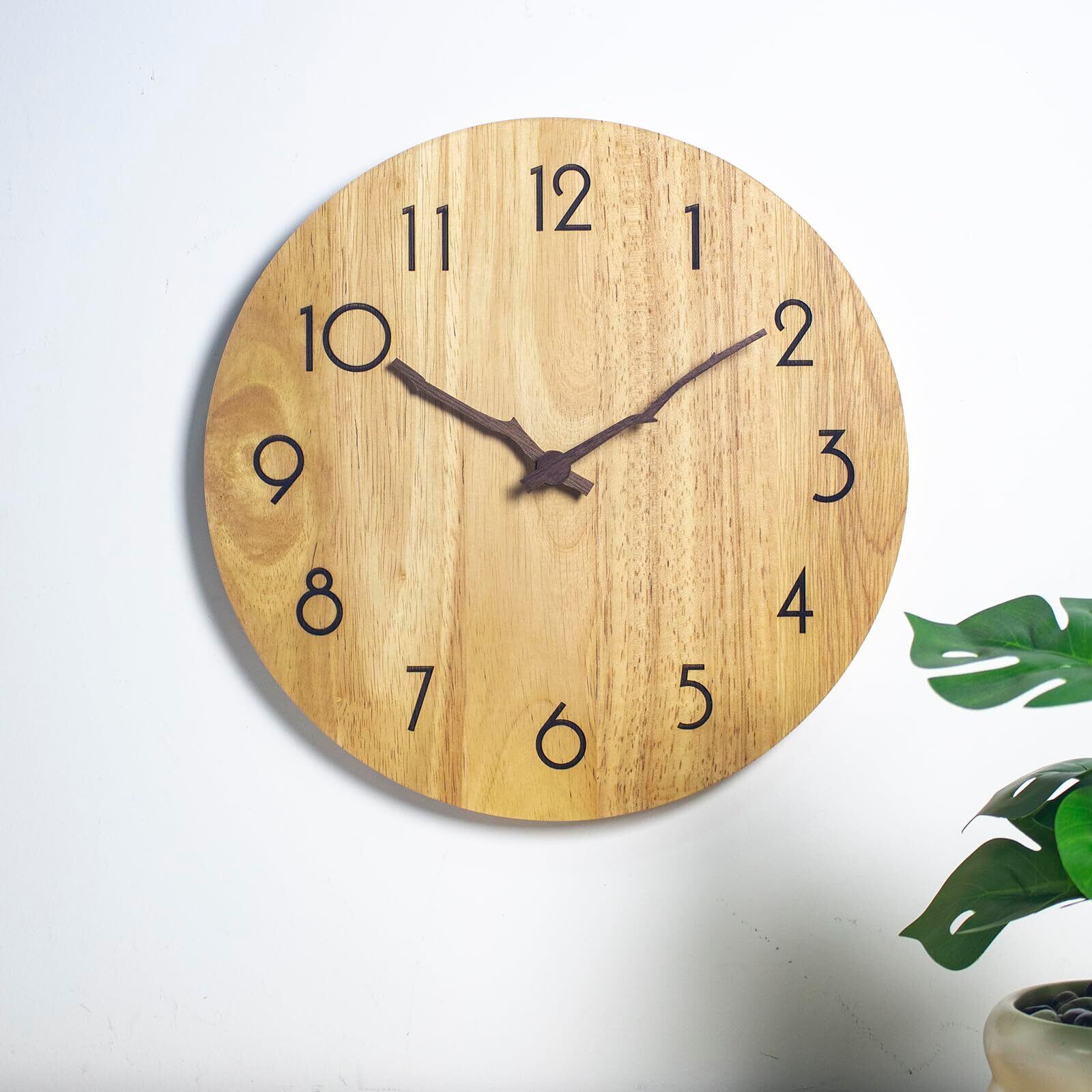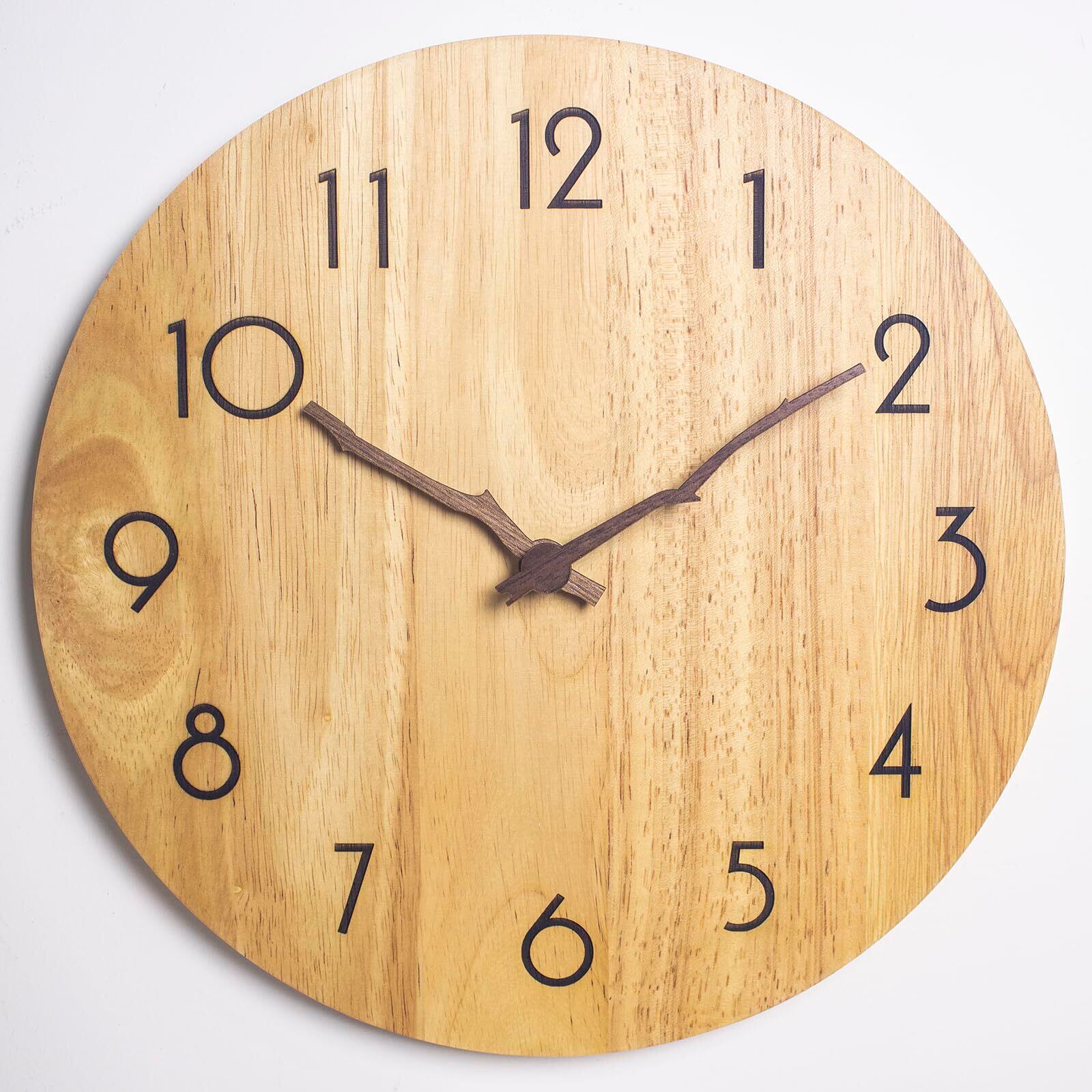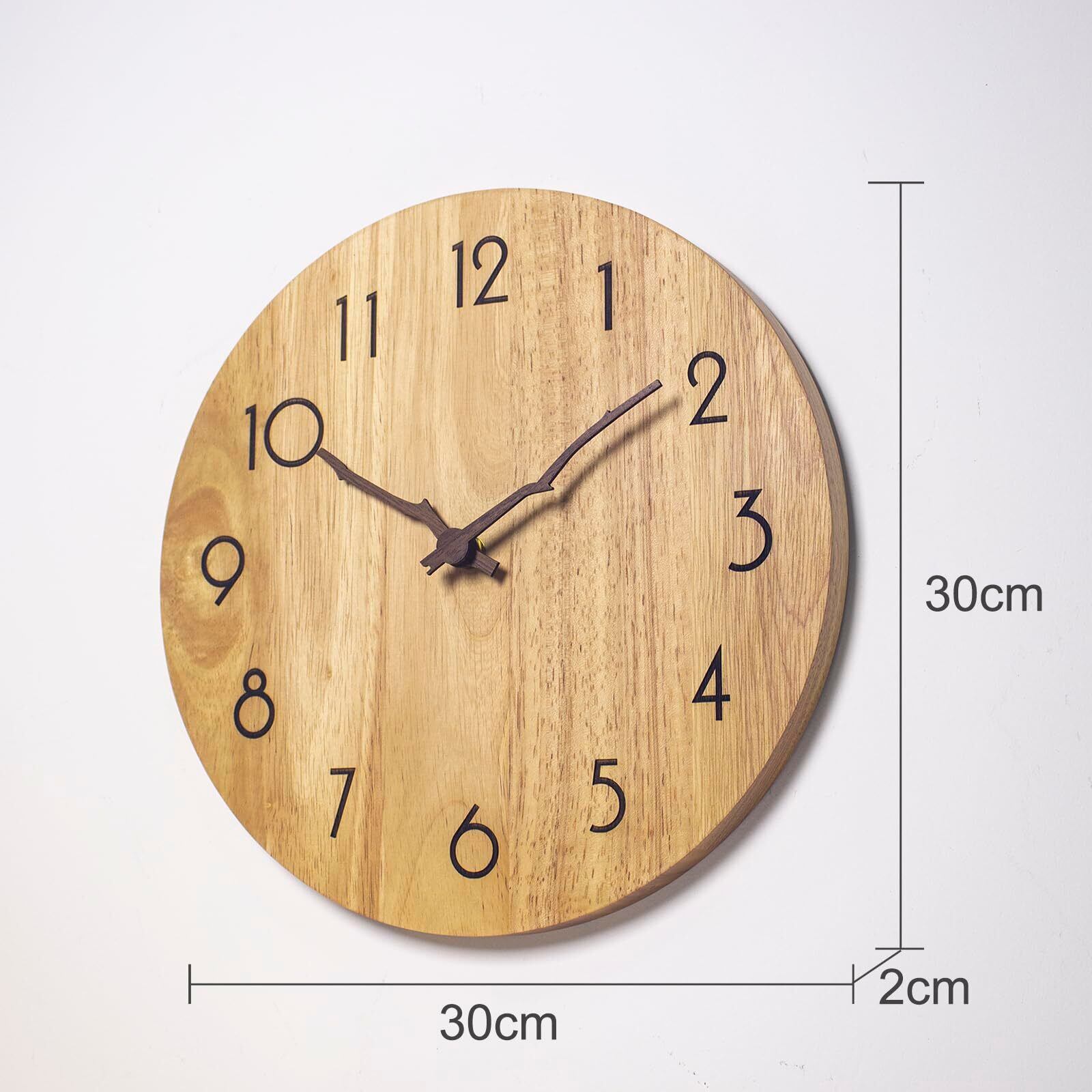 Potphieé 掛け時計 木製 時計 壁掛け おしゃれ 壁掛け時計 静音 連続秒針 非電波 天然木 インテリア 北欧 フレームなし 直径30㎝