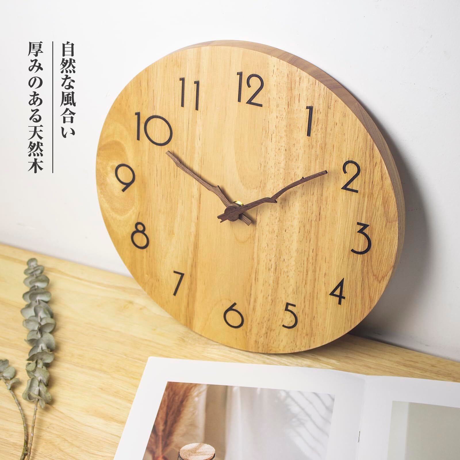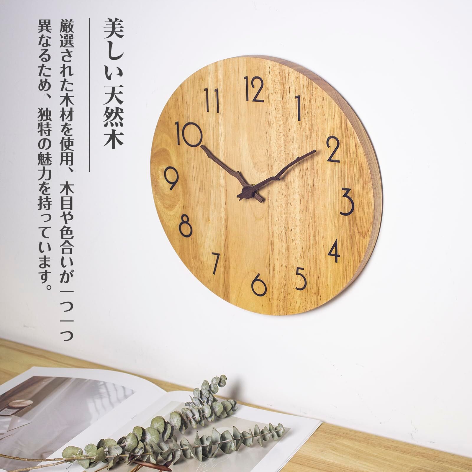 【美しい天然木】厳選された木材を使用した時計、木目や色合いが一つ一つ異なるため、プラスチックにはない独特の魅力を持っています。木の質感や温もりは、北欧やモダン、どんなインテリアにも調和し、癒しの雰囲気を演出します。