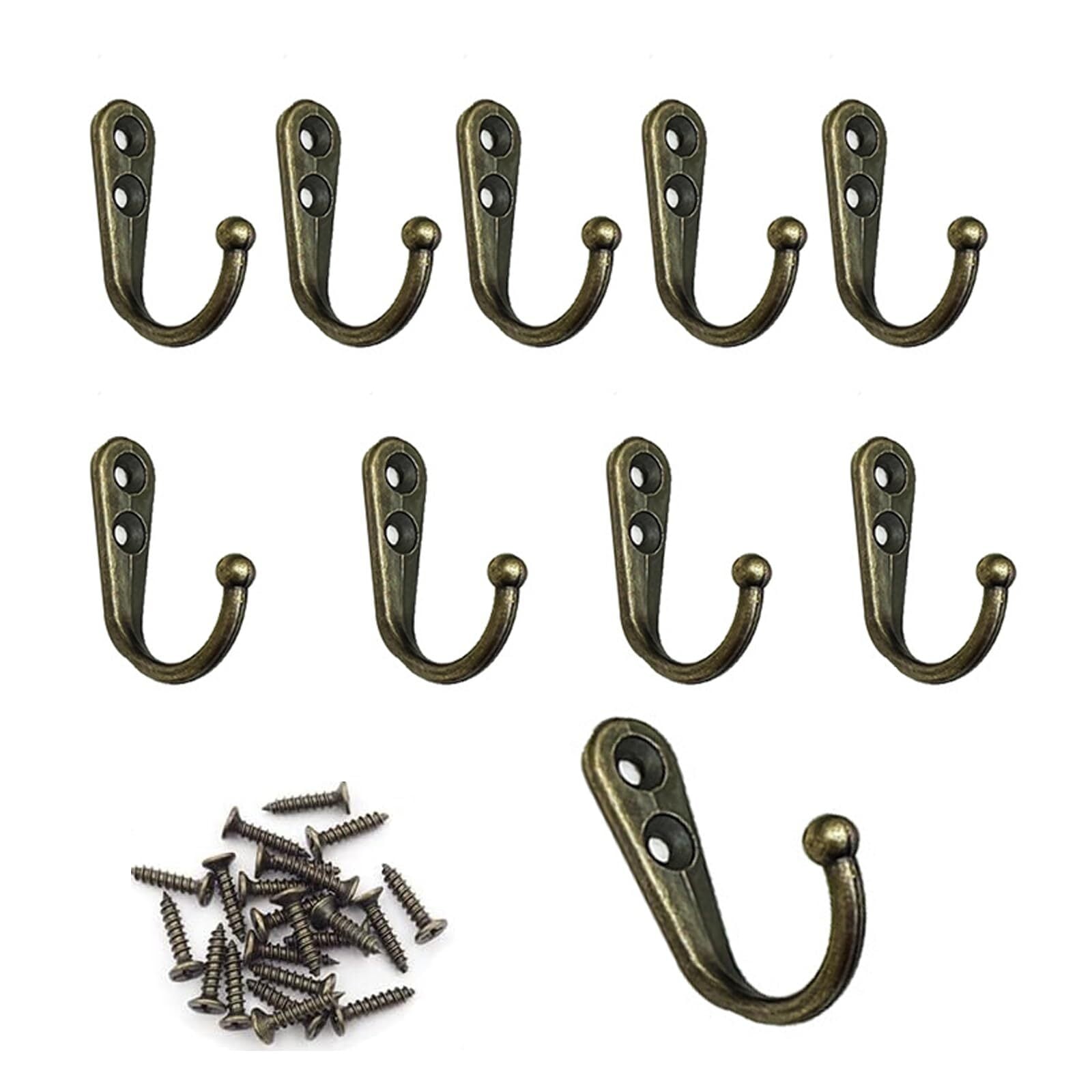 LOYELEY フック 壁掛け 10個セット 亜鉛合金壁掛け アンティーク 調 高耐荷重 金具 かべかけフック キッチン 台所 壁かけ 洋服掛け (ブロンズ)