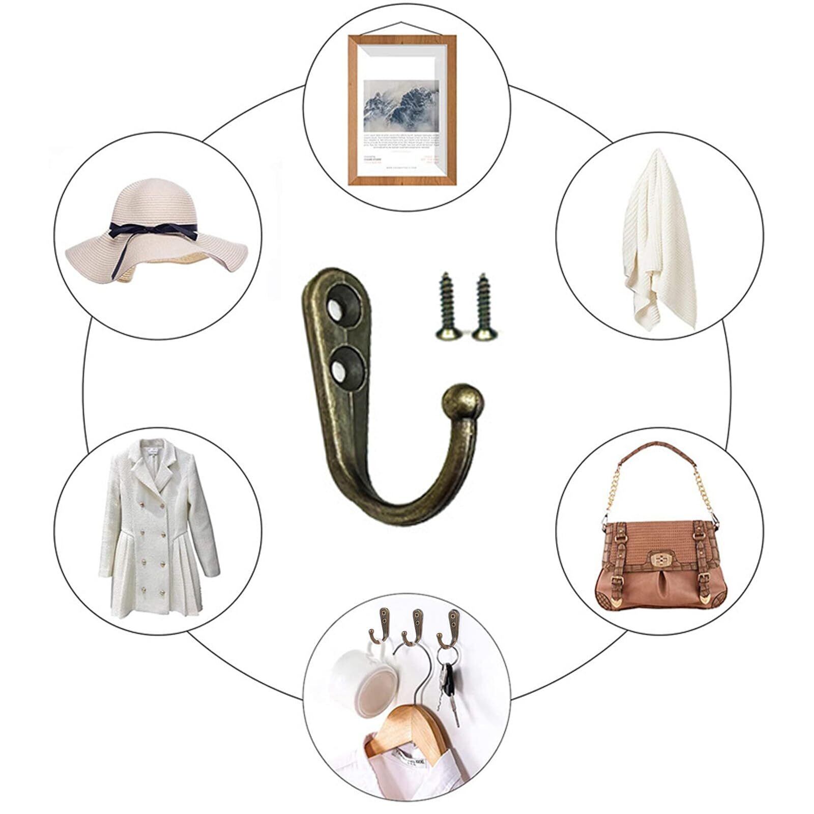 【幅広い用途】:洋服、コート、帽子、カバンなどいろいろな荷物を引っ掛ける事ができます。 アンティーク調のレトロなデザインがとてもお洒落です。幅広い材料の家具と相性抜群で、家具や小物、扉などの雰囲気をお洒落に! 何気なく目にするフック一つを付け替えることで、お部屋の雰囲気が変わりインテリアのアクセントに!